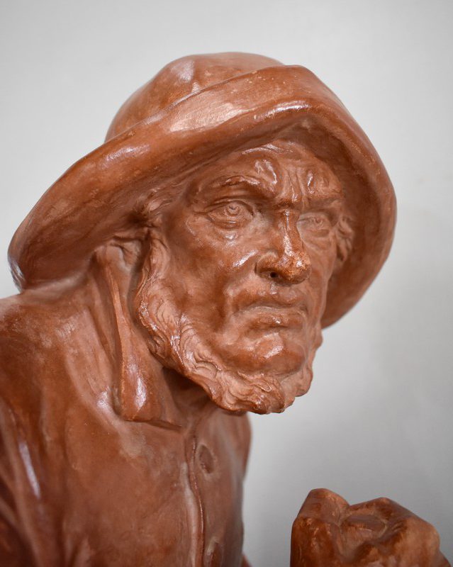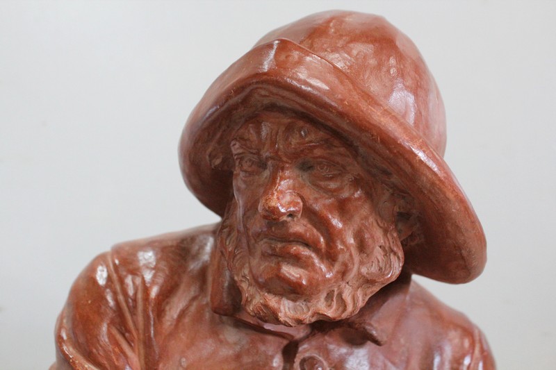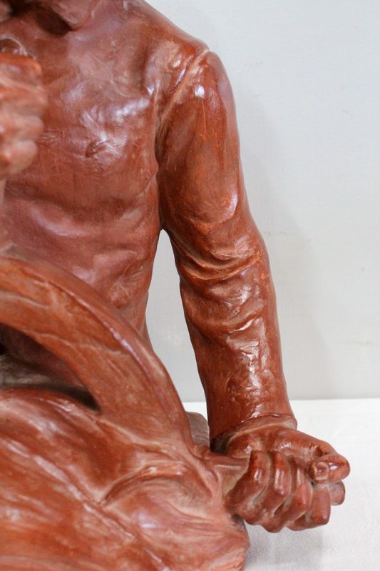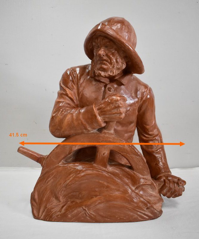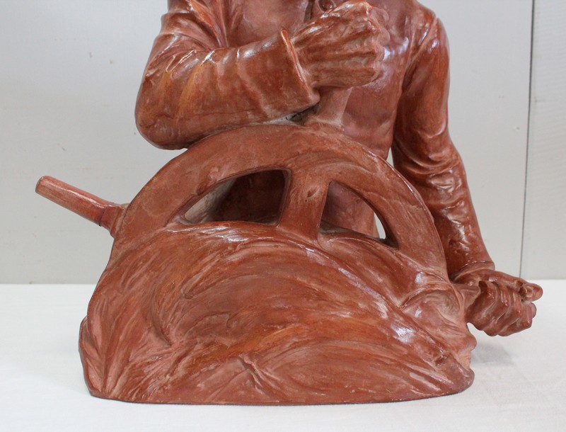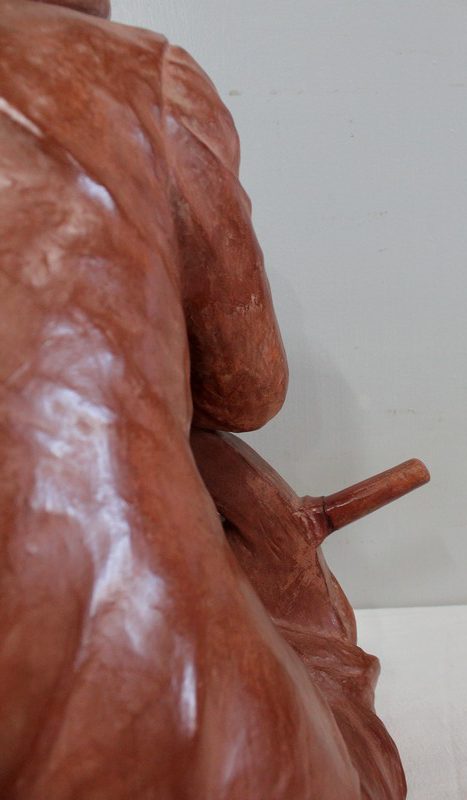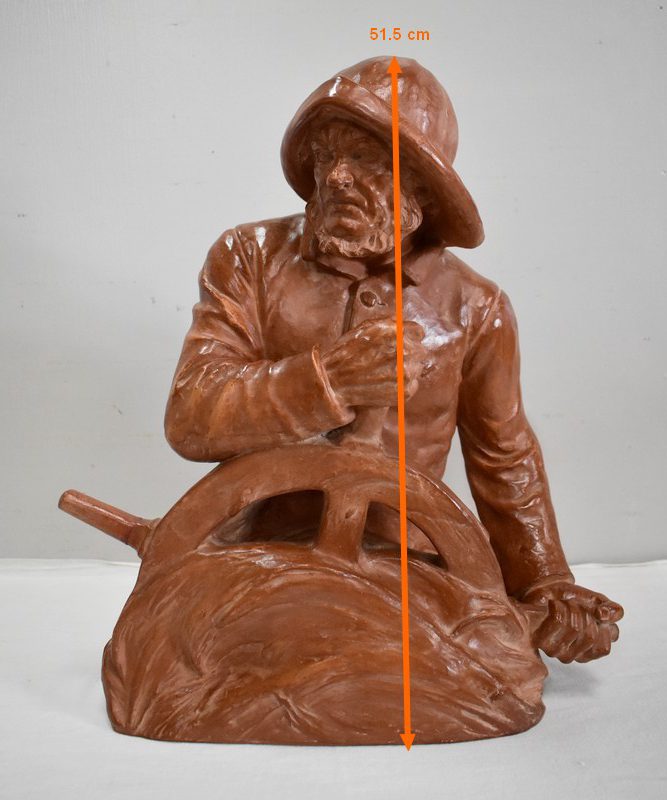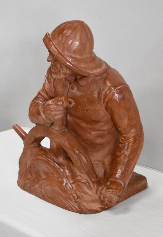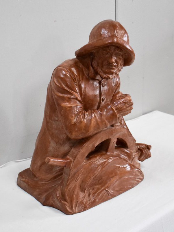 Important Buste en Terre cuite signé du Sculpteur Angevin Léon Morice (1868 – 1930), portant la marque de son Fabricant « R. d’Arly » à Paris, et représentant un pêcheur tenant la barre.