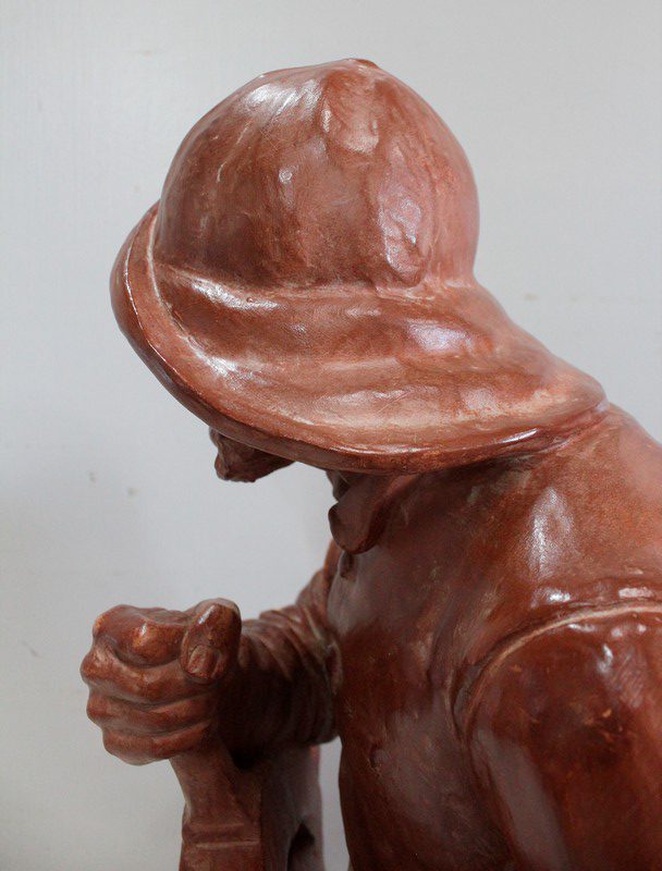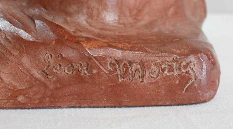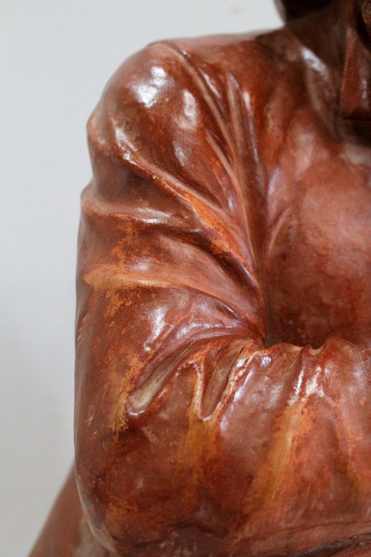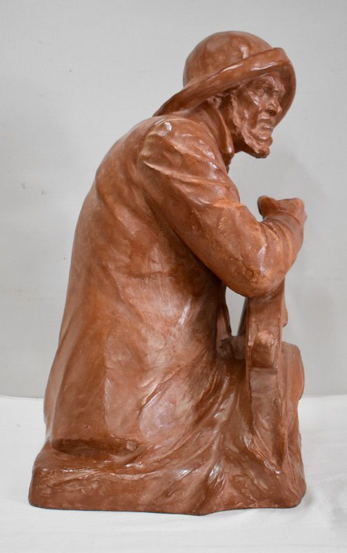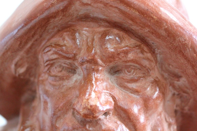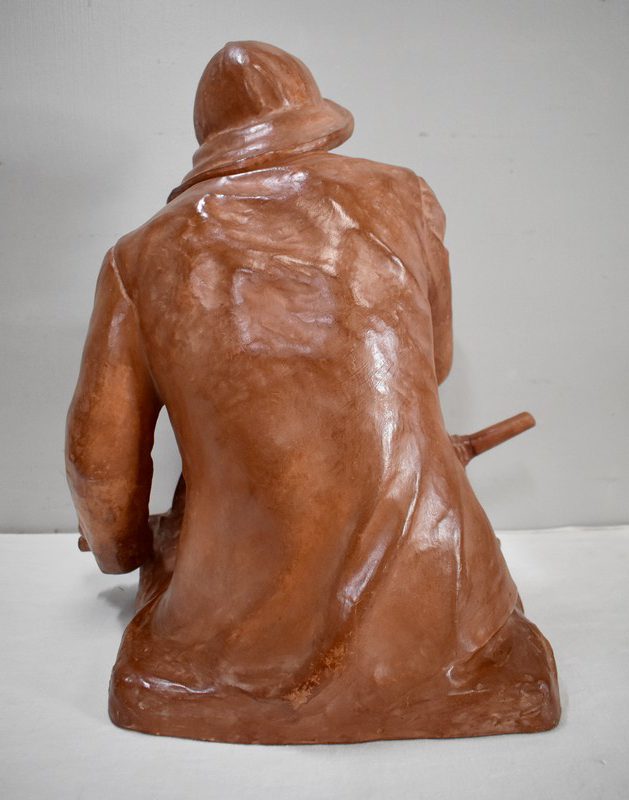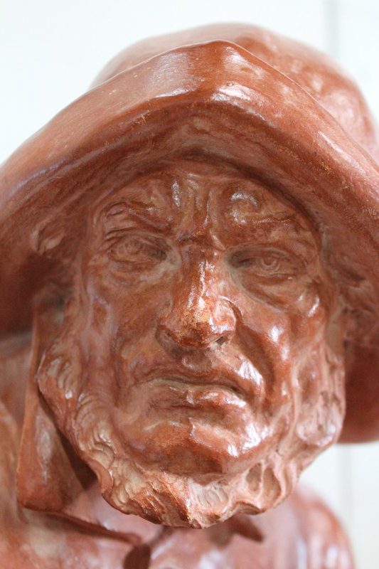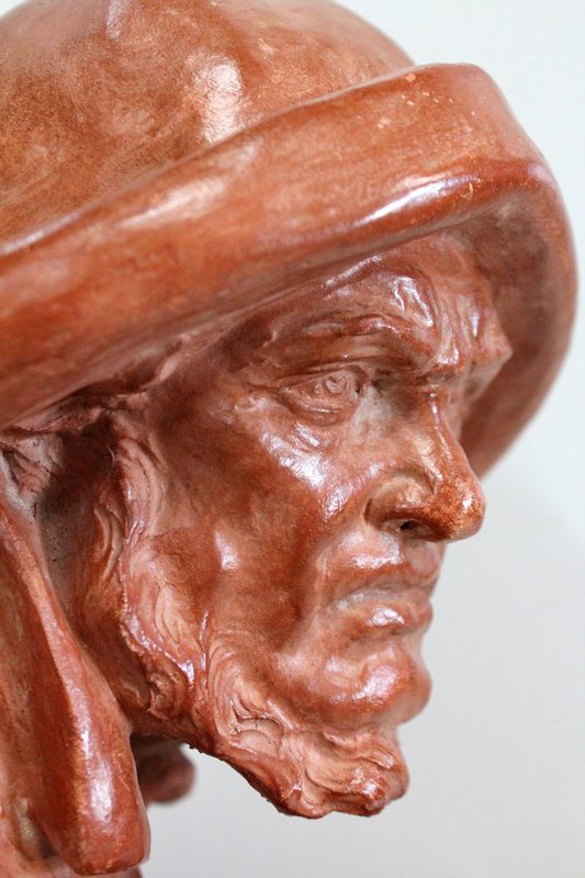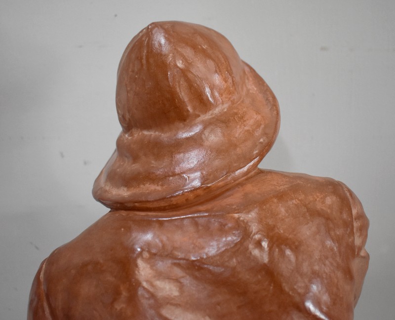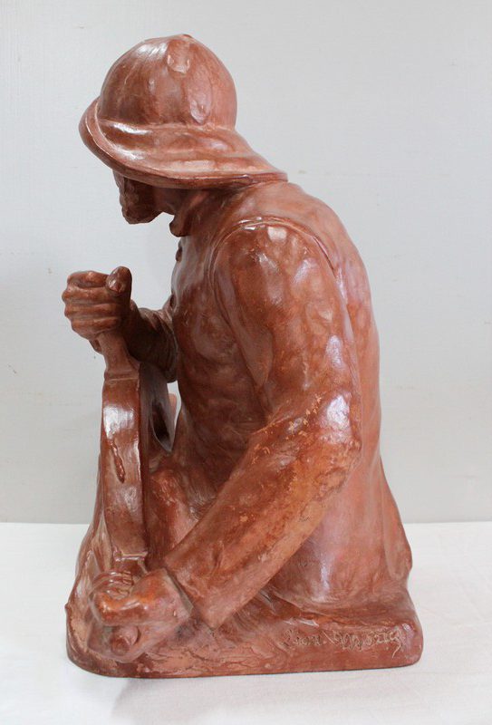 Important Buste en Terre cuite signé du Sculpteur Angevin Léon Morice (1868 – 1930), portant la marque de son Fabricant « R. d’Arly » à Paris, et représentant un pêcheur tenant la barre.