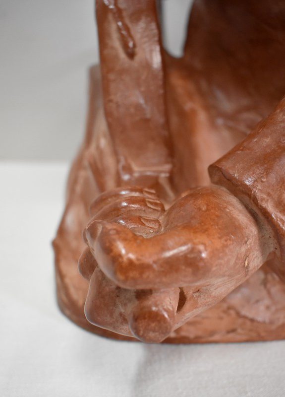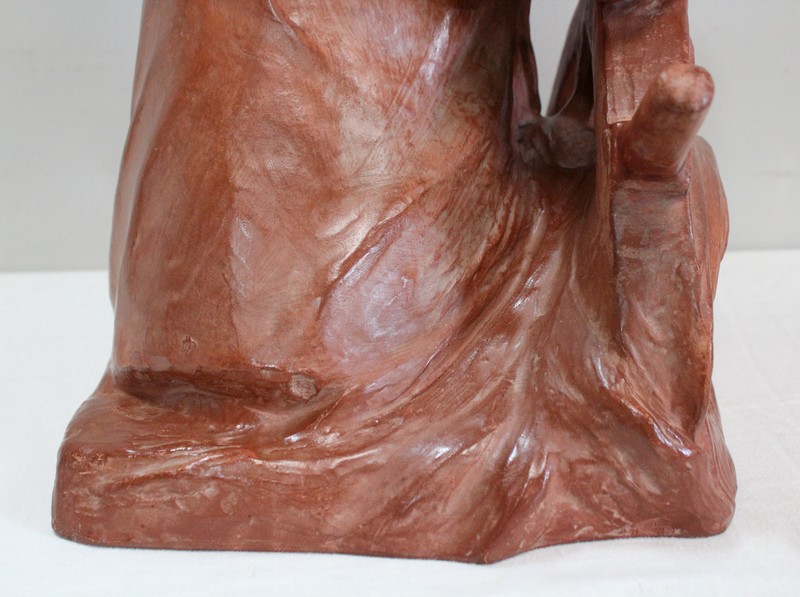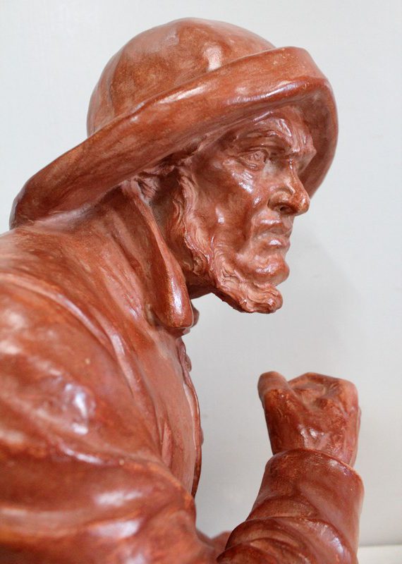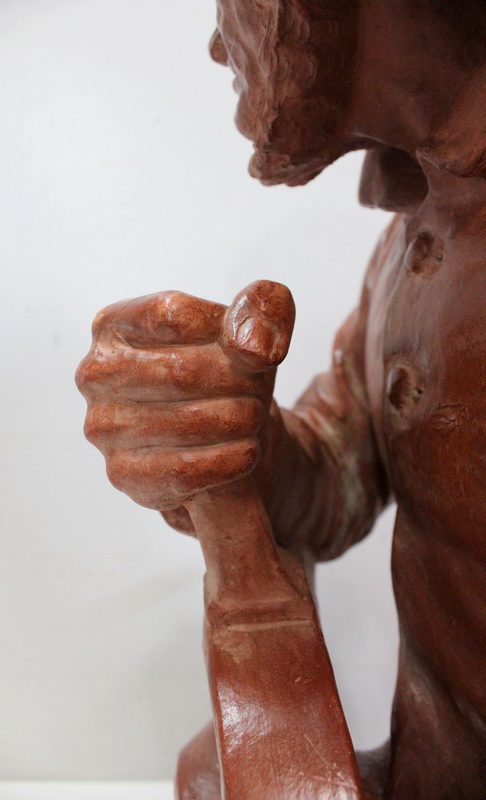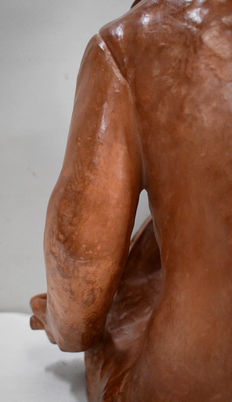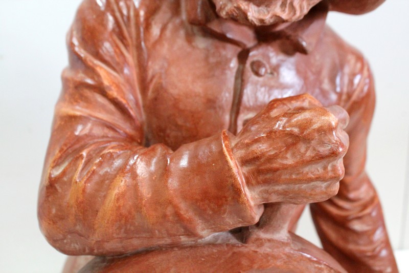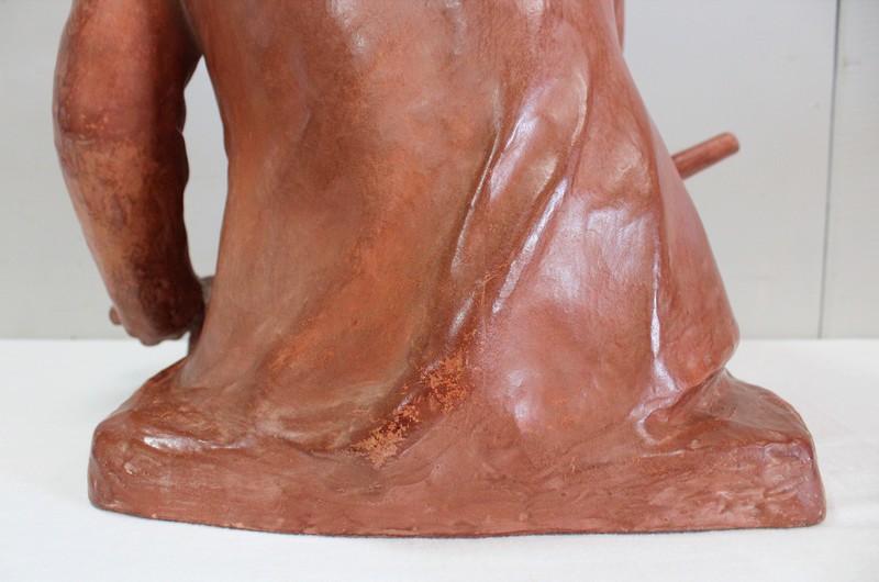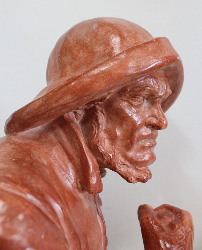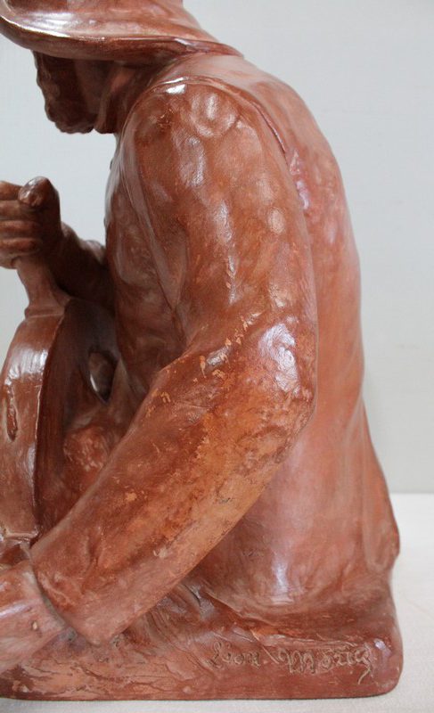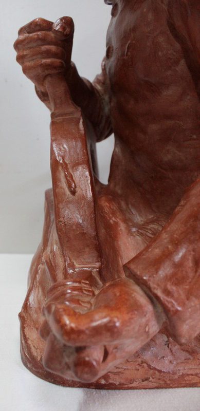 Important Buste en Terre cuite signé du Sculpteur Angevin Léon Morice (1868 – 1930), portant la marque de son Fabricant « R. d’Arly » à Paris, et représentant un pêcheur tenant la barre.