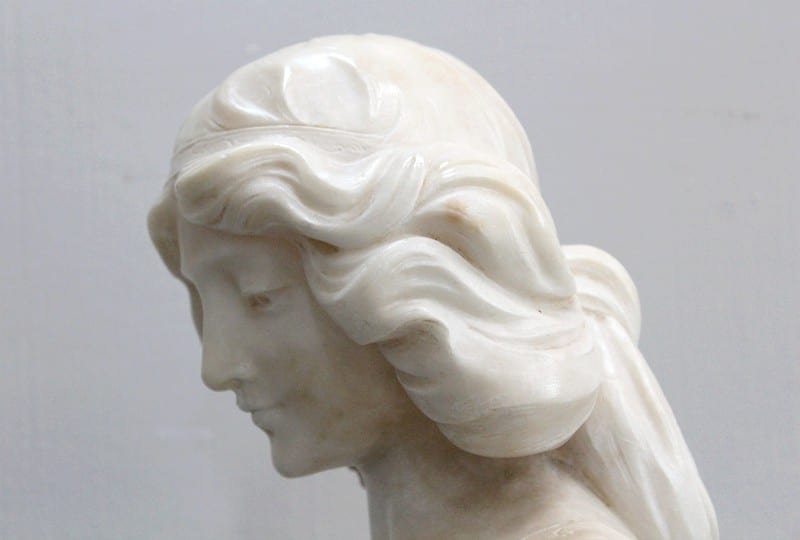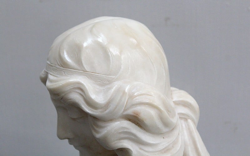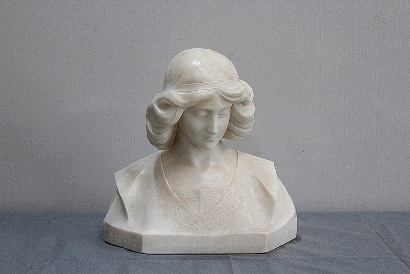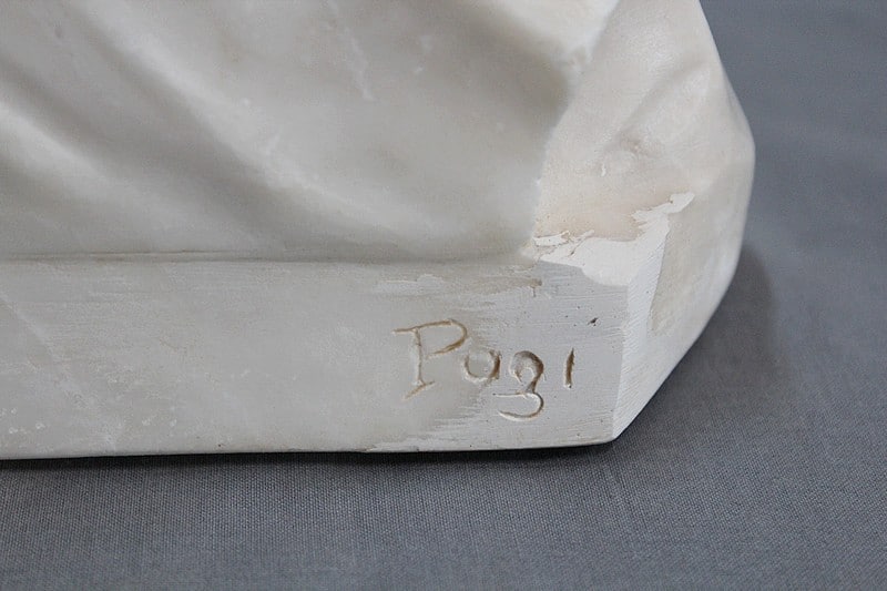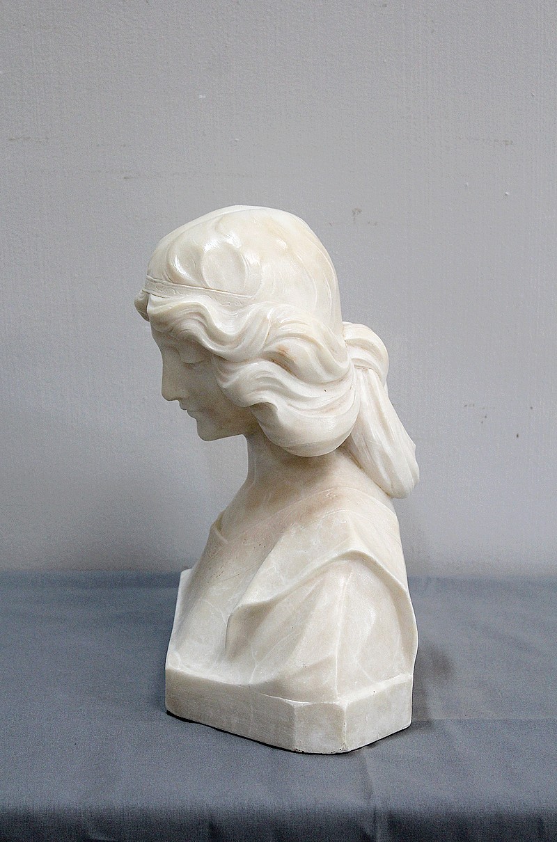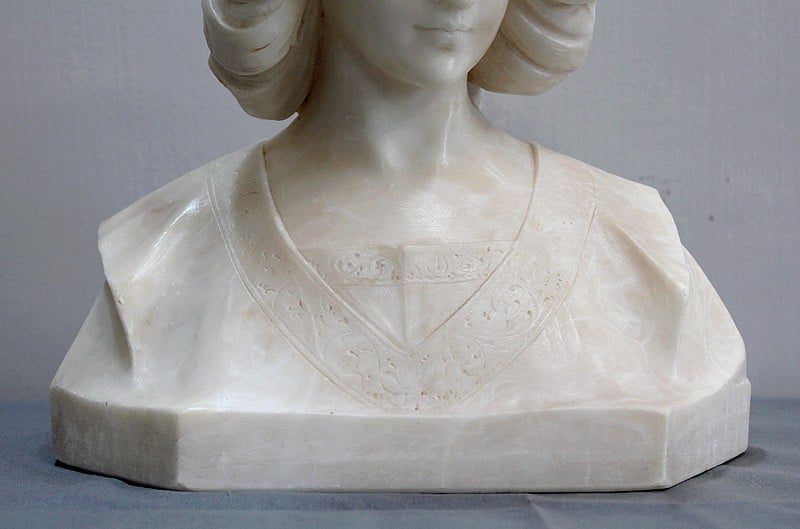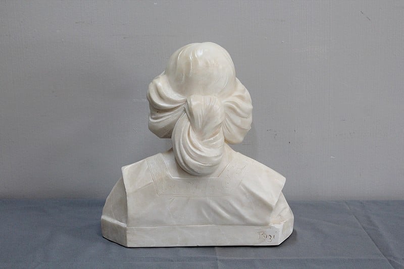 Buste d’une jeune femme dans le goût Renaissance sculpté en Albâtre signé Guglielmo PUGI (1870-1915)