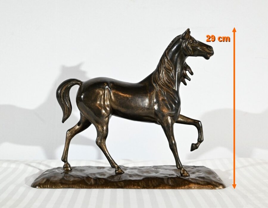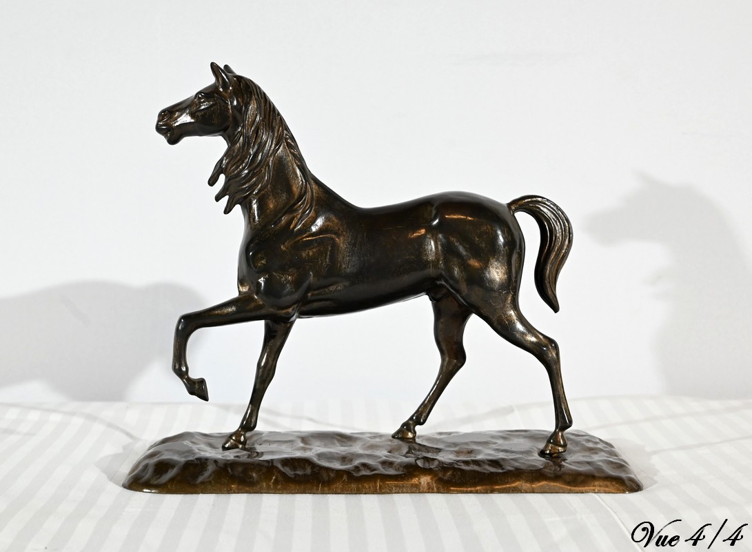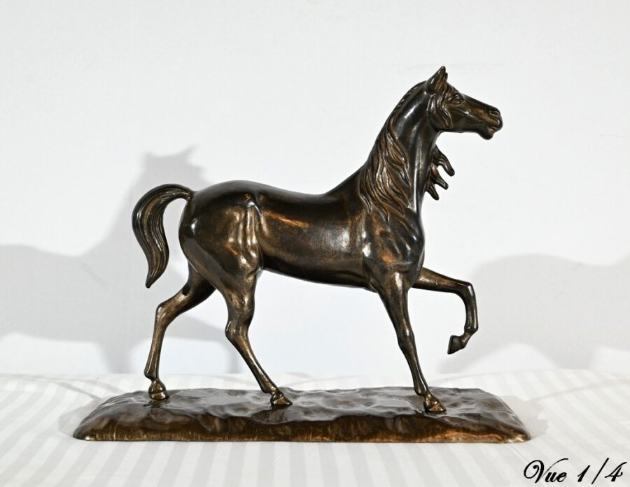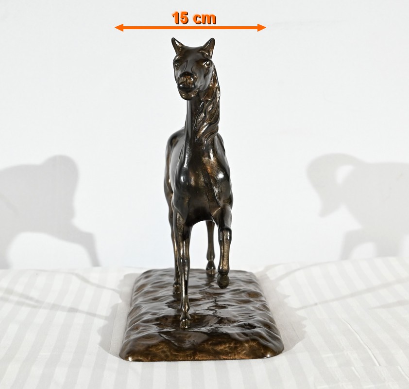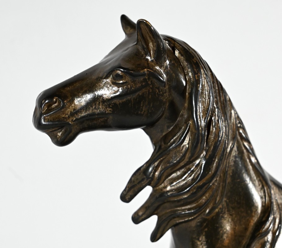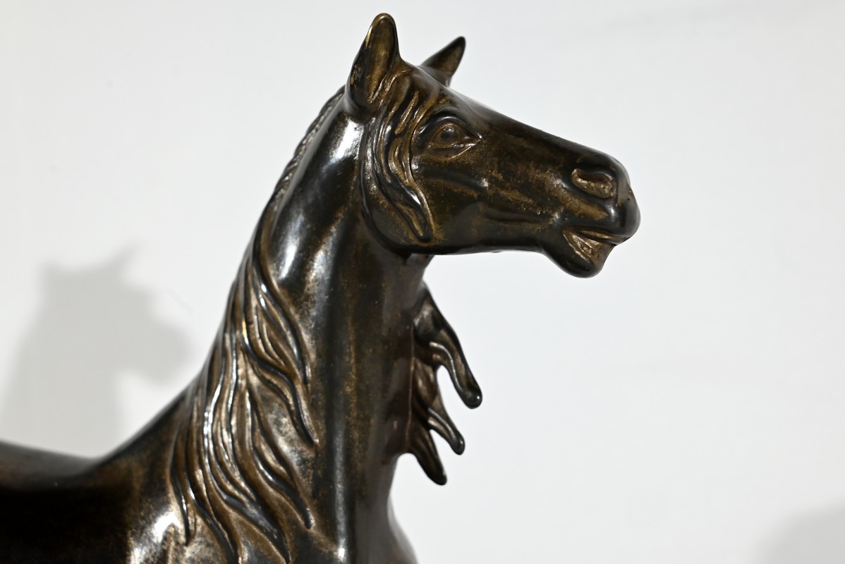 Cette œuvre représente un étalon au pas, la crinière dans le vent.