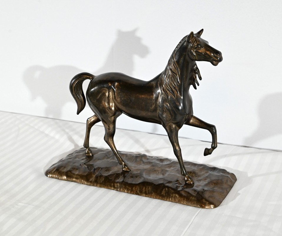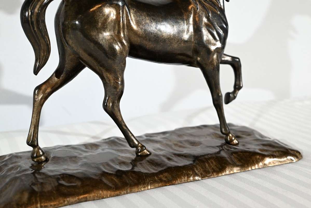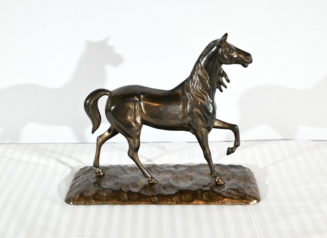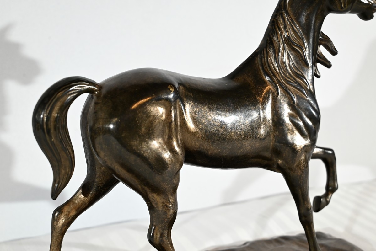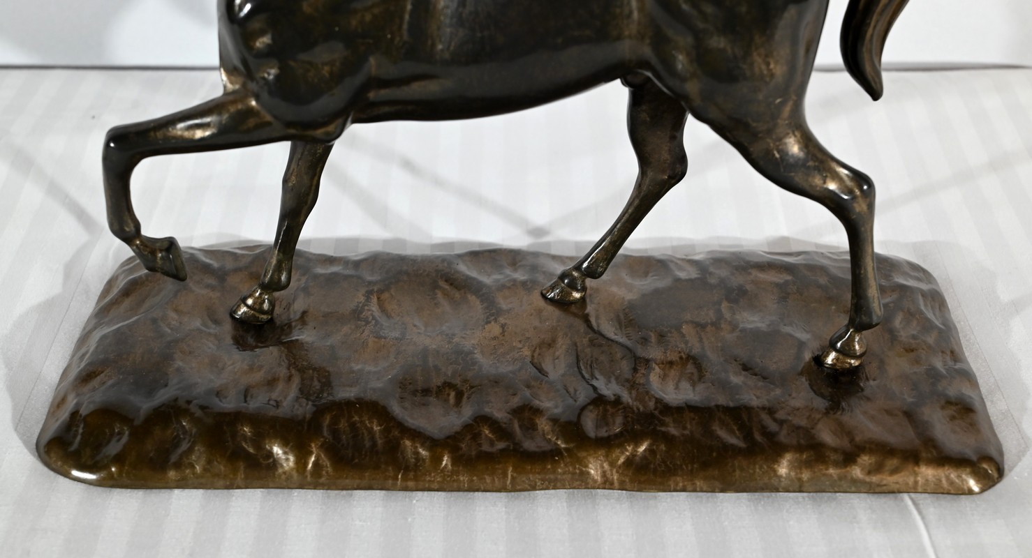 Cette œuvre représente un étalon au pas, la crinière dans le vent.
