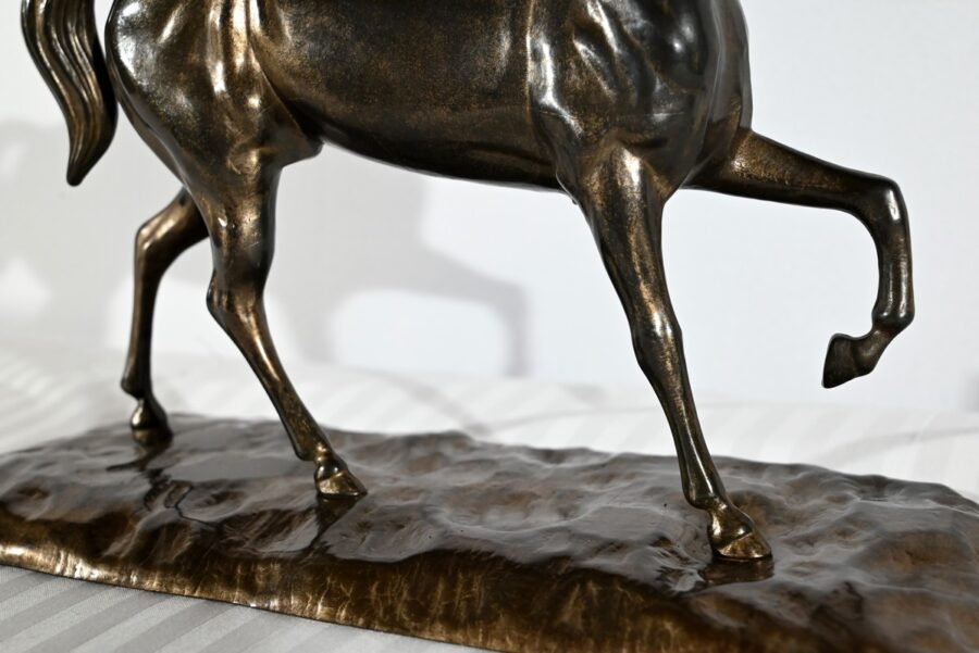 Fidèlement ouvragée, cette sculpture repose sur un socle rectangulaire en régule.