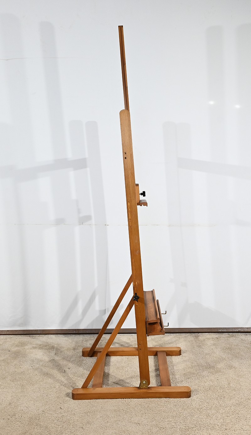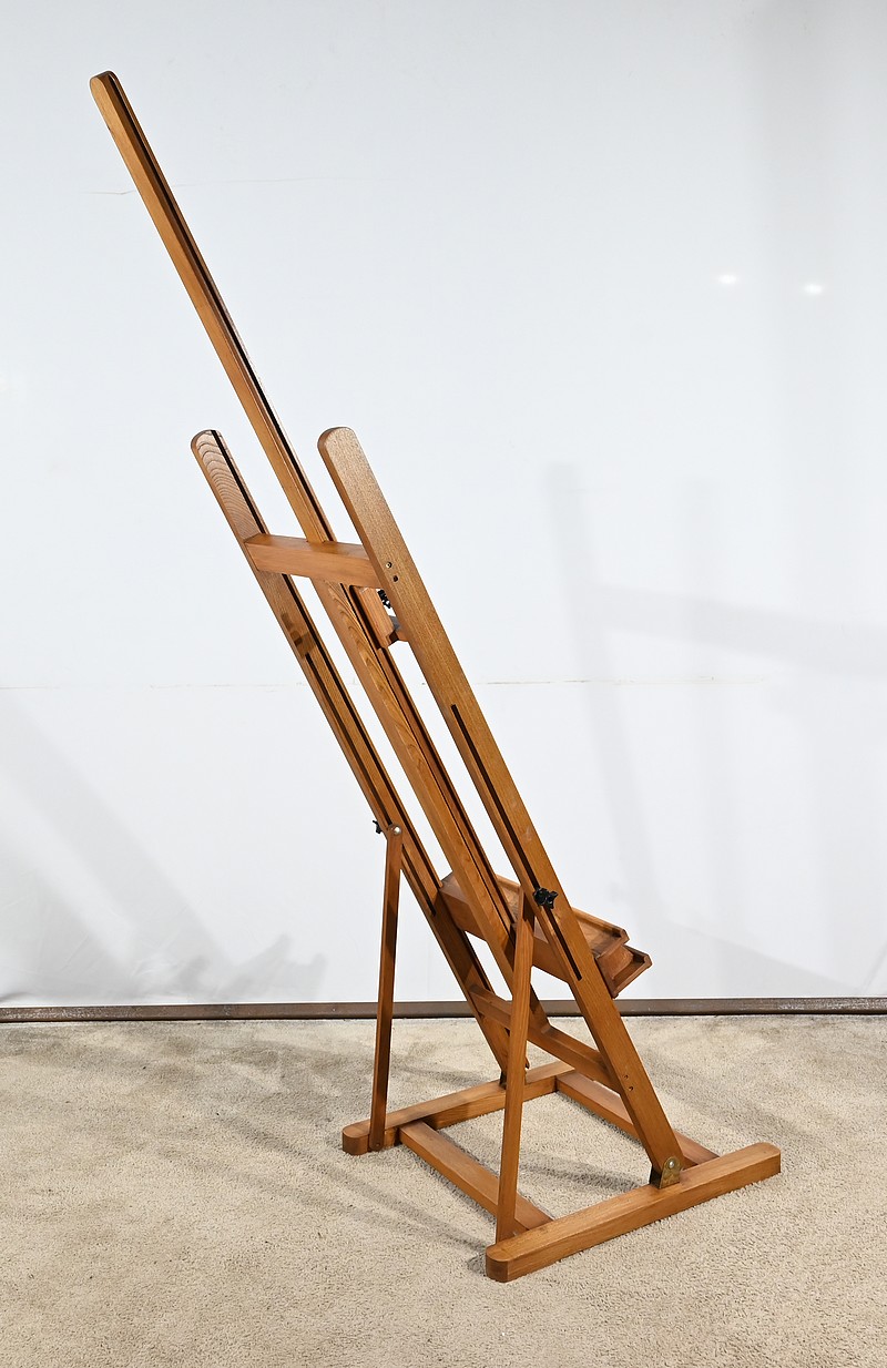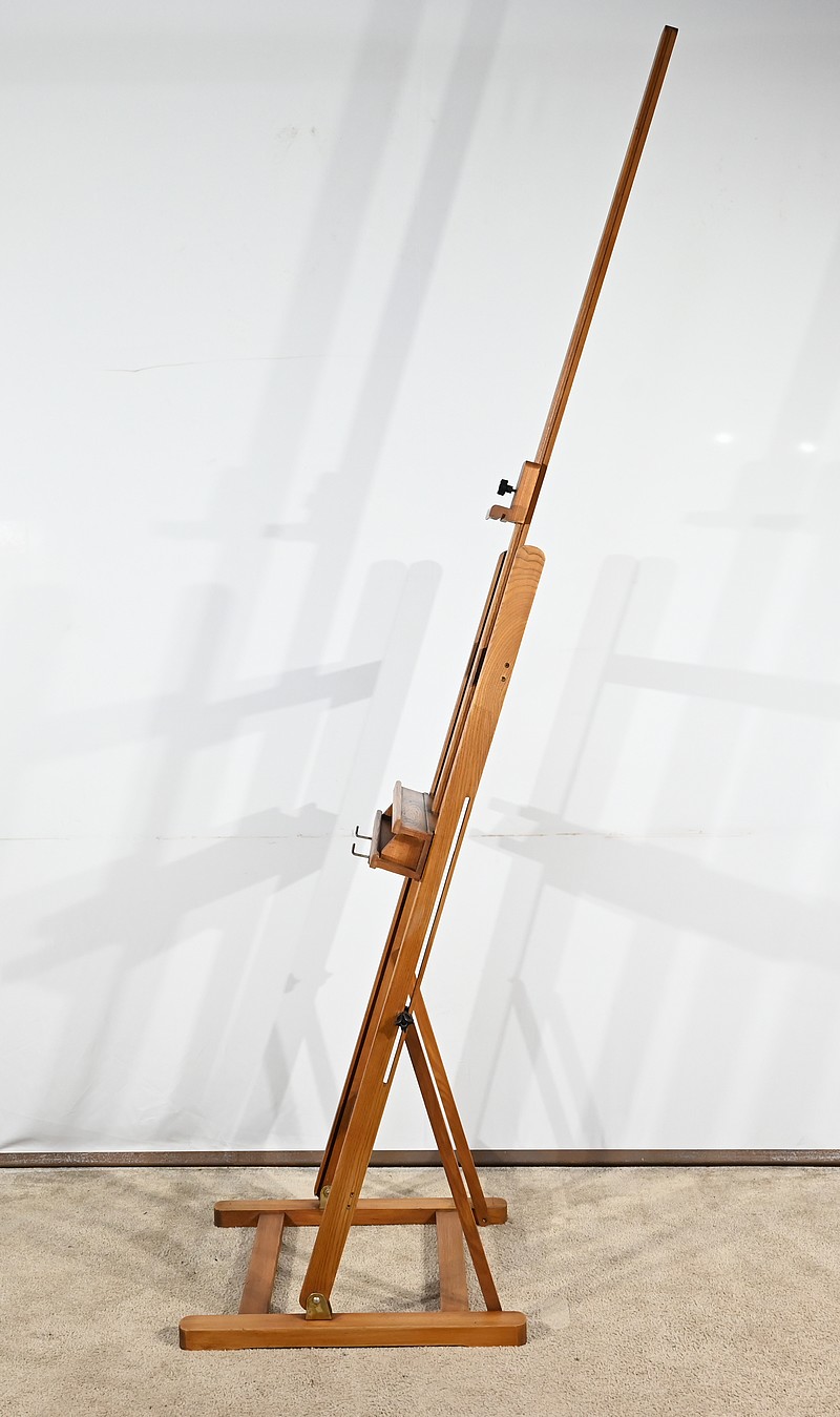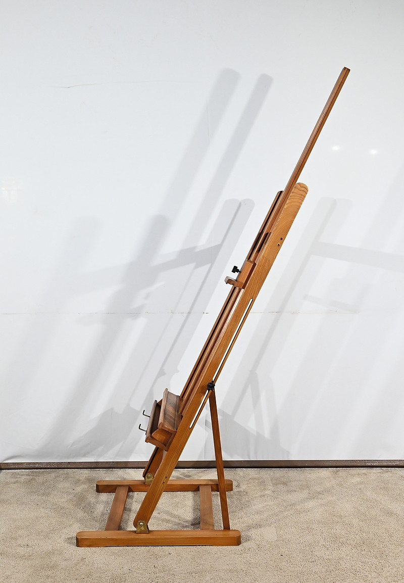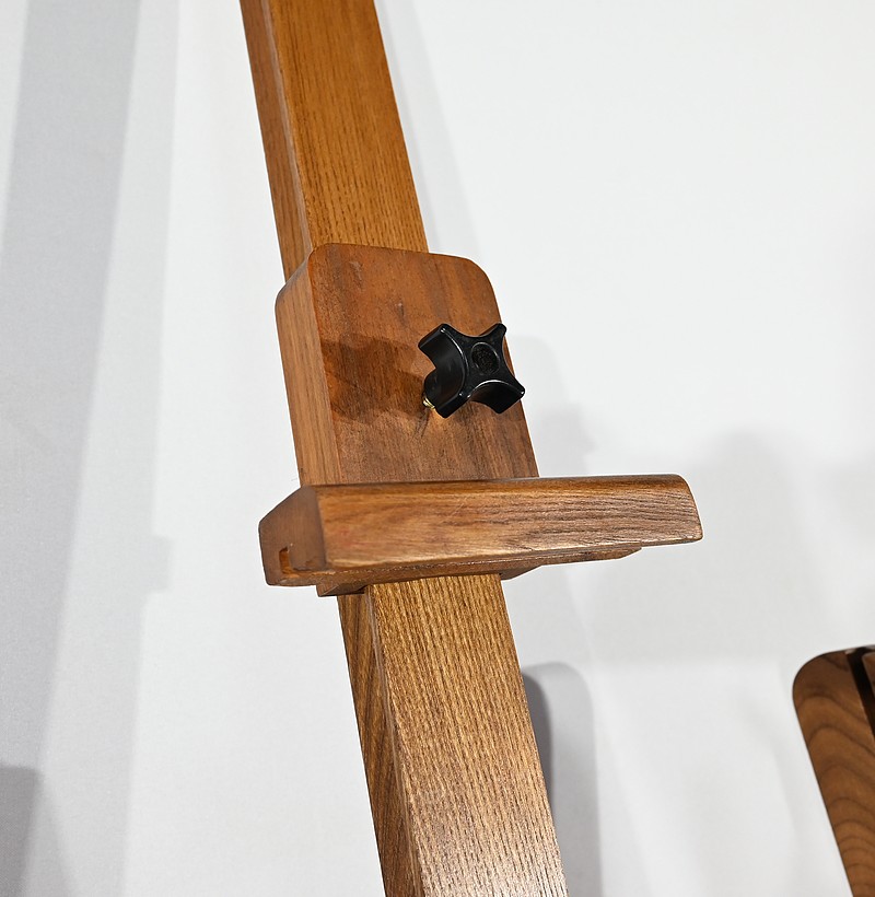 Chevalet d’atelier stable et repliable en frêne massif. La table possède un double support réglable en hauteur. Les articulations et les boutons rotatifs permettent de placer rapidement le chevalet à la verticale et en oblique. Ce chevalet académique a été conçu et développé sur la base d’exigences d’artistes très concrètes.