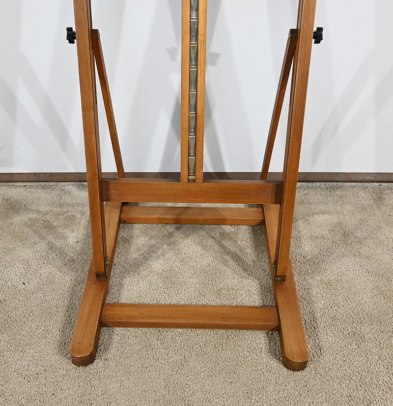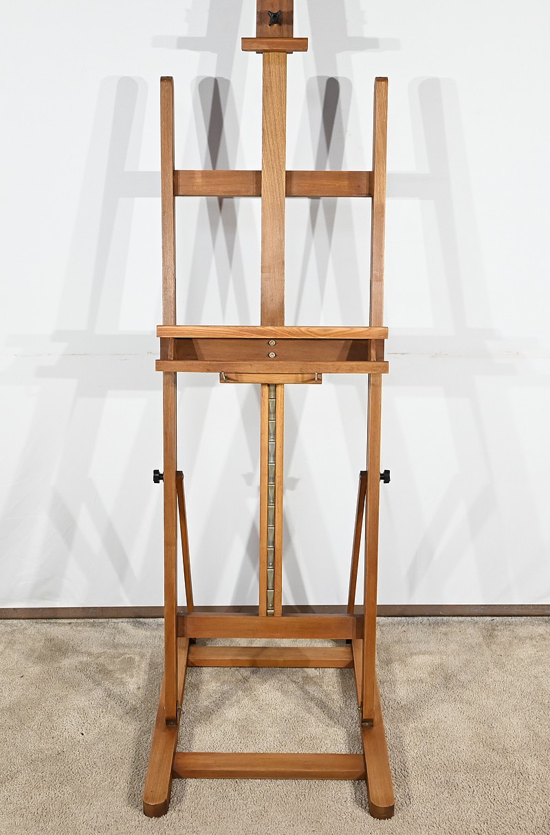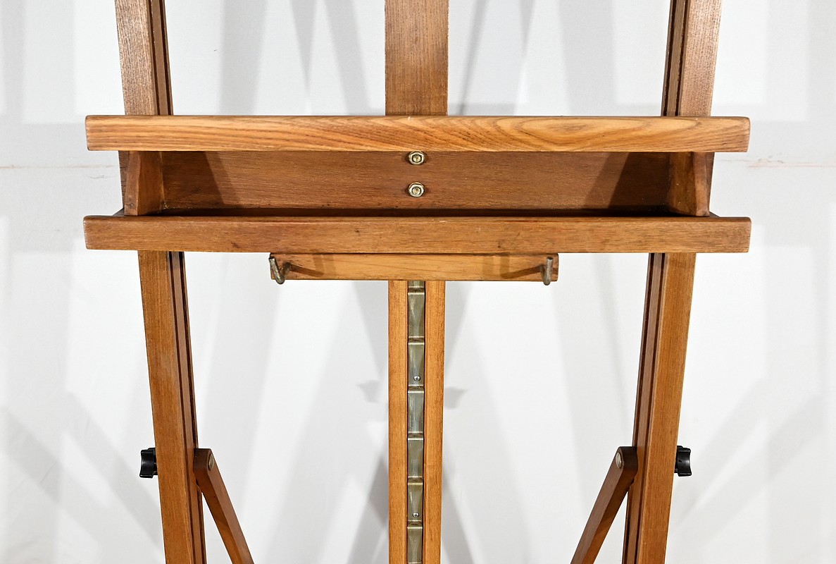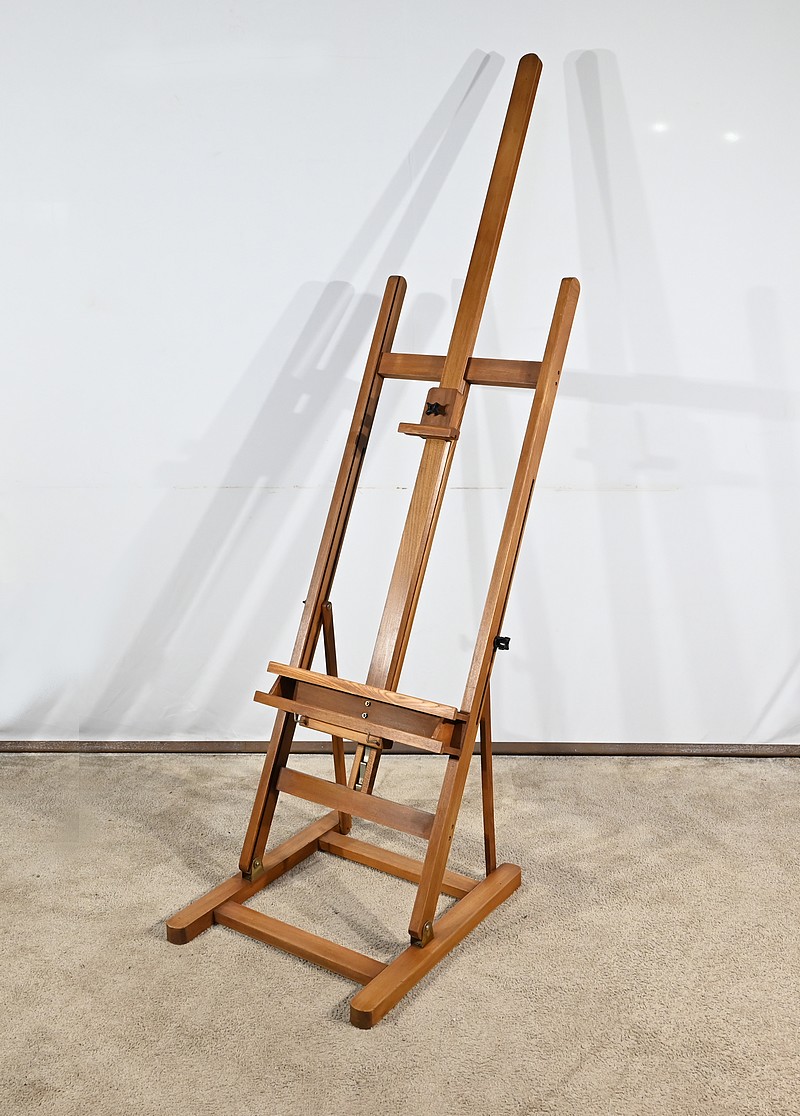 Chevalet d’atelier stable et repliable en frêne massif. La table possède un double support réglable en hauteur. Les articulations et les boutons rotatifs permettent de placer rapidement le chevalet à la verticale et en oblique. Ce chevalet académique a été conçu et développé sur la base d’exigences d’artistes très concrètes.