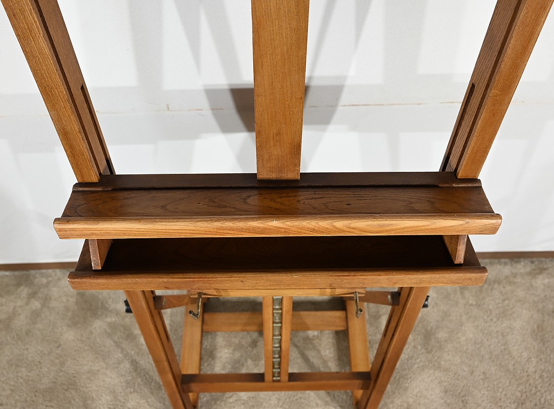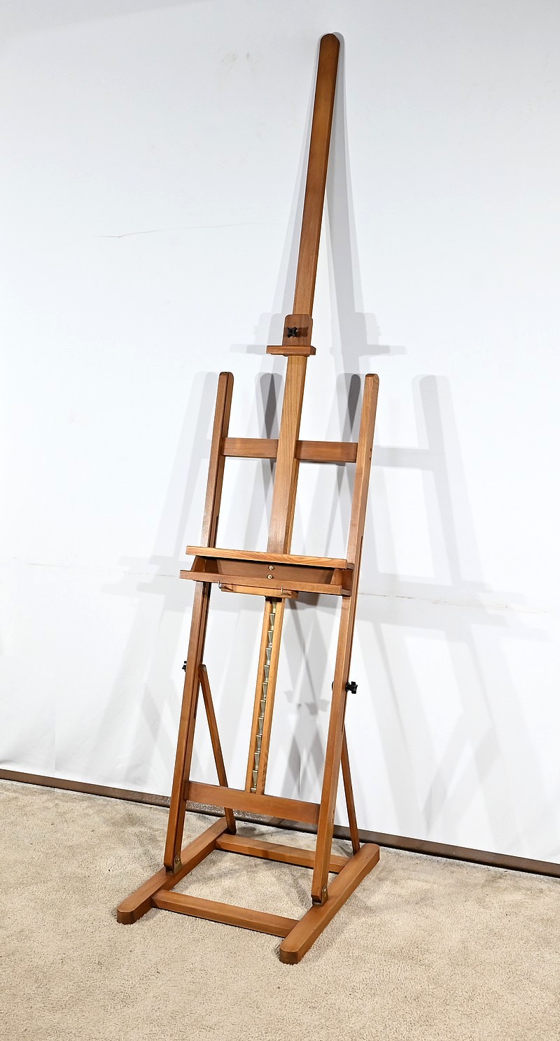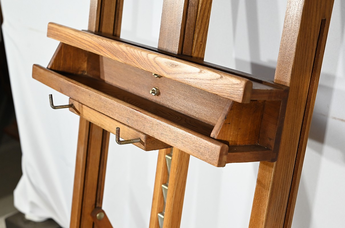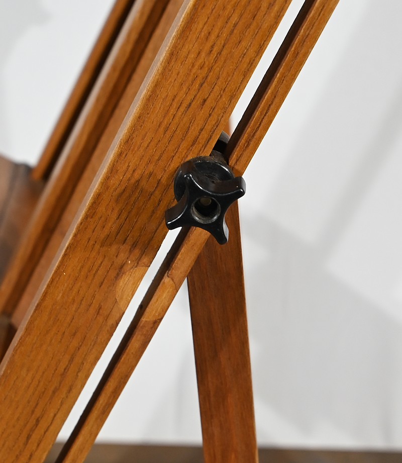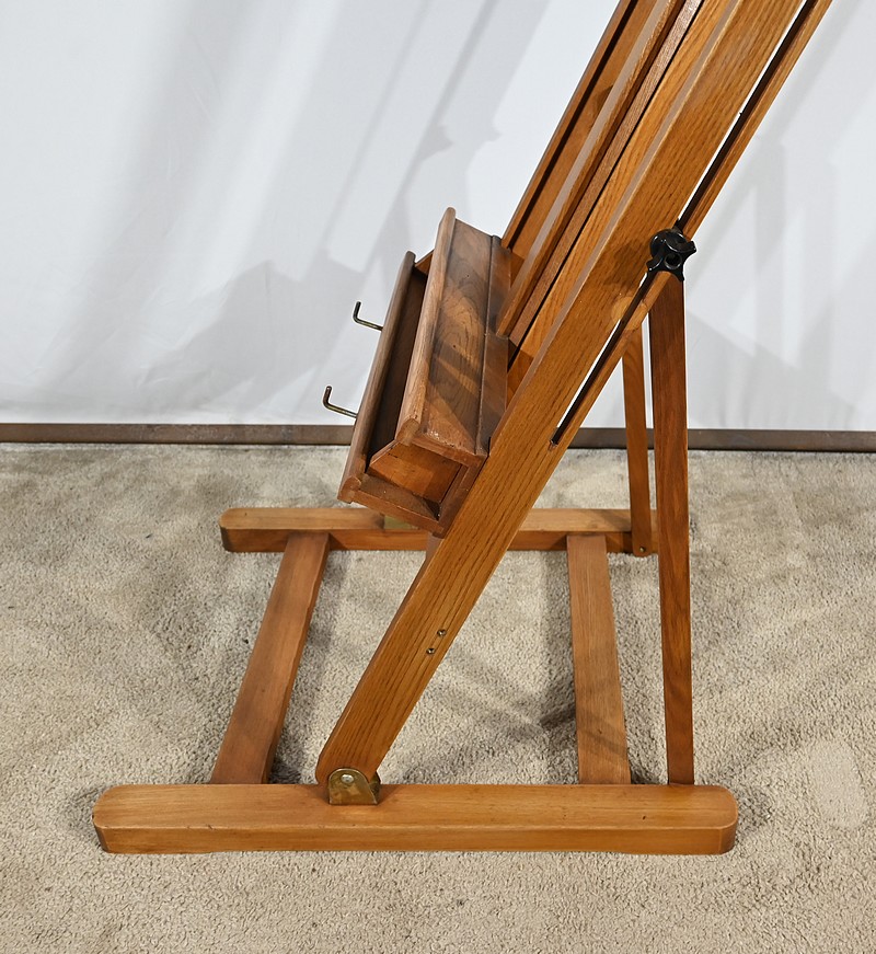 Chevalet d’atelier stable et repliable en frêne massif. La table possède un double support réglable en hauteur. Les articulations et les boutons rotatifs permettent de placer rapidement le chevalet à la verticale et en oblique. Ce chevalet académique a été conçu et développé sur la base d’exigences d’artistes très concrètes.
