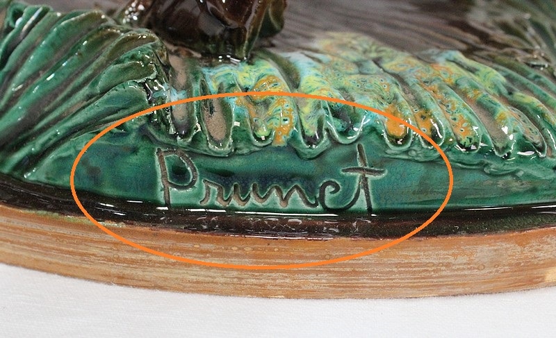 Sujet en pâte d’Argile délayée dite ‘Barbotine’, signé du céramiste R. Prunet.