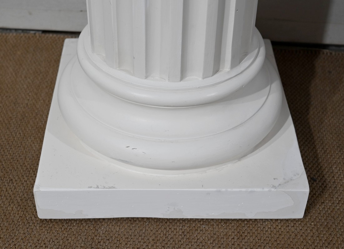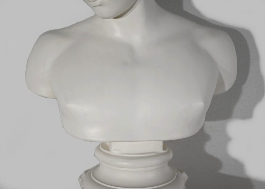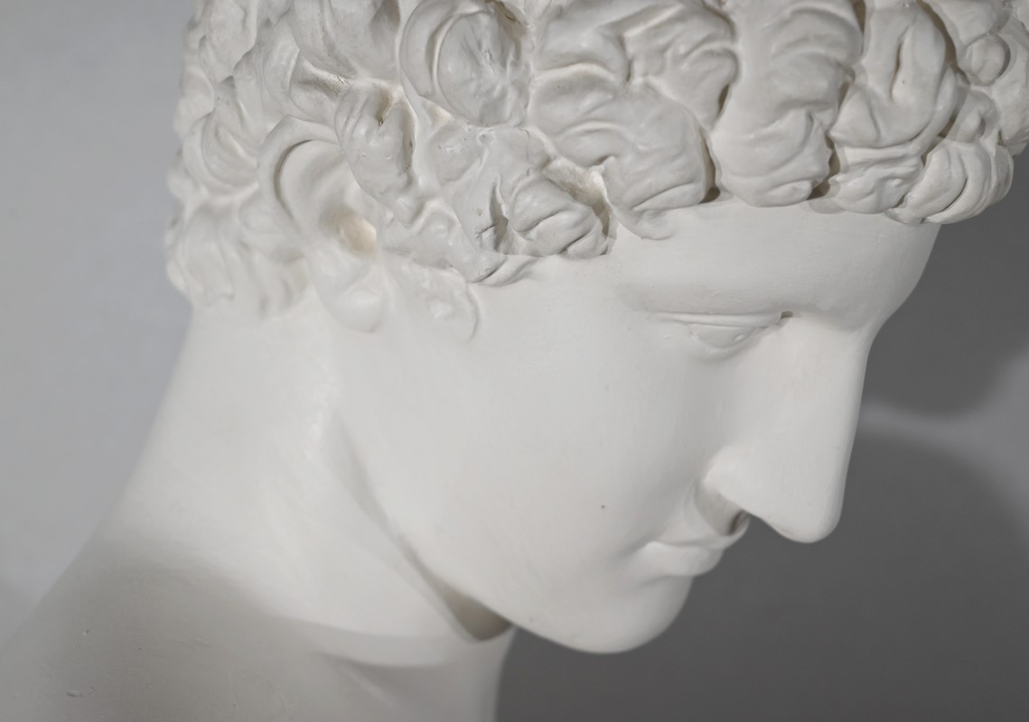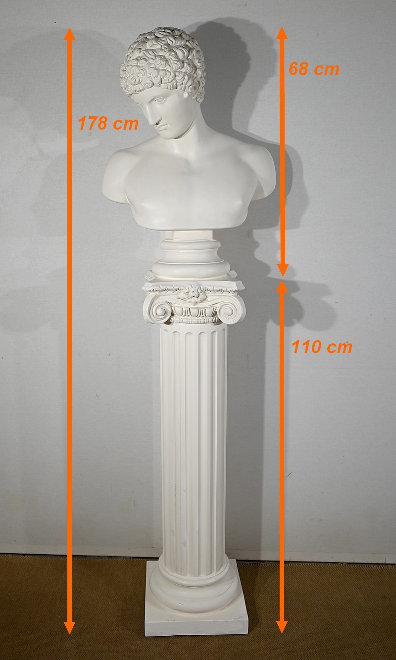 Ensemble en plâtre, buste d’Antinoüs du Capitole sur colonne, sculpté d’un seul bloc.