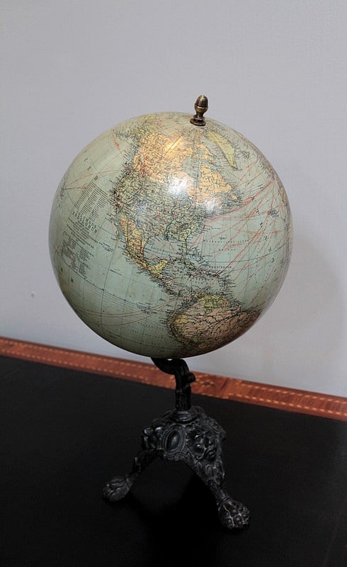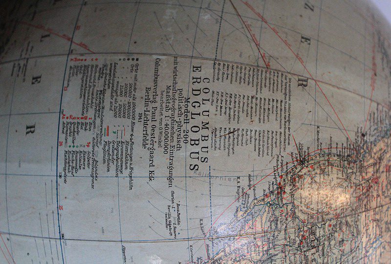 Globe terrestre Columbus Erdglobus Modell 200, à l’échelle 1:40000000, d’origine allemande, signé Columbusverlag Paul Oestergaard K-G.