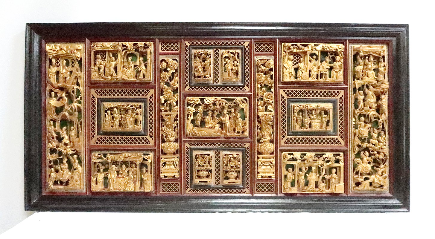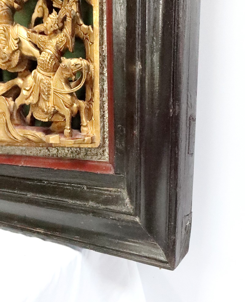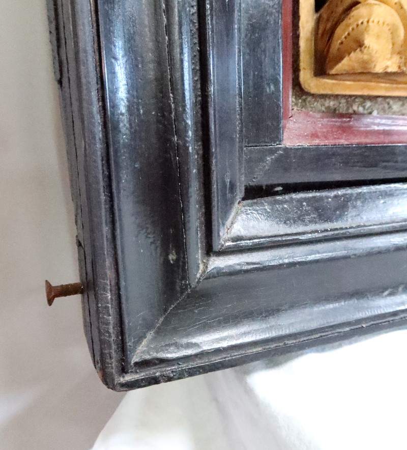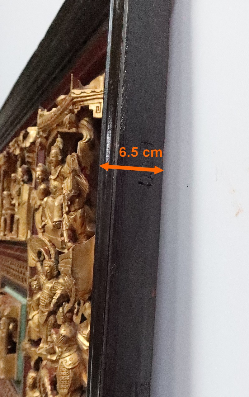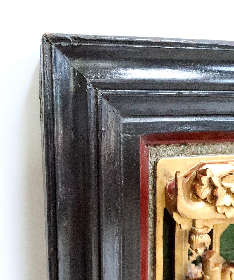 Le large cadre noir de ce panneau est mouluré.