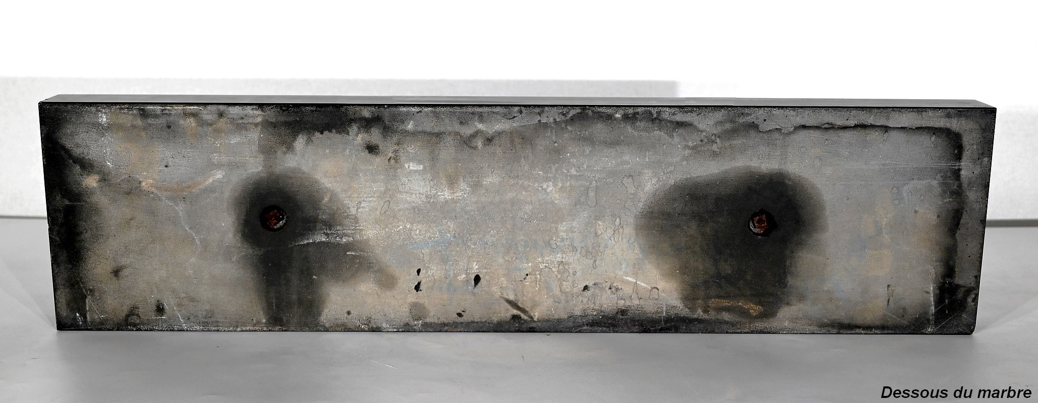 Cet ensemble repose sur un socle rectangulaire en marbre noir plaqué d’onyx d’Algérie.