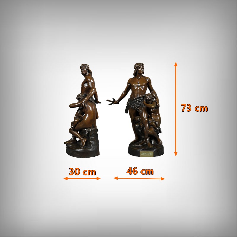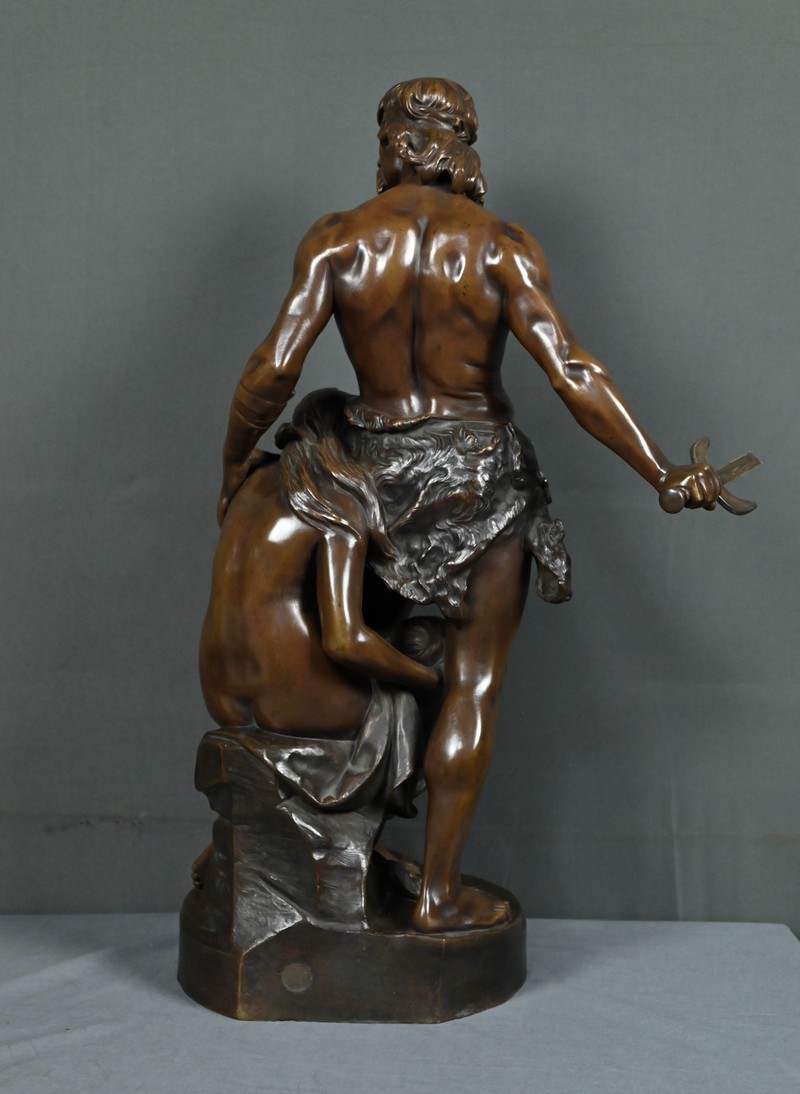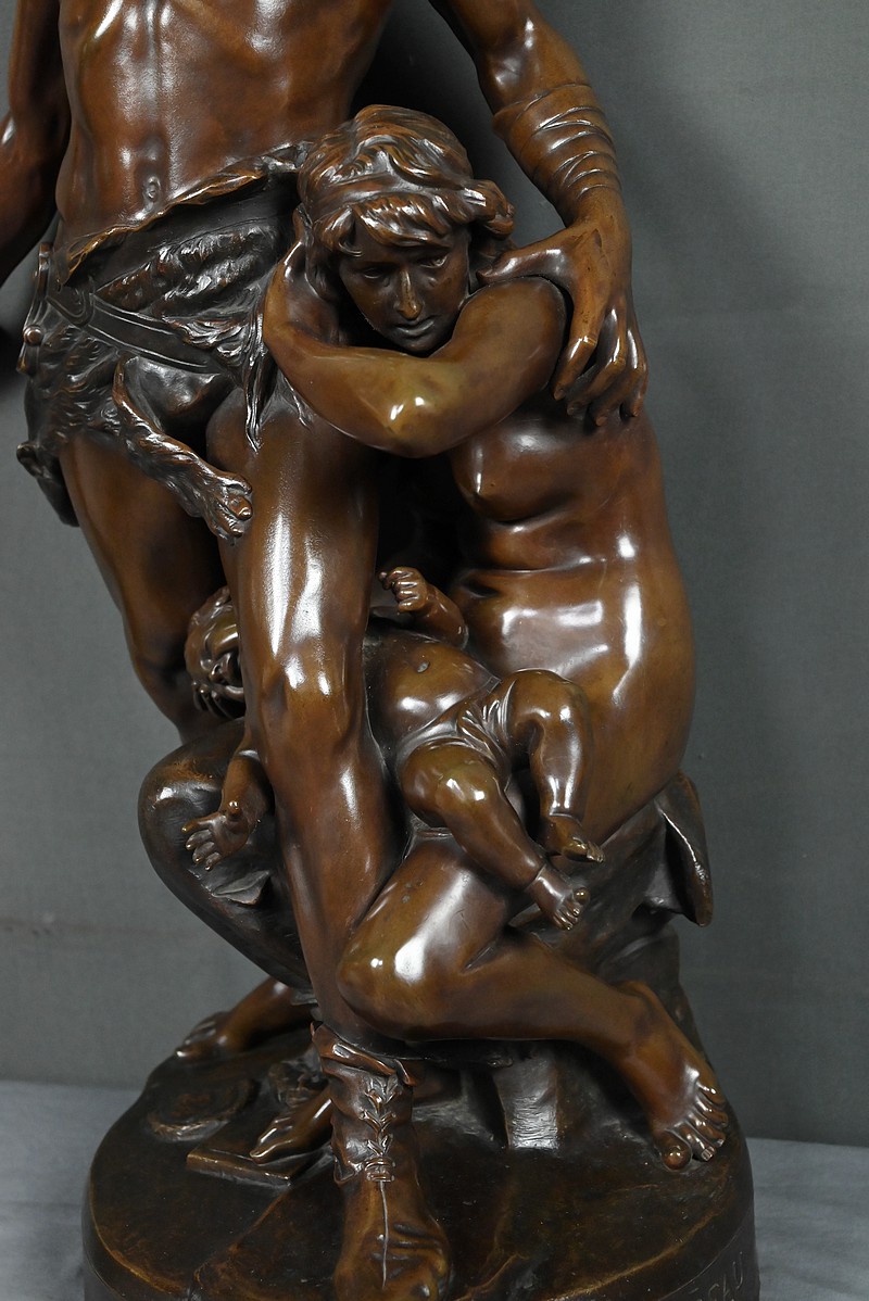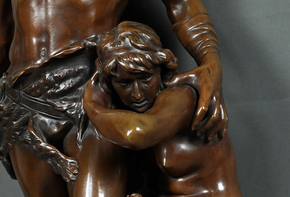 La patine brune accentue les volumes et les contrastes, soulignant les muscles en tension, les drapés tourmentés et les expressions intensément sculptées. L’ensemble dégage une tension narrative saisissante, entre héroïsme et vulnérabilité.