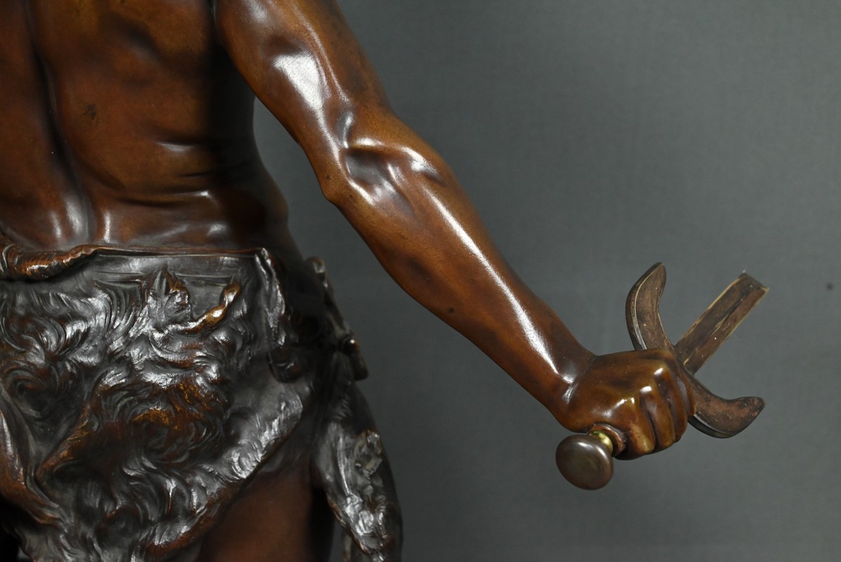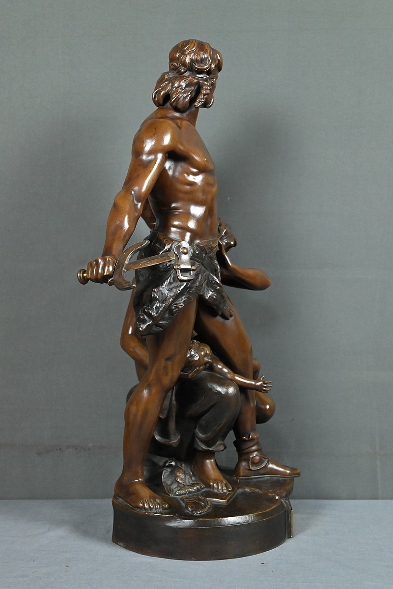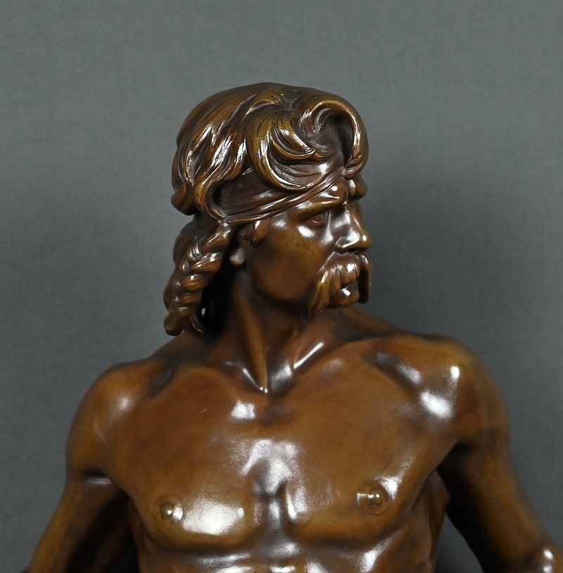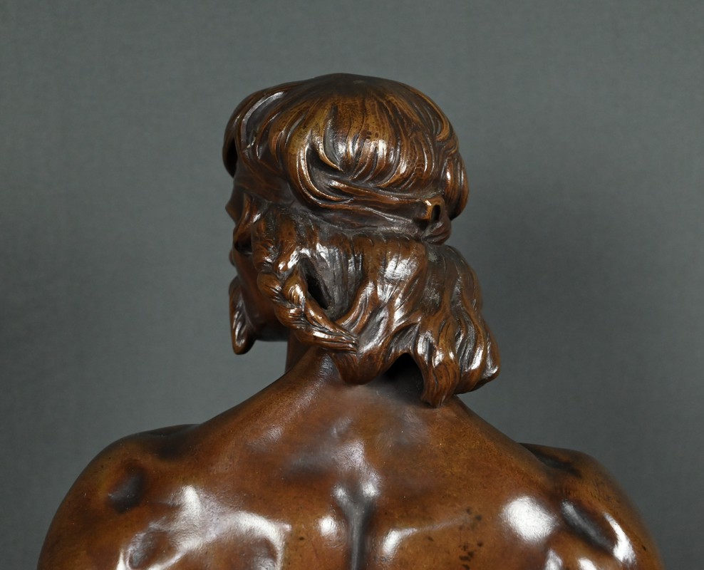 La patine brune accentue les volumes et les contrastes, soulignant les muscles en tension, les drapés tourmentés et les expressions intensément sculptées. L’ensemble dégage une tension narrative saisissante, entre héroïsme et vulnérabilité.
