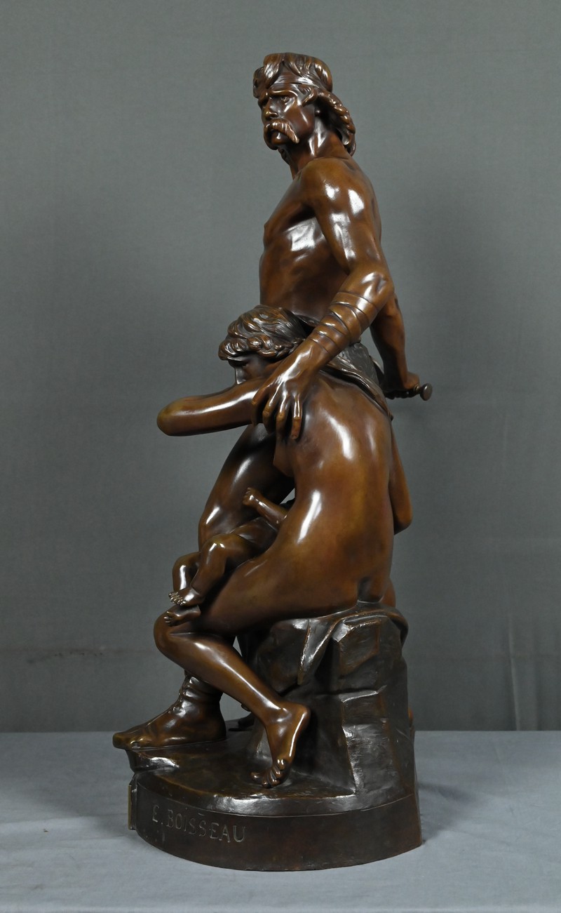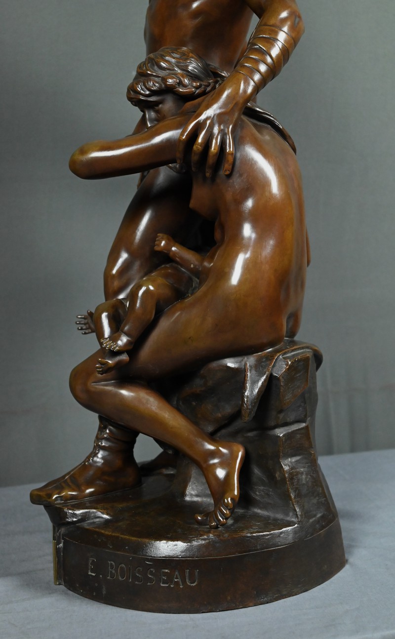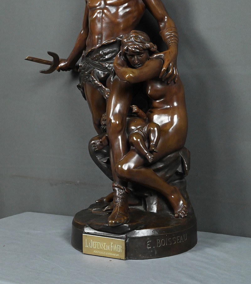 Émile Boisseau (1842-1923) est un sculpteur français. Formé d’abord à Bourges puis à l’École des Beaux-Arts de Paris, il devient l’un des représentants importants de la sculpture académique de la fin du XIXᵉ siècle. Élève de Bonnassieux et Dumont, il expose régulièrement au Salon à partir de 1868. Son œuvre se caractérise par une grande sensibilité narrative, un goût pour les sujets allégoriques et patriotiques, et une maîtrise solide des compositions de groupe. Parmi ses réalisations les plus connues figurent « La Défense du Foyer », dont une version monumentale se trouve au square d’Ajaccio à Paris, ainsi que « Le Crépuscule » et « L’Amour captif ». Boisseau occupe également plusieurs fonctions institutionnelles : directeur du musée de Clamecy, vice‑président de la Société des artistes français, et président du syndicat de la propriété artistique. Il est nommé Officier de la Légion d’honneur en 1900. Il meurt à Paris en 1923, laissant une œuvre marquée par l’émotion, la rigueur académique et un profond humanisme.