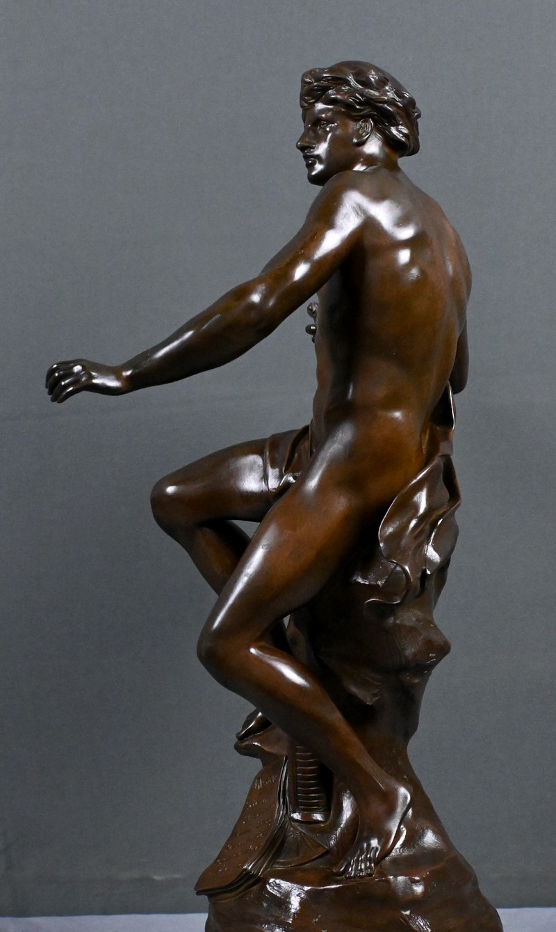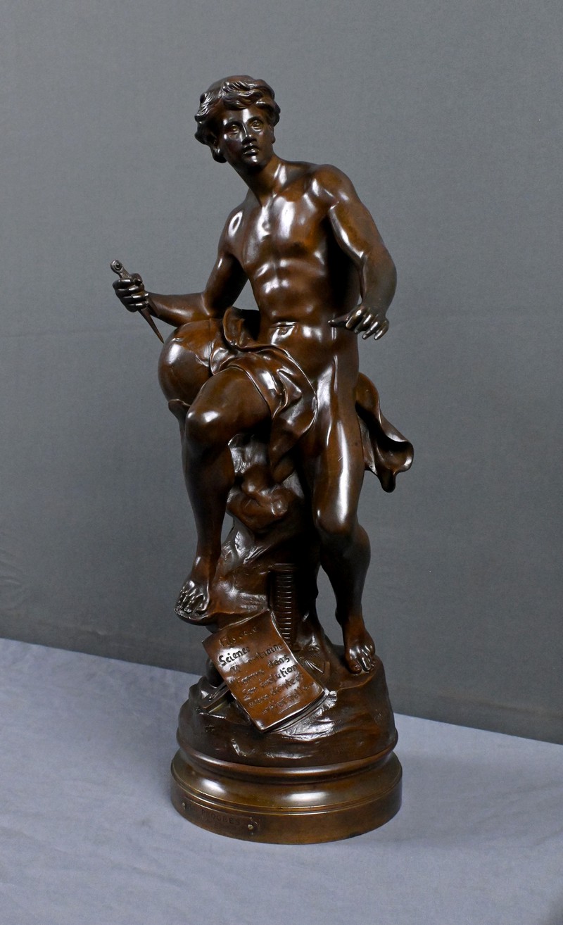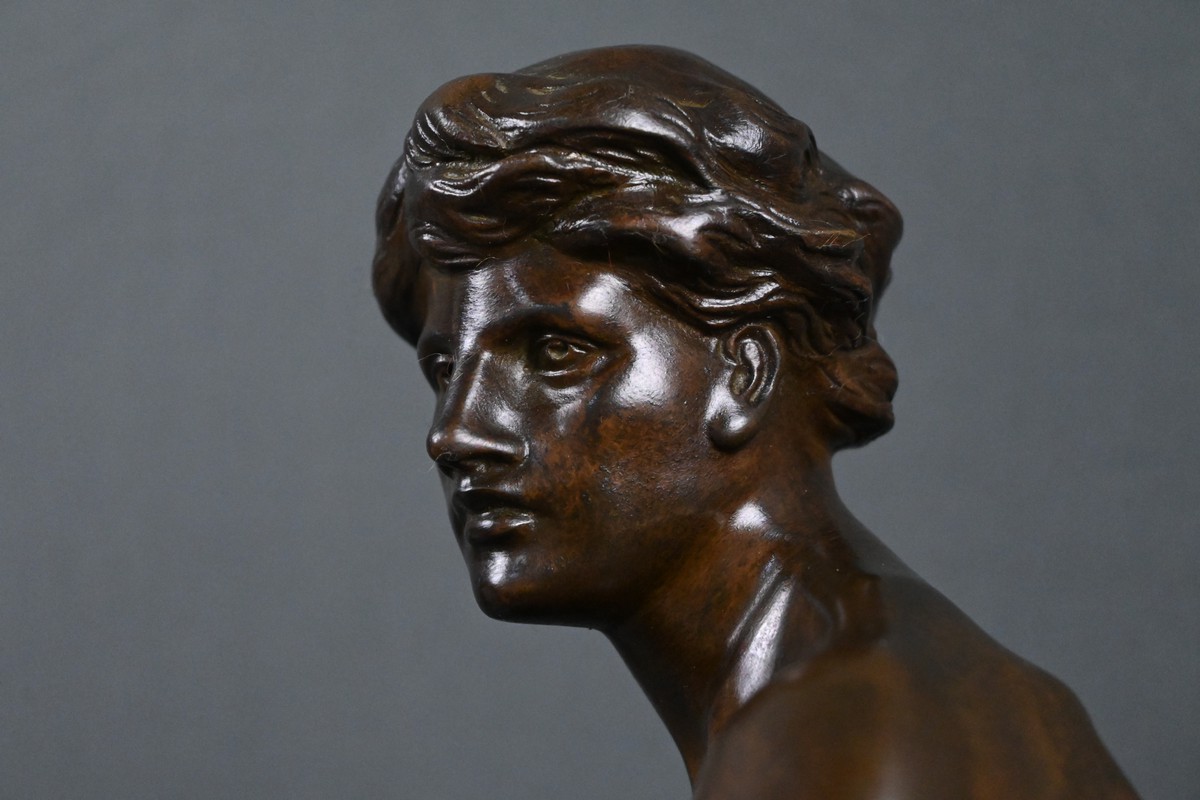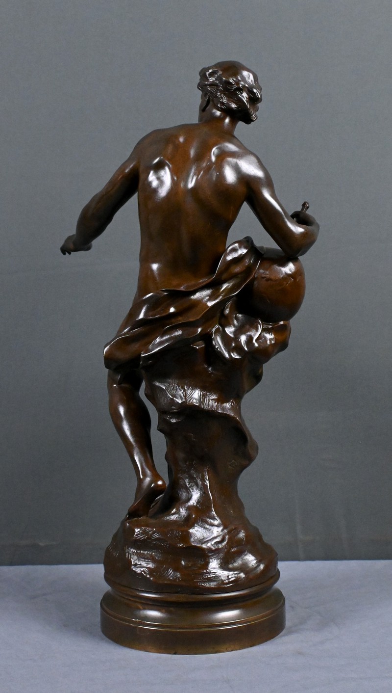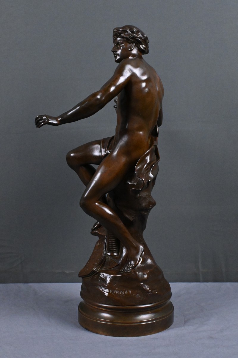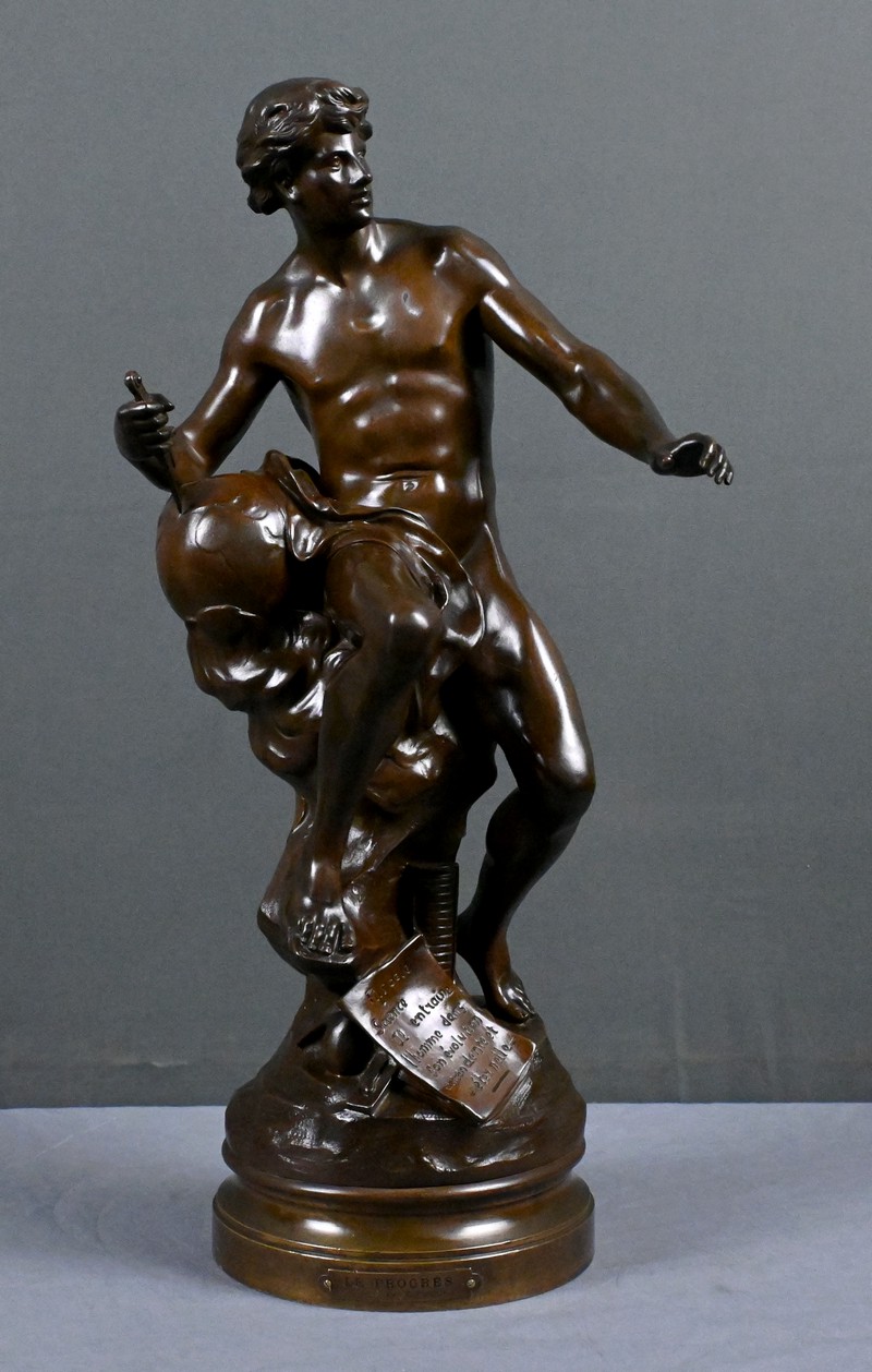 Superbe bronze allégorique d’Émile‑Louis Picault, l’un des sculpteurs les plus emblématiques de la fin du XIXᵉ siècle. Cette œuvre, intitulée Le Progrès, illustre parfaitement son style énergique, narratif et profondément symbolique.