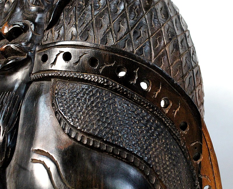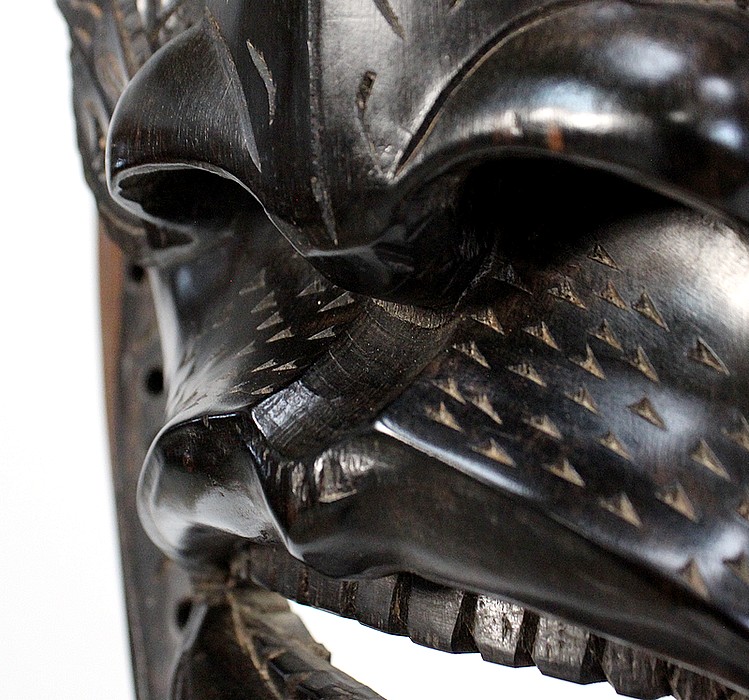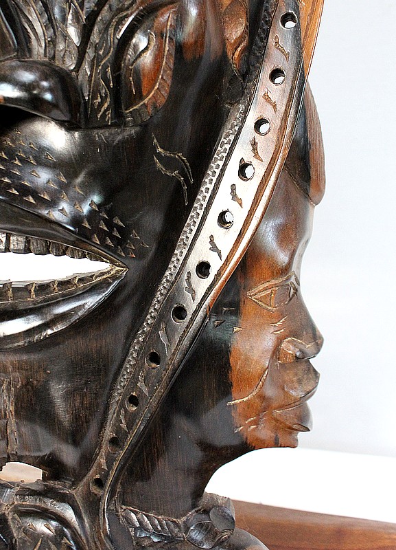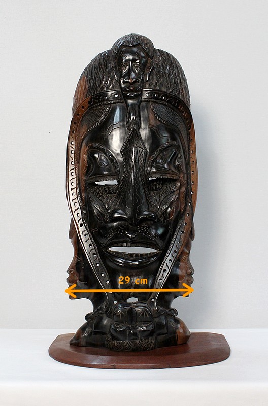 Vous contemplerez sans réserve cet objet d’ailleurs qui sera remarqué pour sa finesse d’ouvrage. Ce masque artistique trouvera parfaitement sa place en exposition sur une enfilade, un buffet ou bien à même le sol.