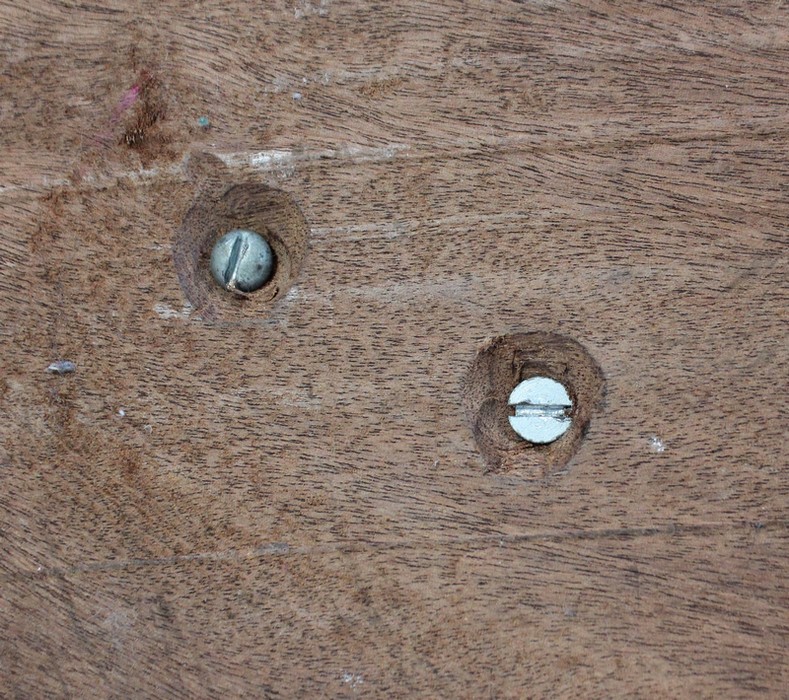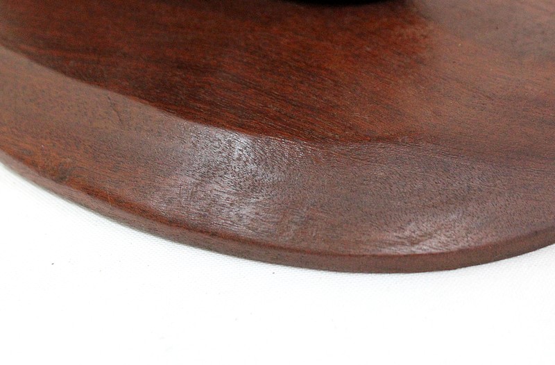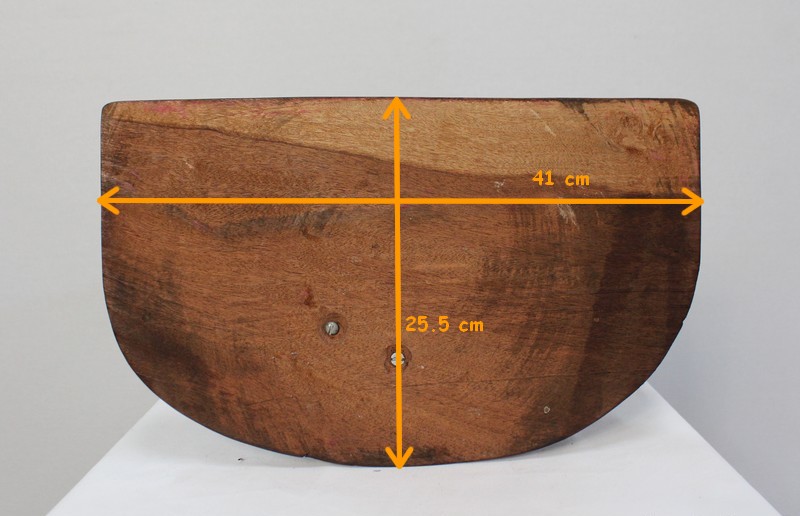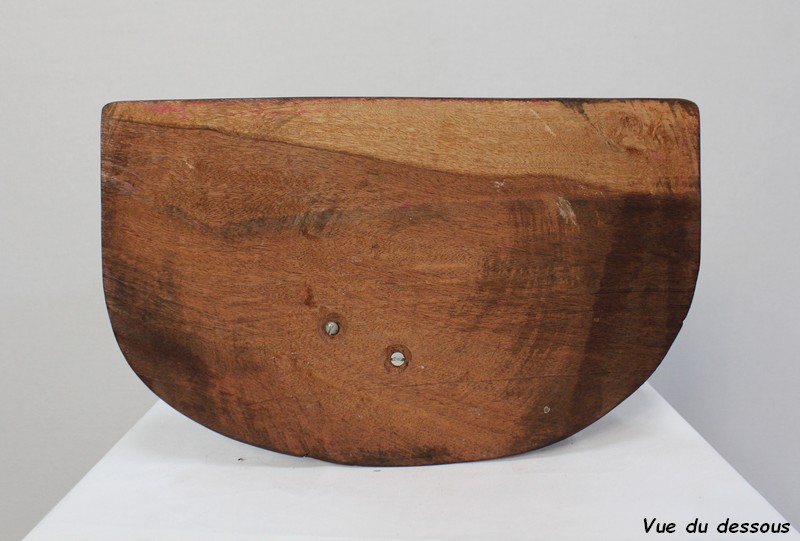 L’ensemble repose sur un socle en bois plus clair, formé en demi cercle et épais de 2 cm.