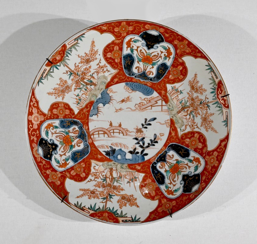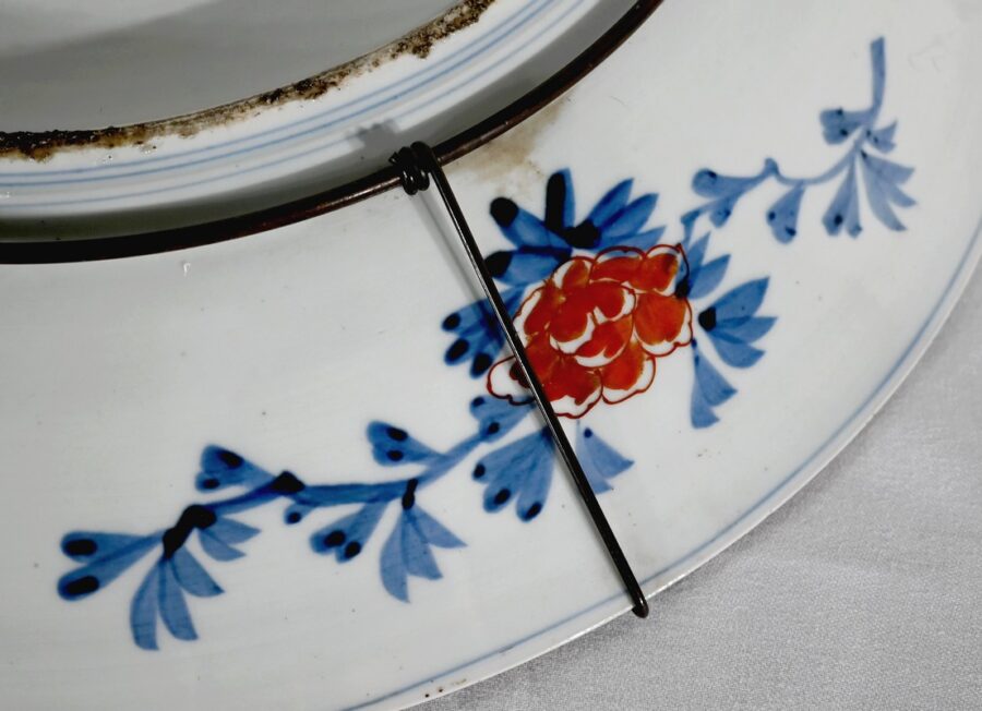 Cet important plat en porcelaine qui bénéficié d’une accroche mural à trois points ravira, entre autres, les amateurs d’art asiatique.