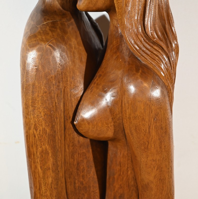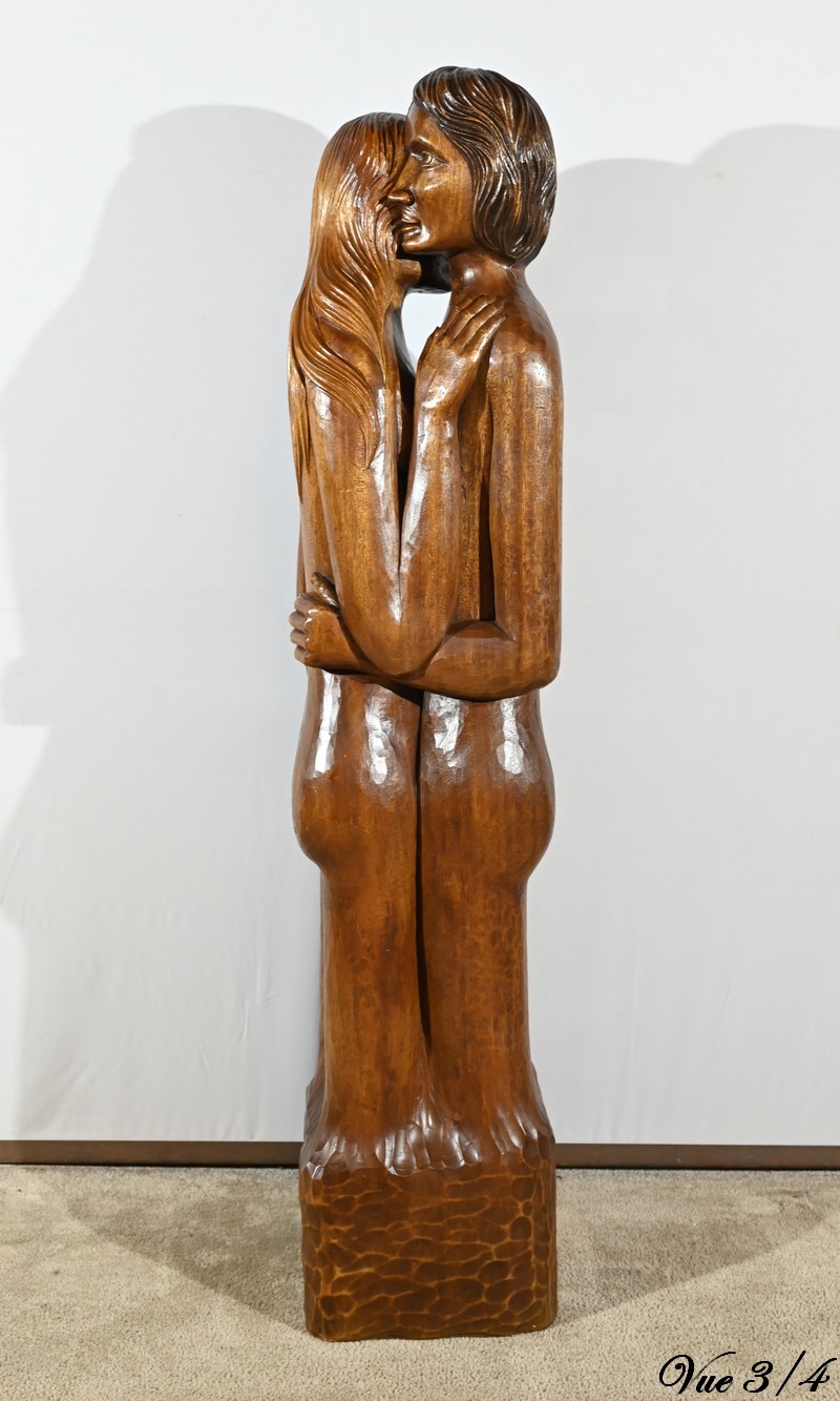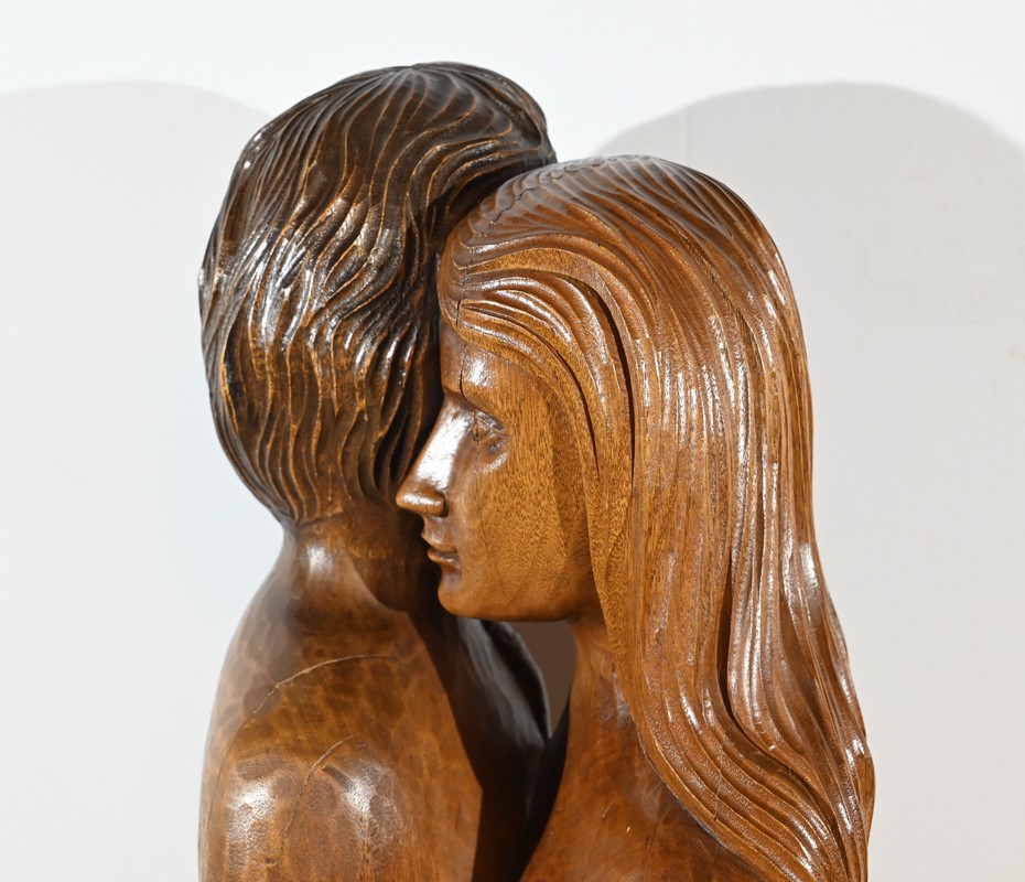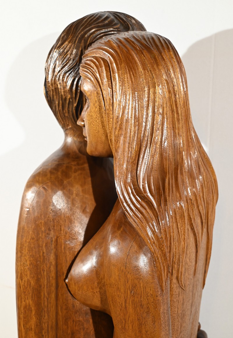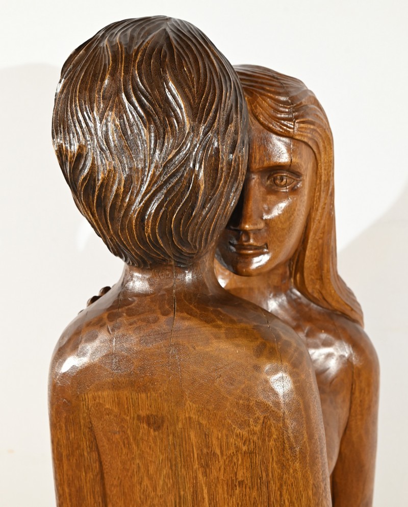 Sculpté dans la même masse, cette œuvre figure un homme et une femme dans le plus simple appareil.