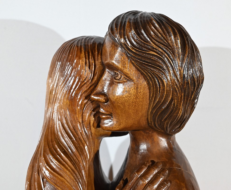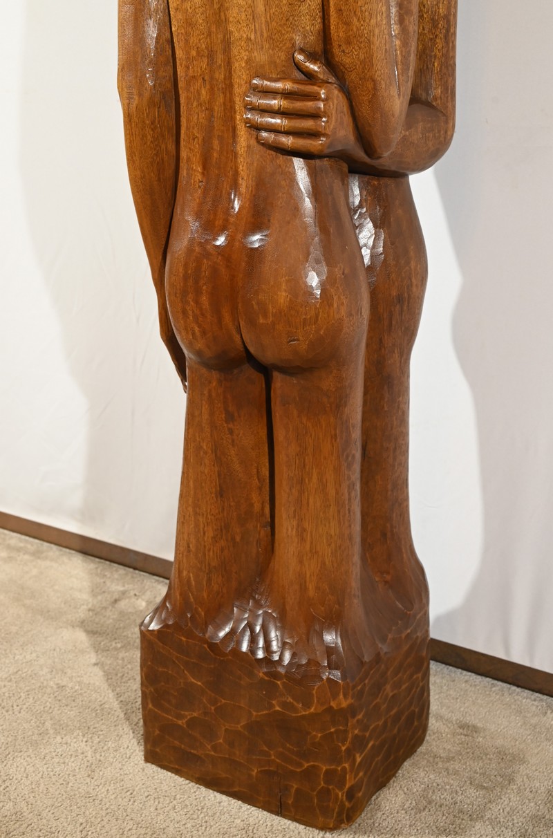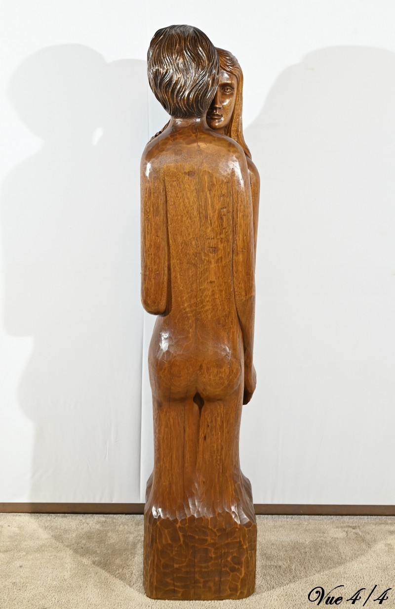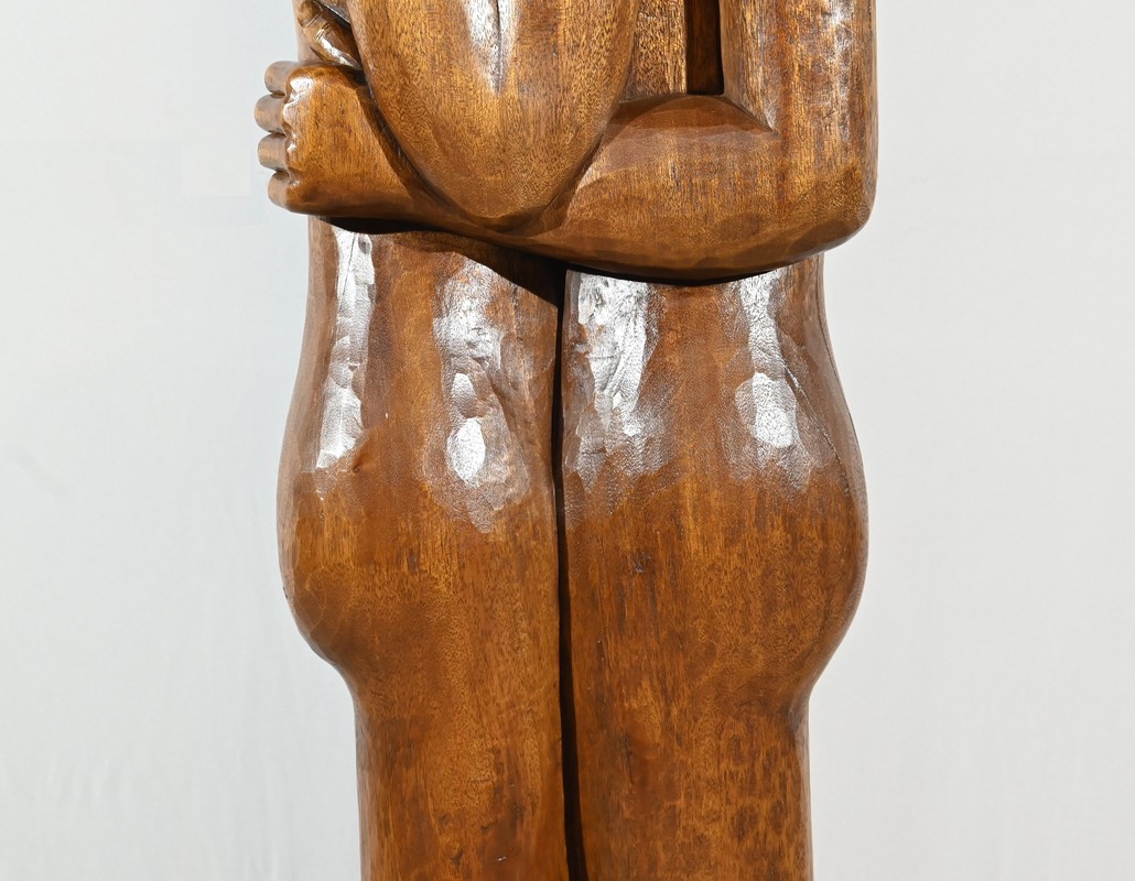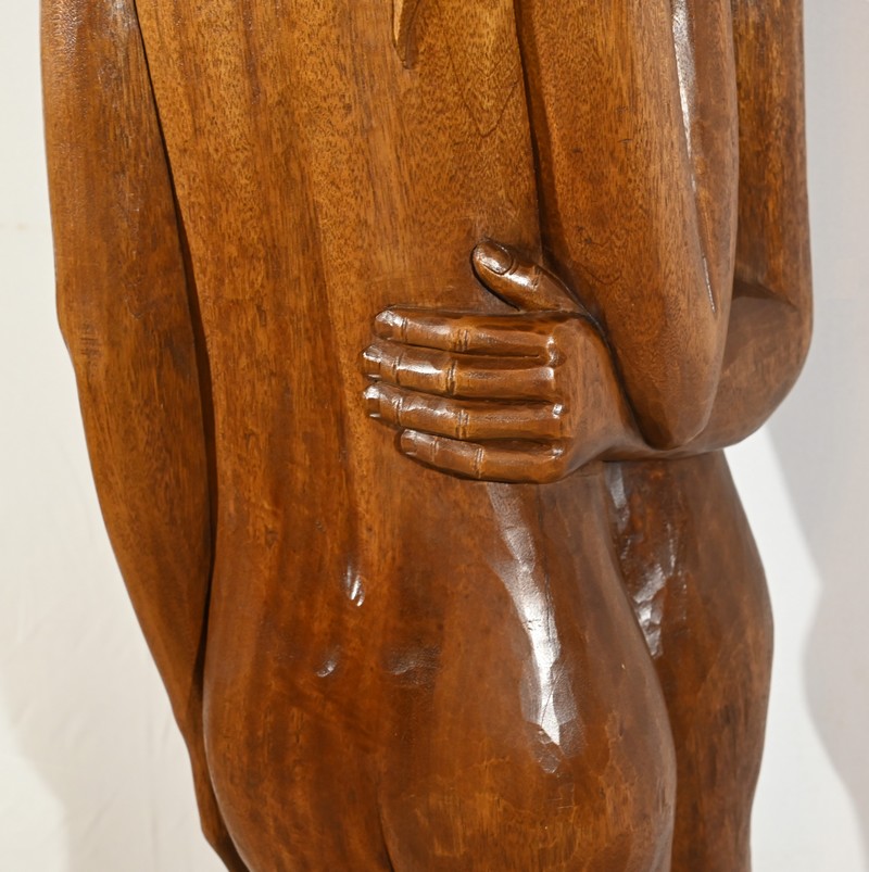 Sculpté dans la même masse, cette œuvre figure un homme et une femme dans le plus simple appareil.