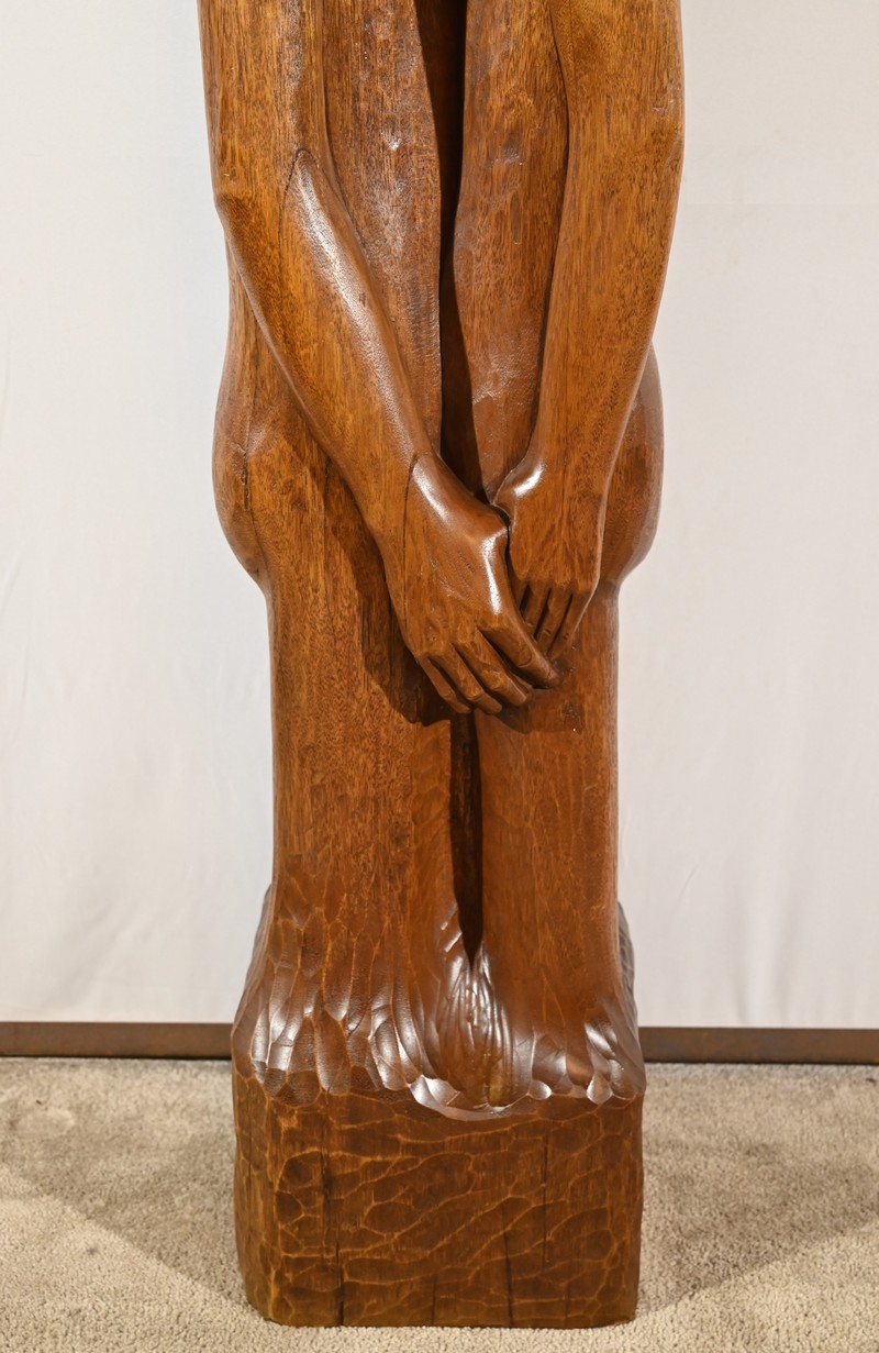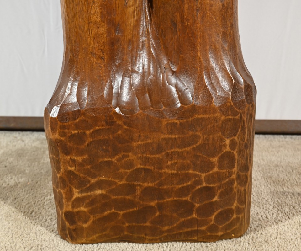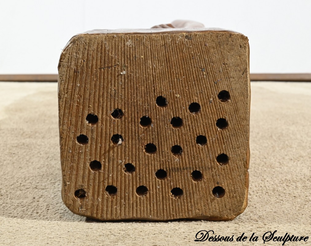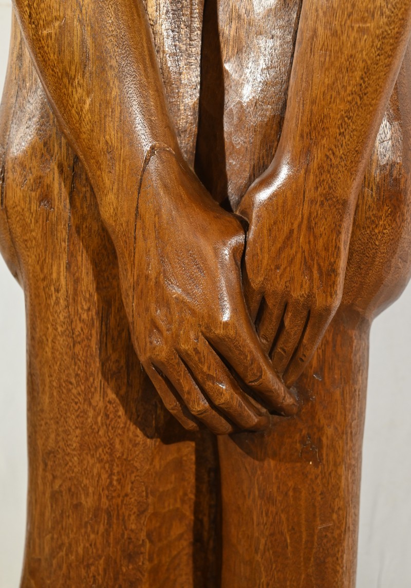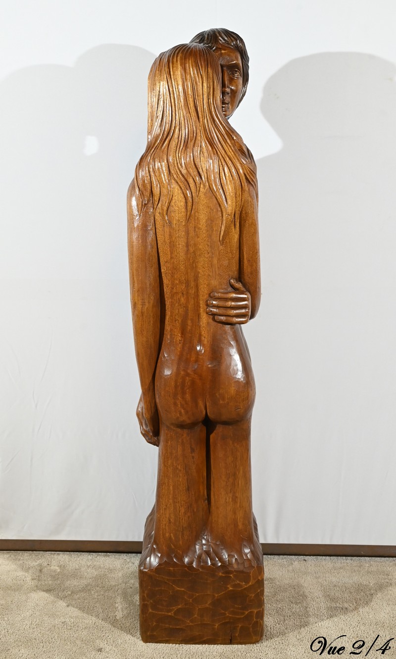 Sculpté dans la même masse, cette œuvre figure un homme et une femme dans le plus simple appareil.