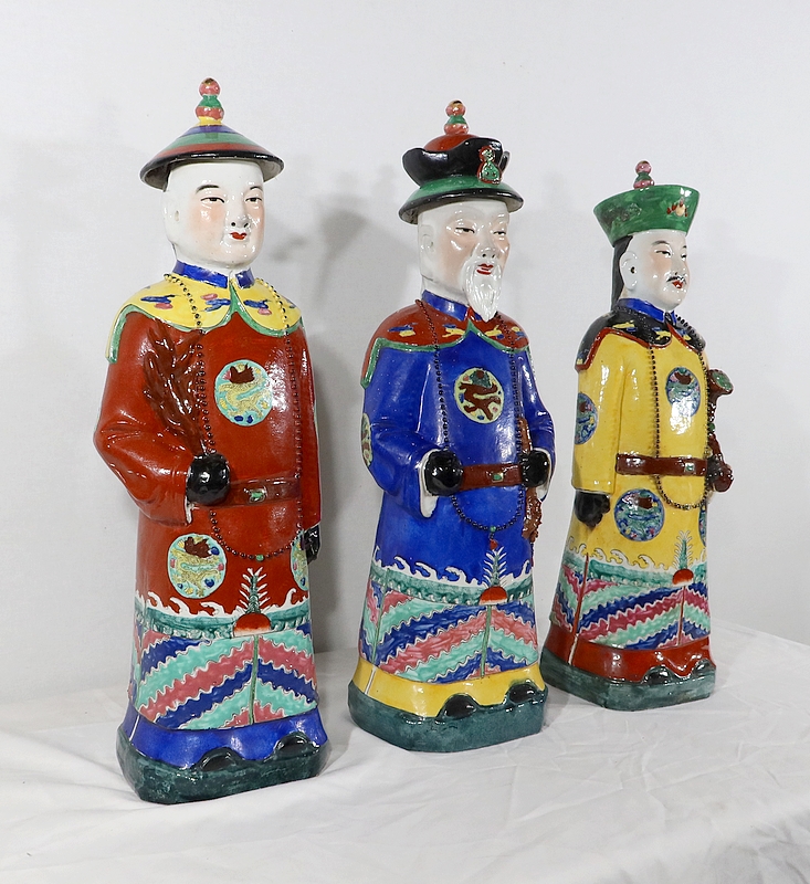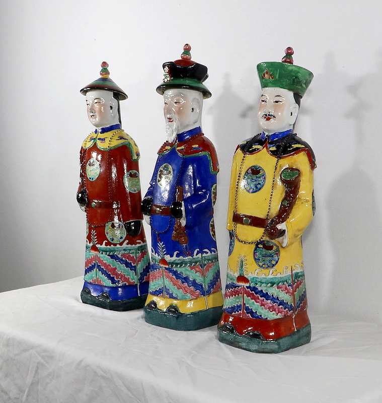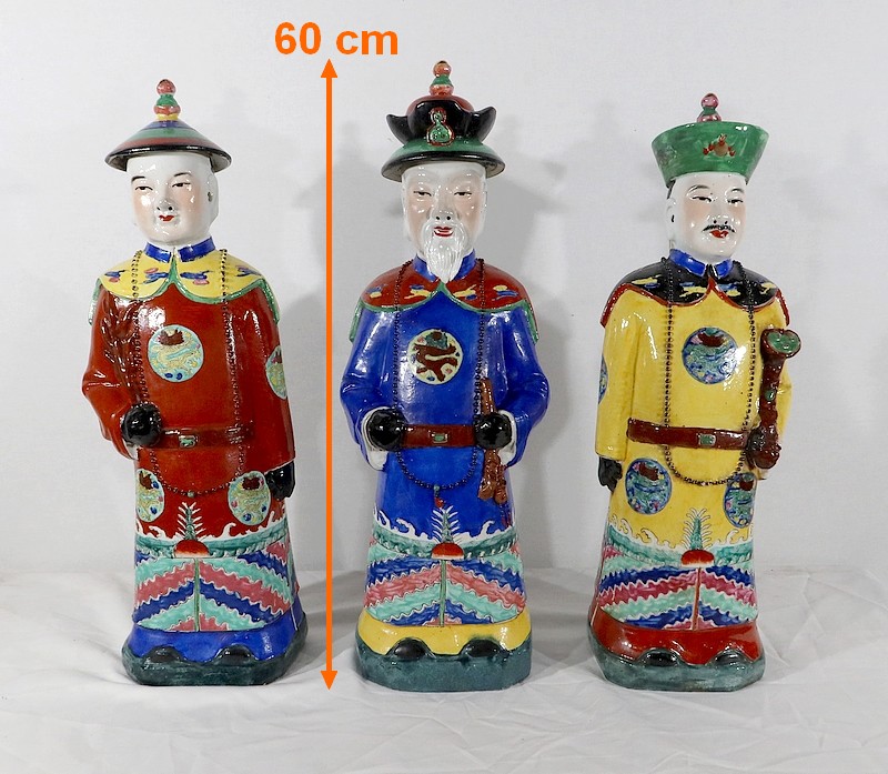 Importantes Statues en Faïence « Les Dignitaires Mandarins », Chine – XXe