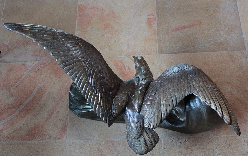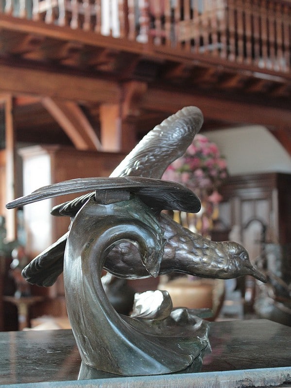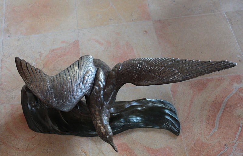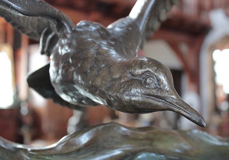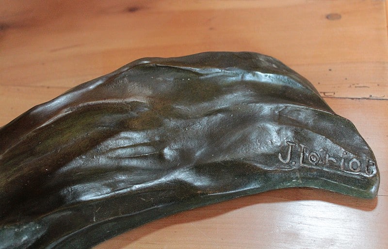 Mouette sur la vague en régule patiné vert/doré de J. LORIOT.