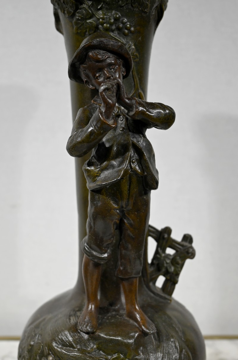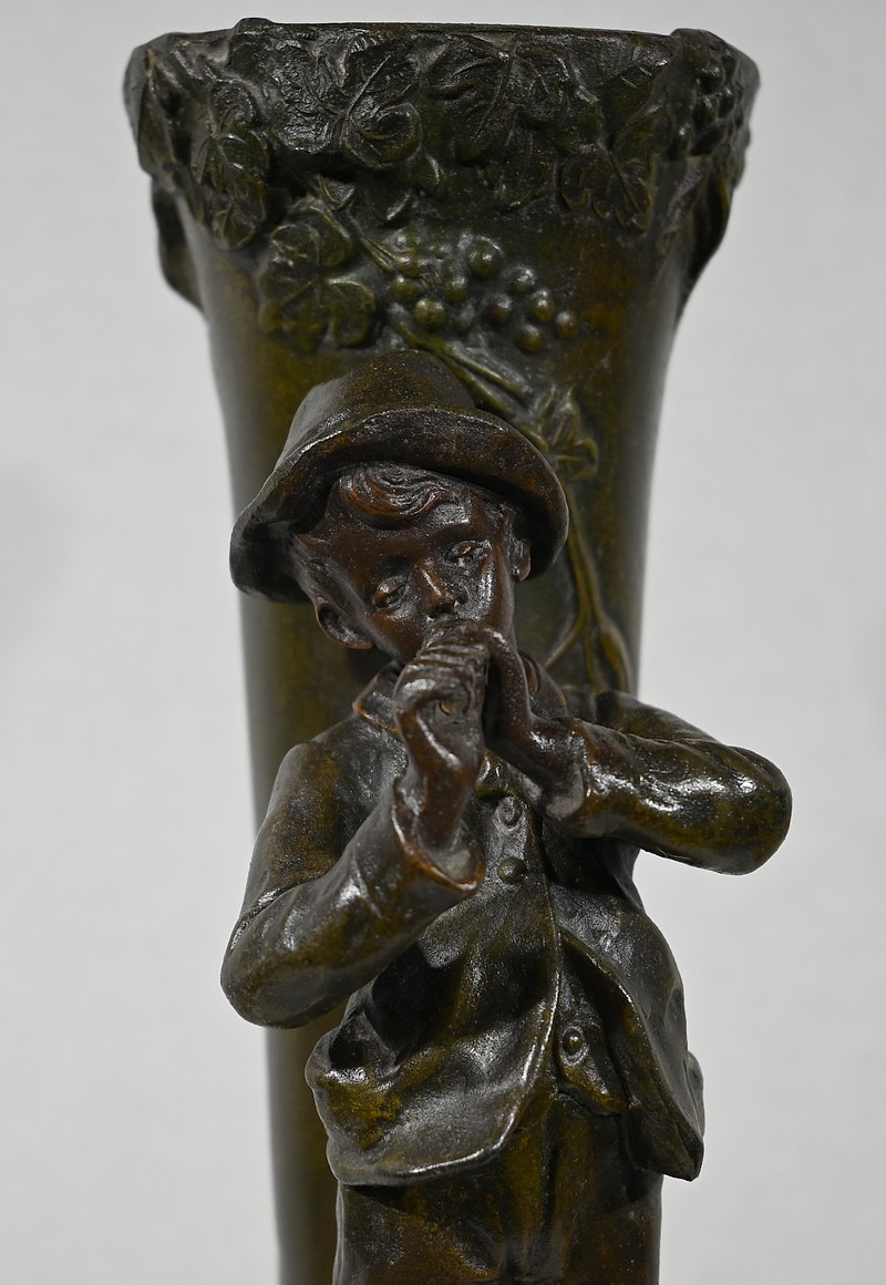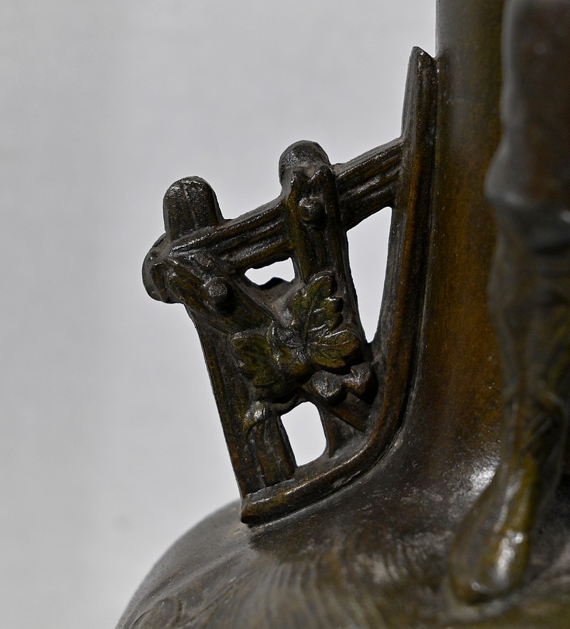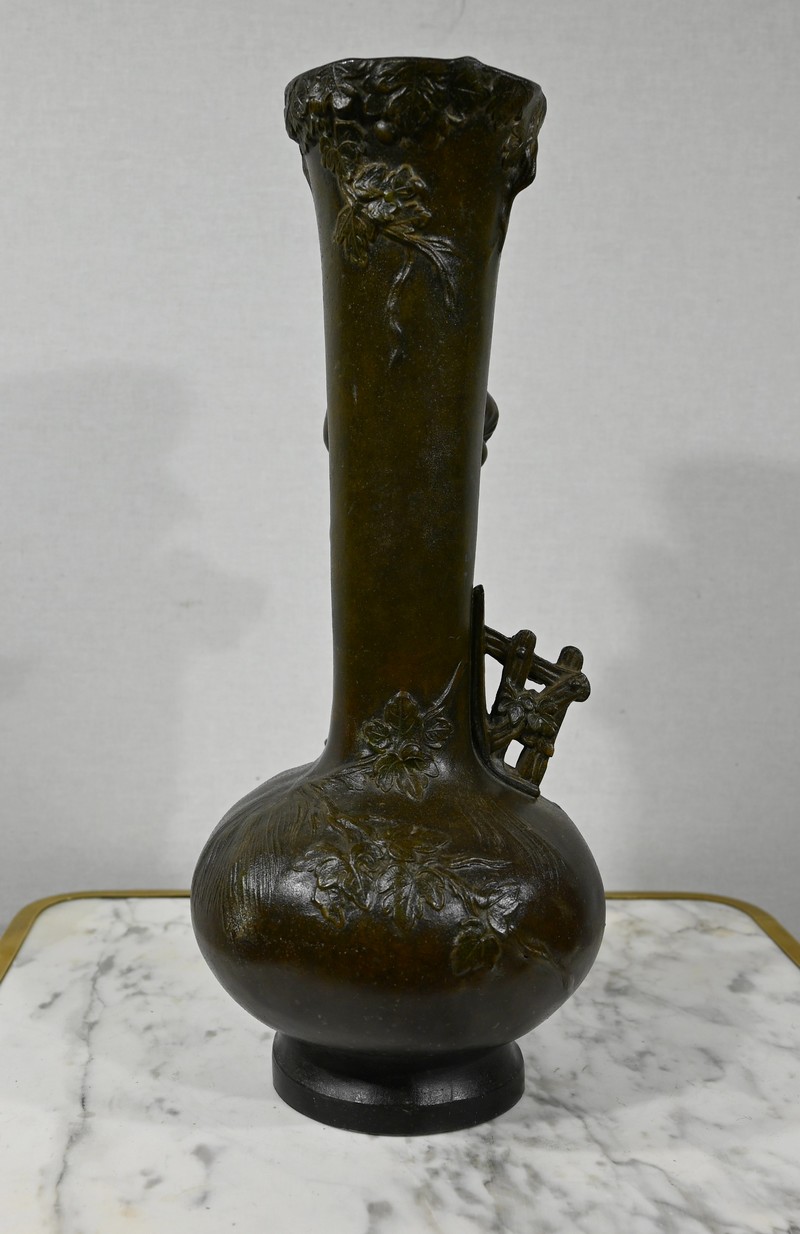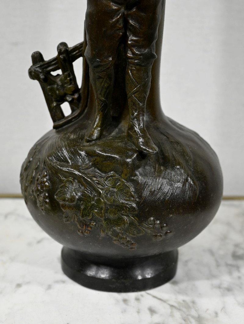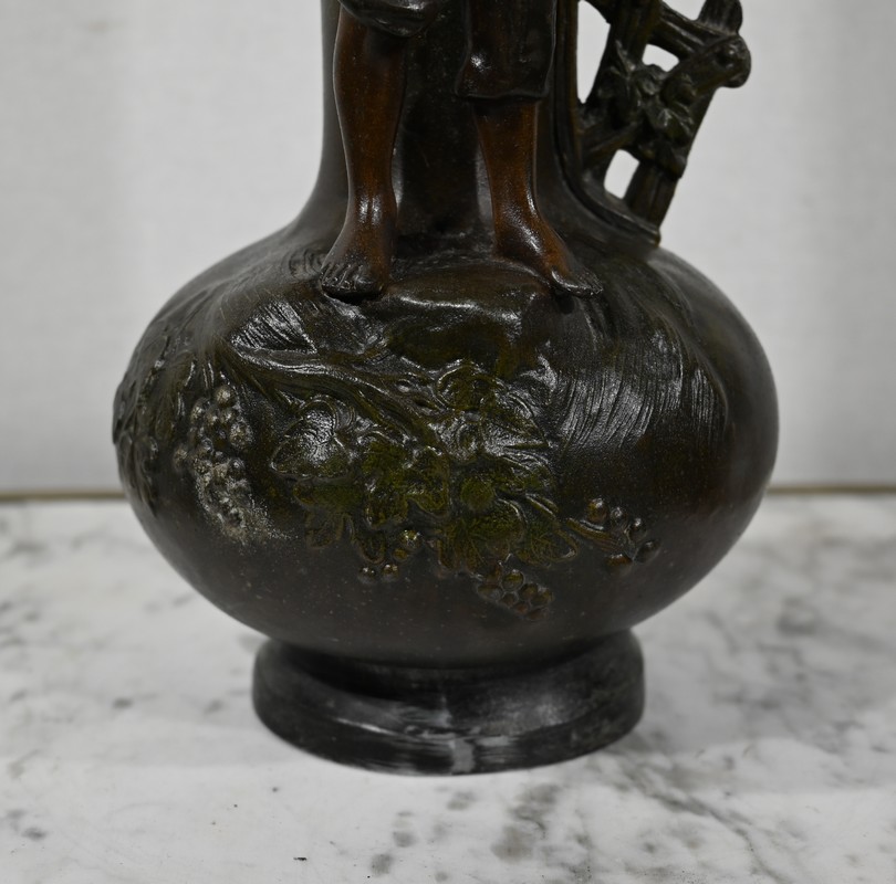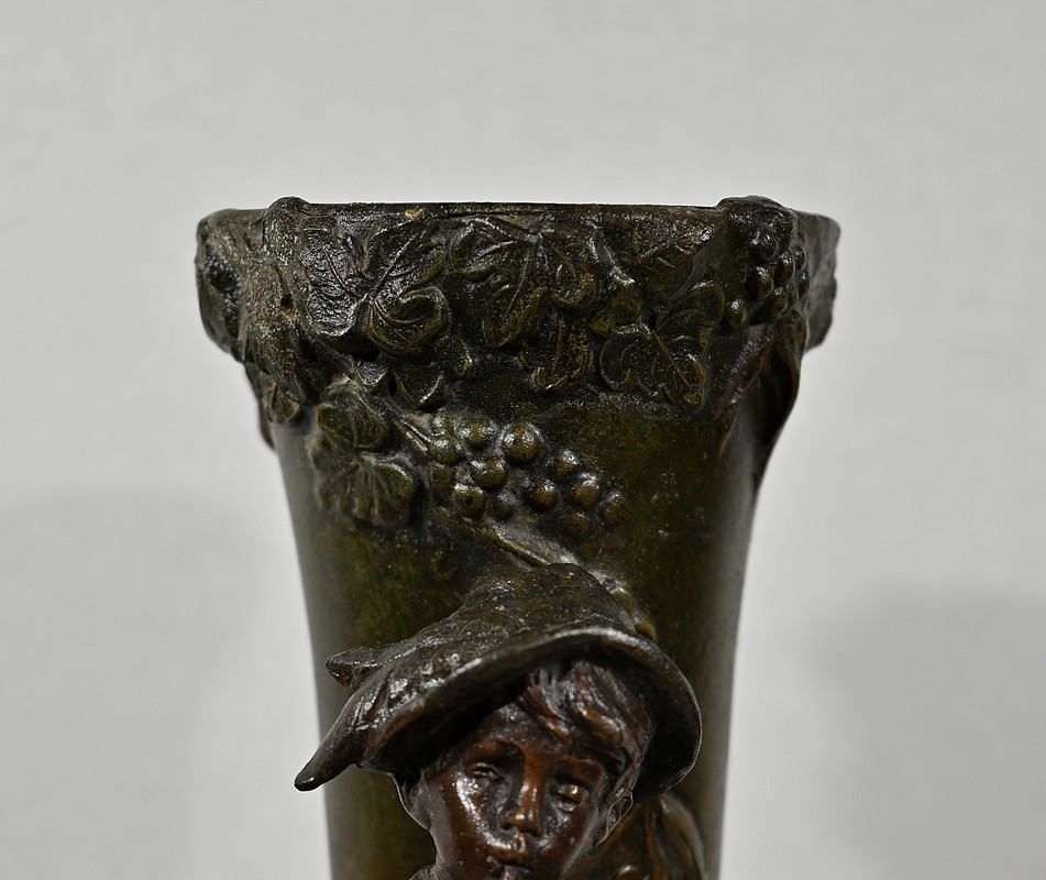 Jolis vases en régule à double patine, verte et brune, dans l’esprit des œuvres d’Auguste Moreau.