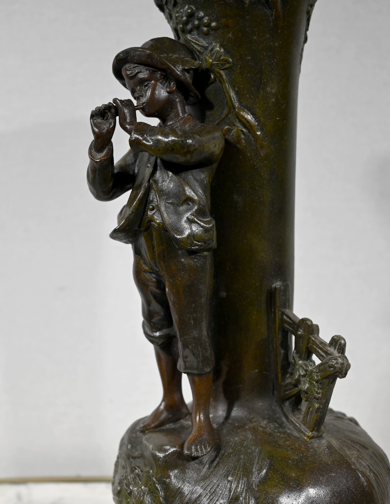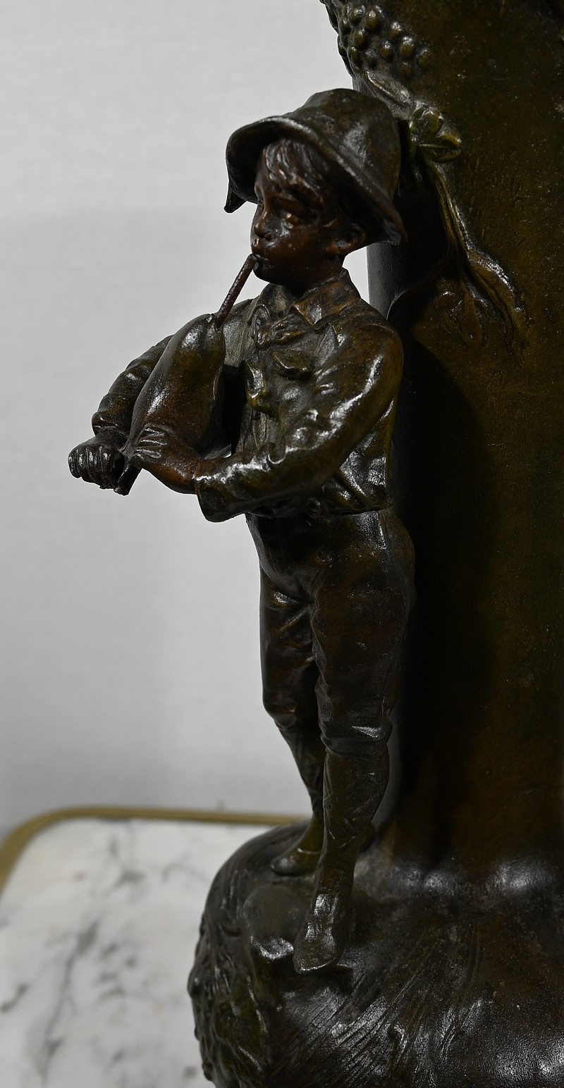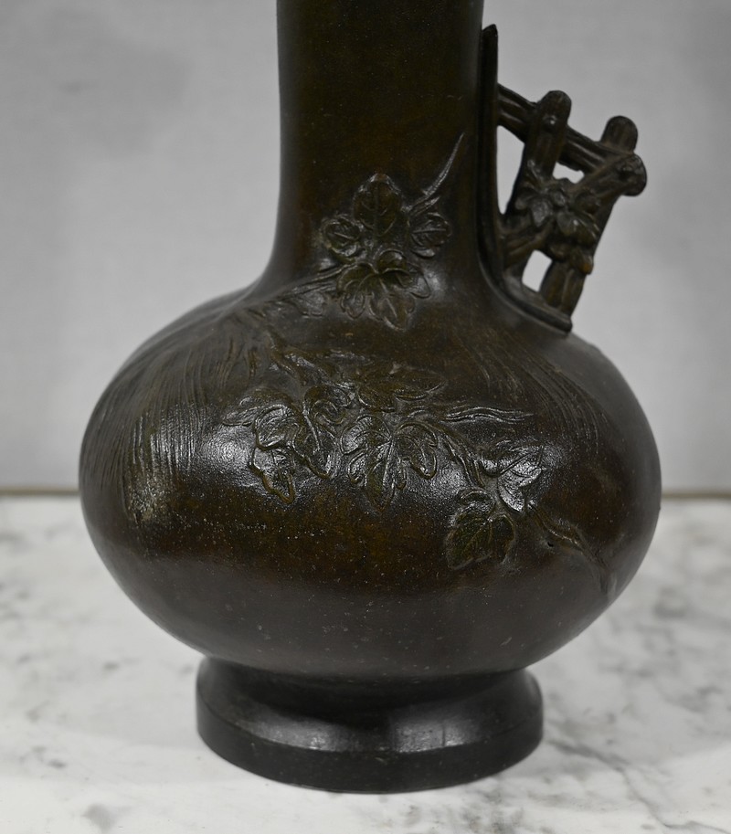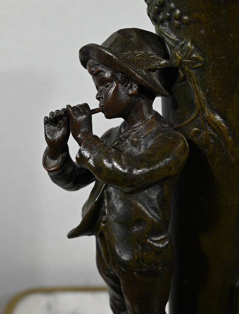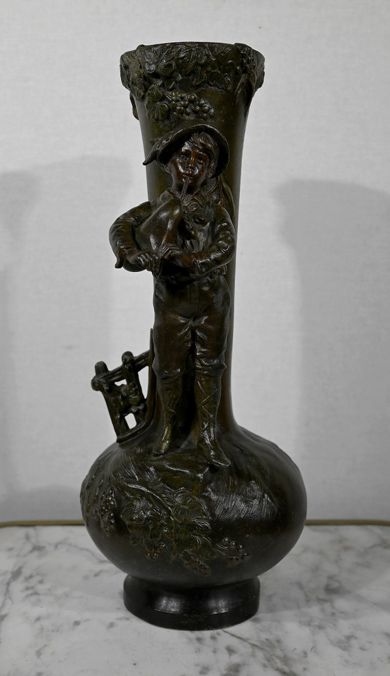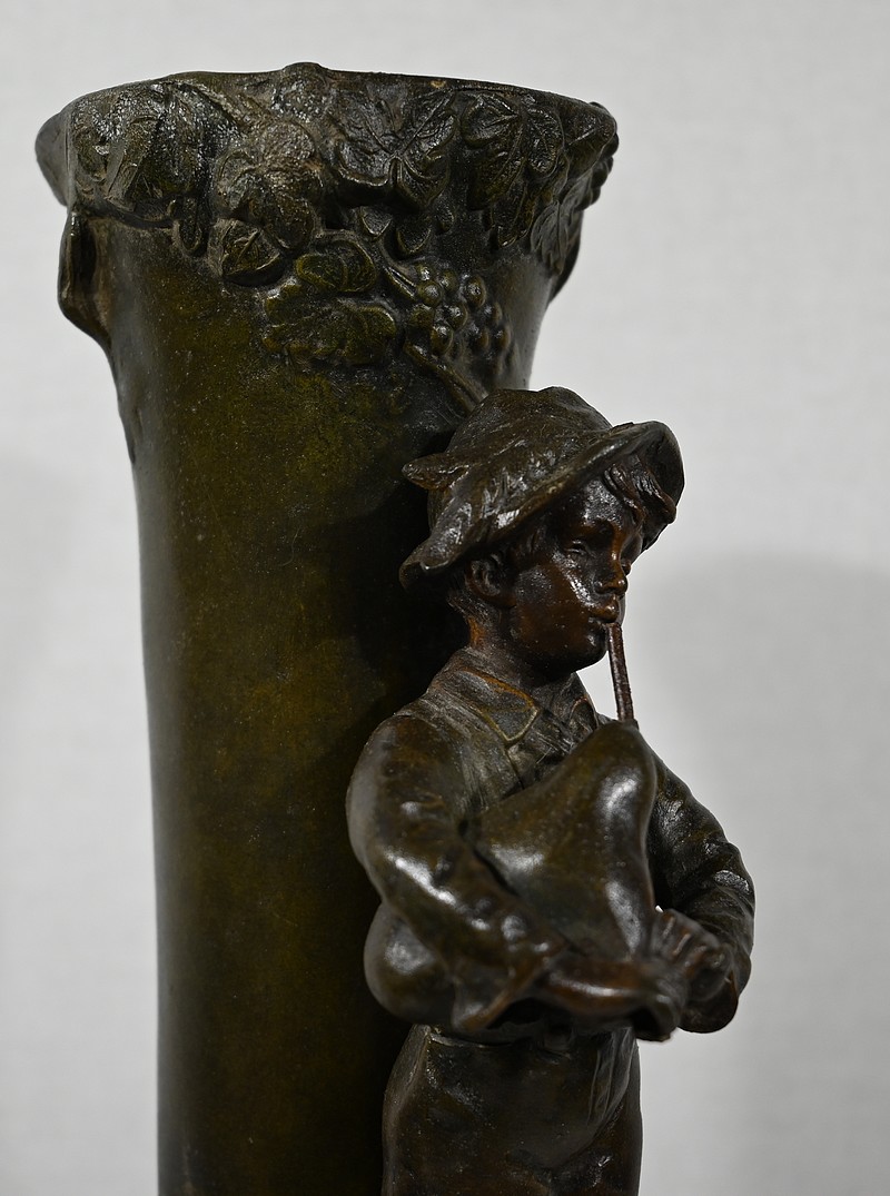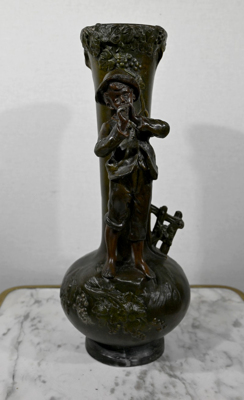 Jolis vases en régule à double patine, verte et brune, dans l’esprit des œuvres d’Auguste Moreau.