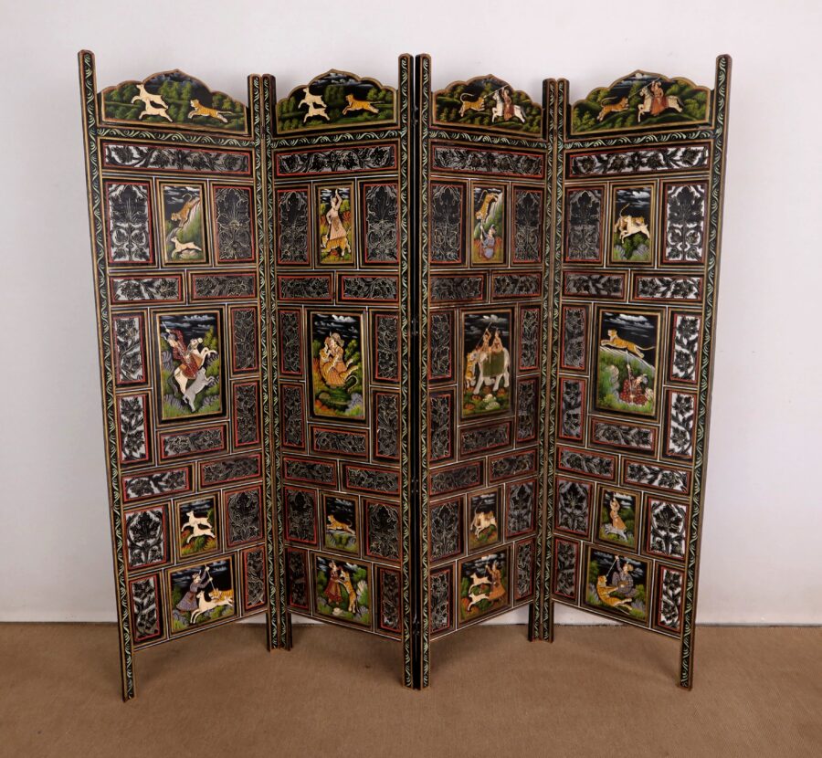 Ce paravent unique combine art indien et fonctionnalité. Cet élément de décoration de grand dimensionnel ajoutera profondeur et caractère à votre décor d’intérieur.