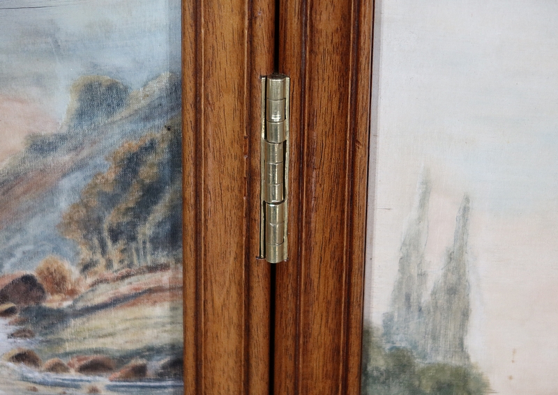 Ces quatre éléments s’articulent sur des charnières à débord en laiton d’origine.