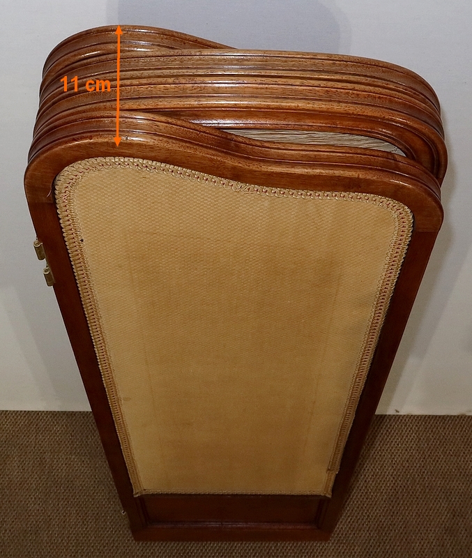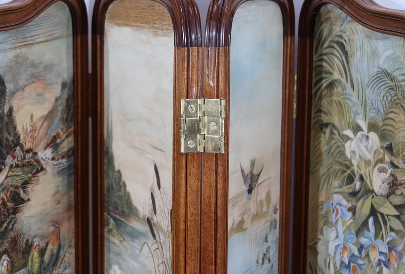 Charmant petit paravent de style Art Nouveau avec un encadrement en noyer massif mouluré et à gorge. Chacune des quatre feuilles comporte en partie basse un petit panneau rectangulaire à plate bande.