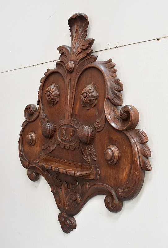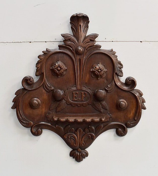 Au centre, les lettres ‘E.P’ sont marquées dans le Bois et encerclées d’une frise. Probable qu’il y a un siècle, le premier propriétaire de ce bien ai souhaité y voir gravé ses initiales.