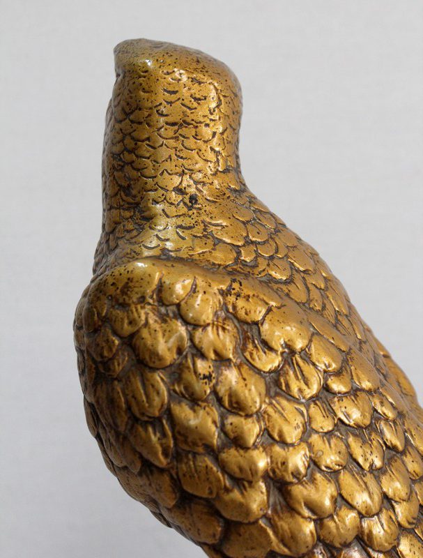 Cette sculpture plaira sans conteste aux amateurs d’ornithologie ou de fauconnerie, tout en illuminant leur intérieur par sa teinte doré.