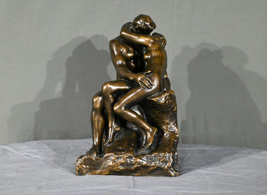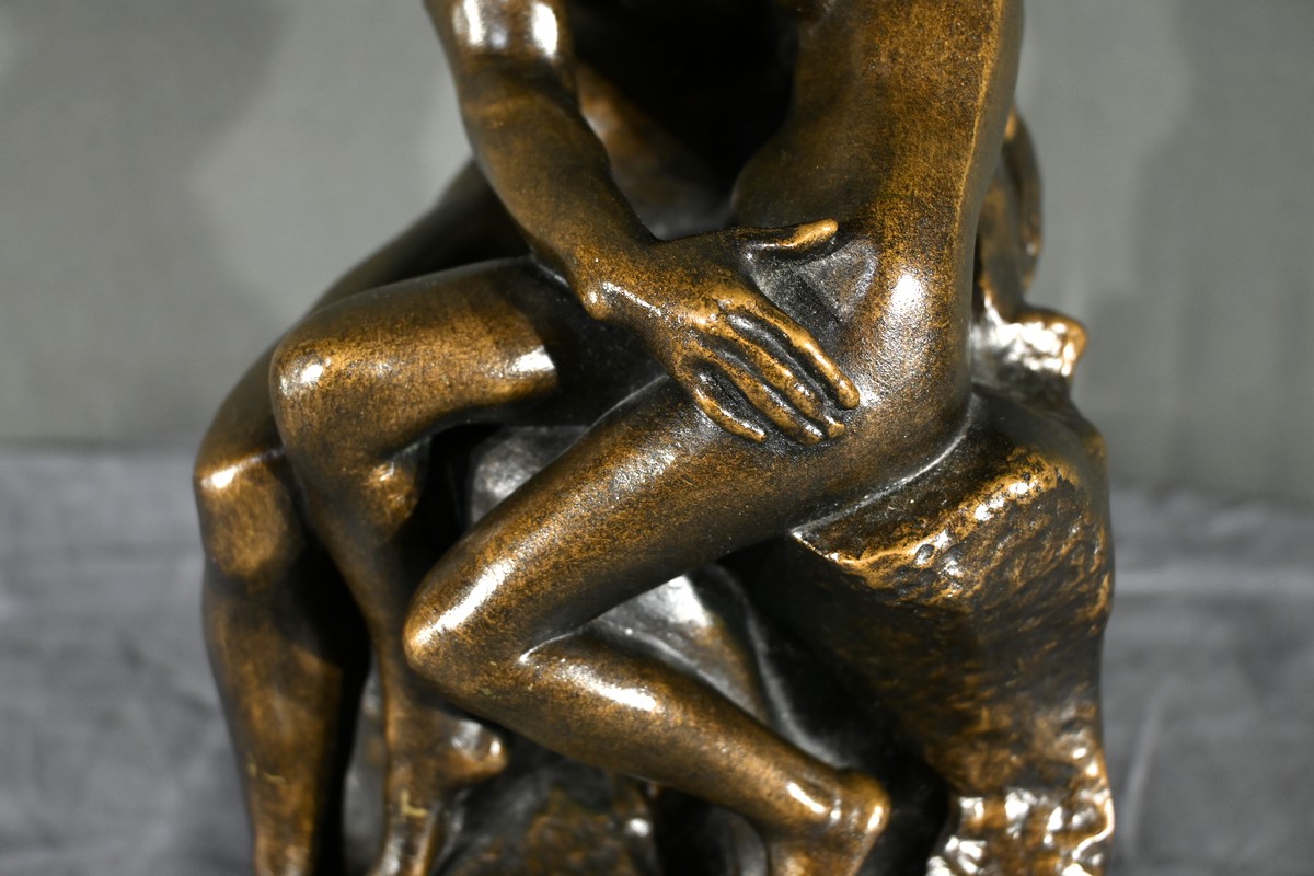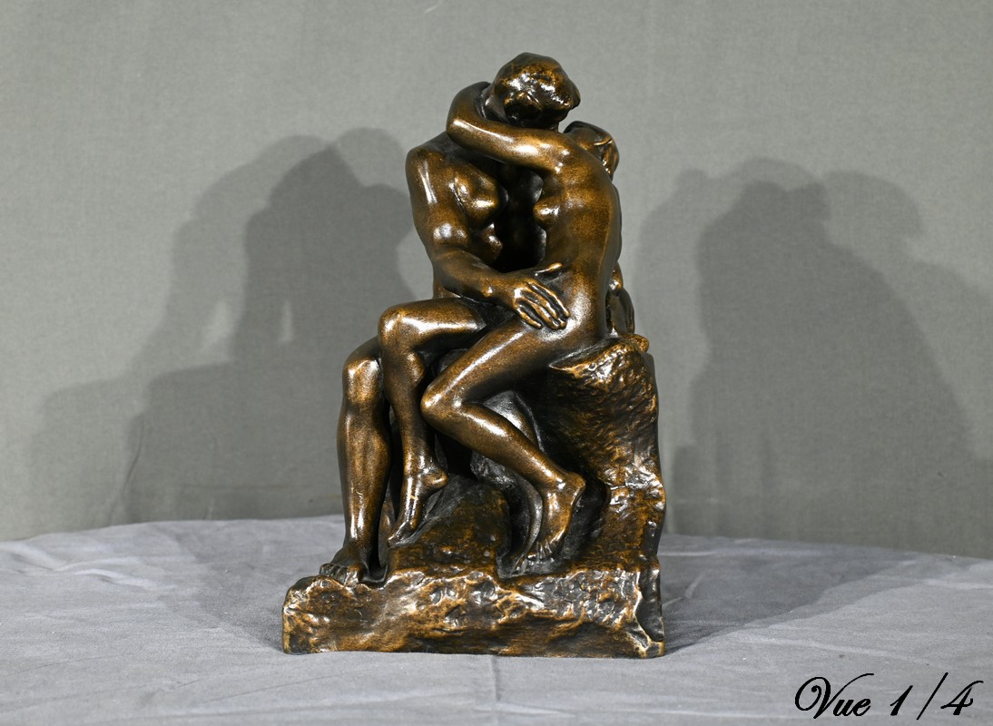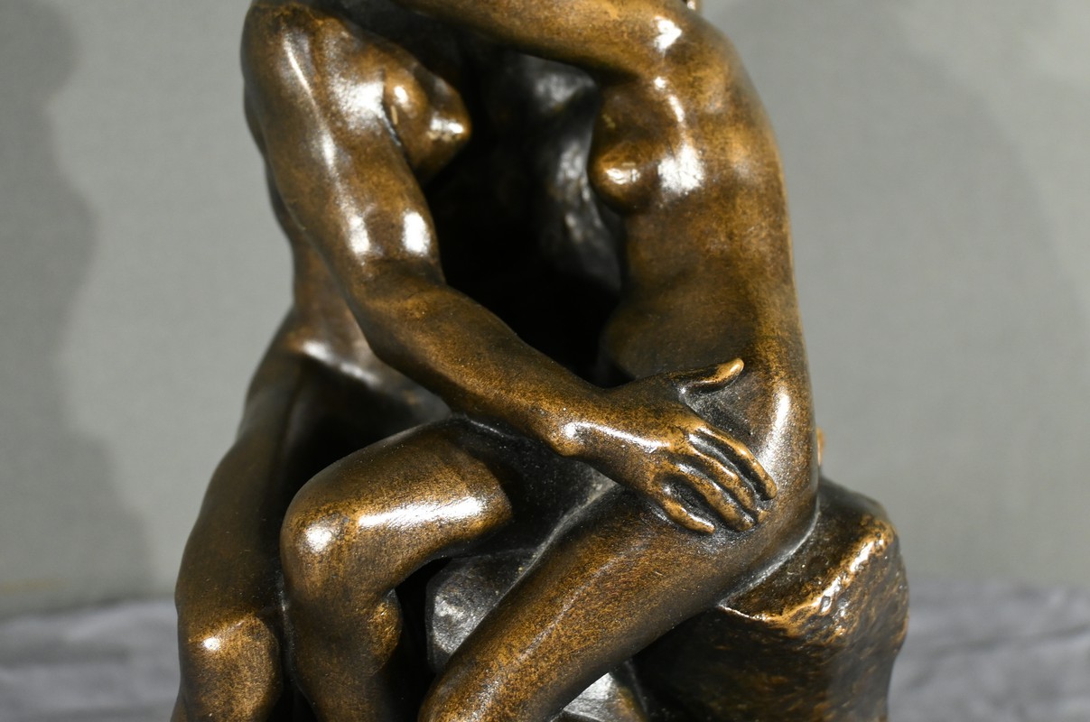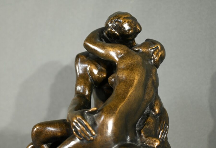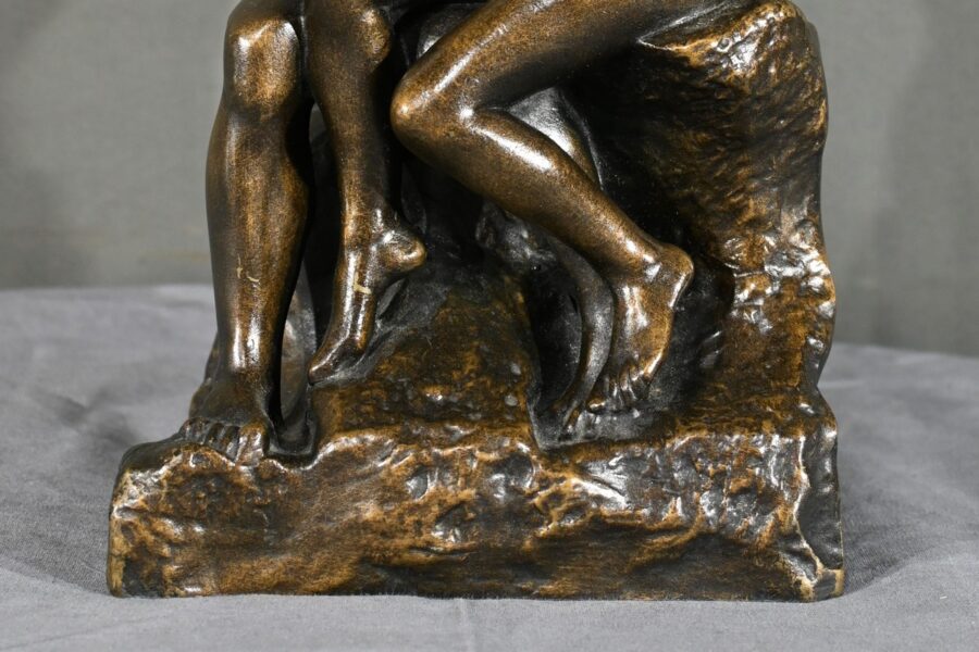 Cette reproduction en résine avec patine bronze de “Le Baiser” d’Auguste Rodin capture l’essence de l’œuvre originale créée en 1881, célèbre pour sa puissance émotionnelle et son réalisme physique.