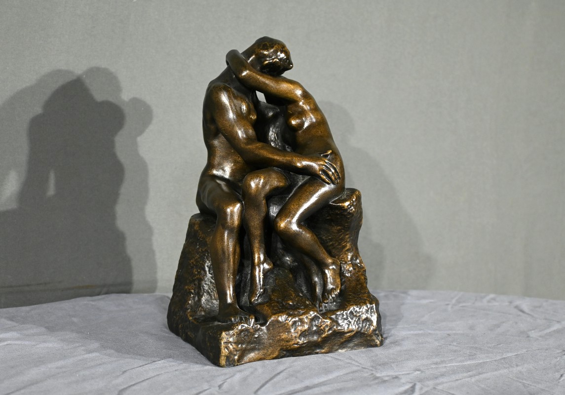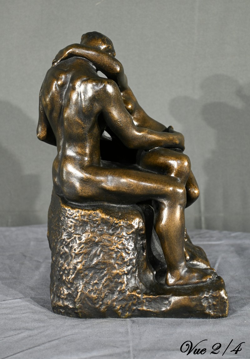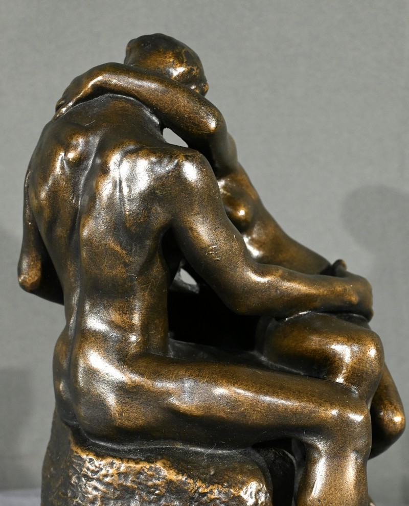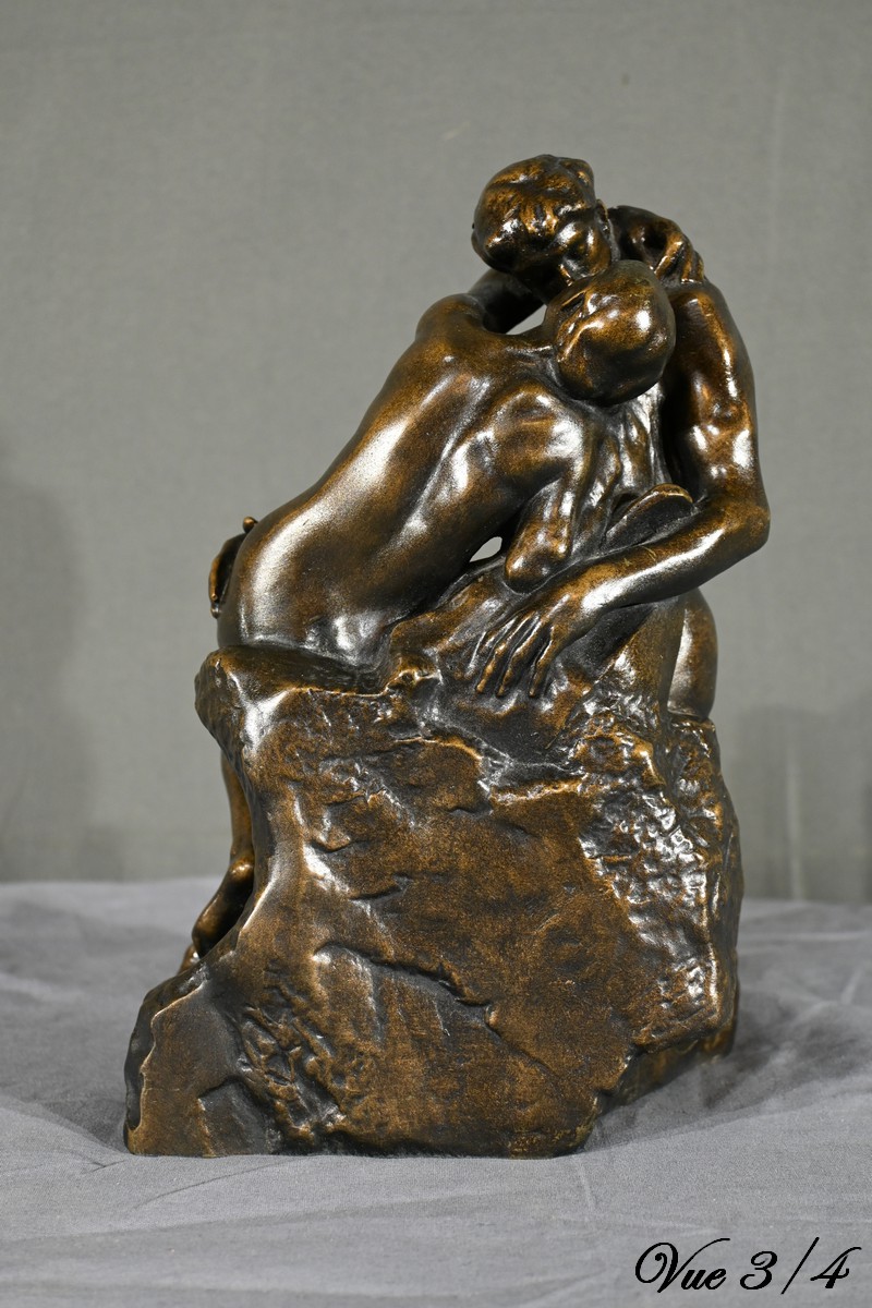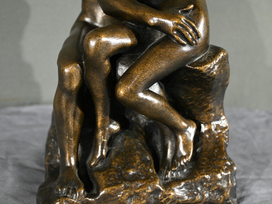 Cette reproduction en résine avec patine bronze de “Le Baiser” d’Auguste Rodin capture l’essence de l’œuvre originale créée en 1881, célèbre pour sa puissance émotionnelle et son réalisme physique.