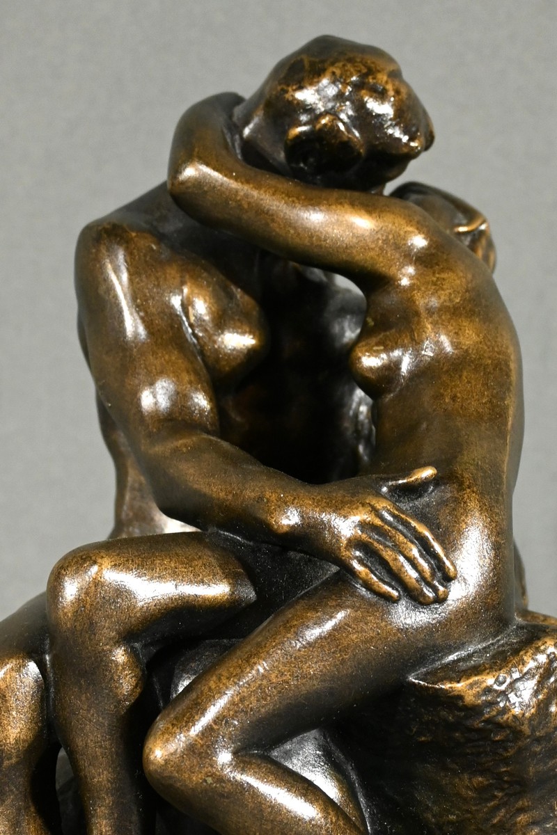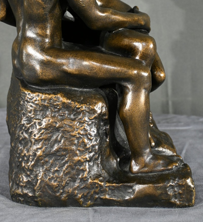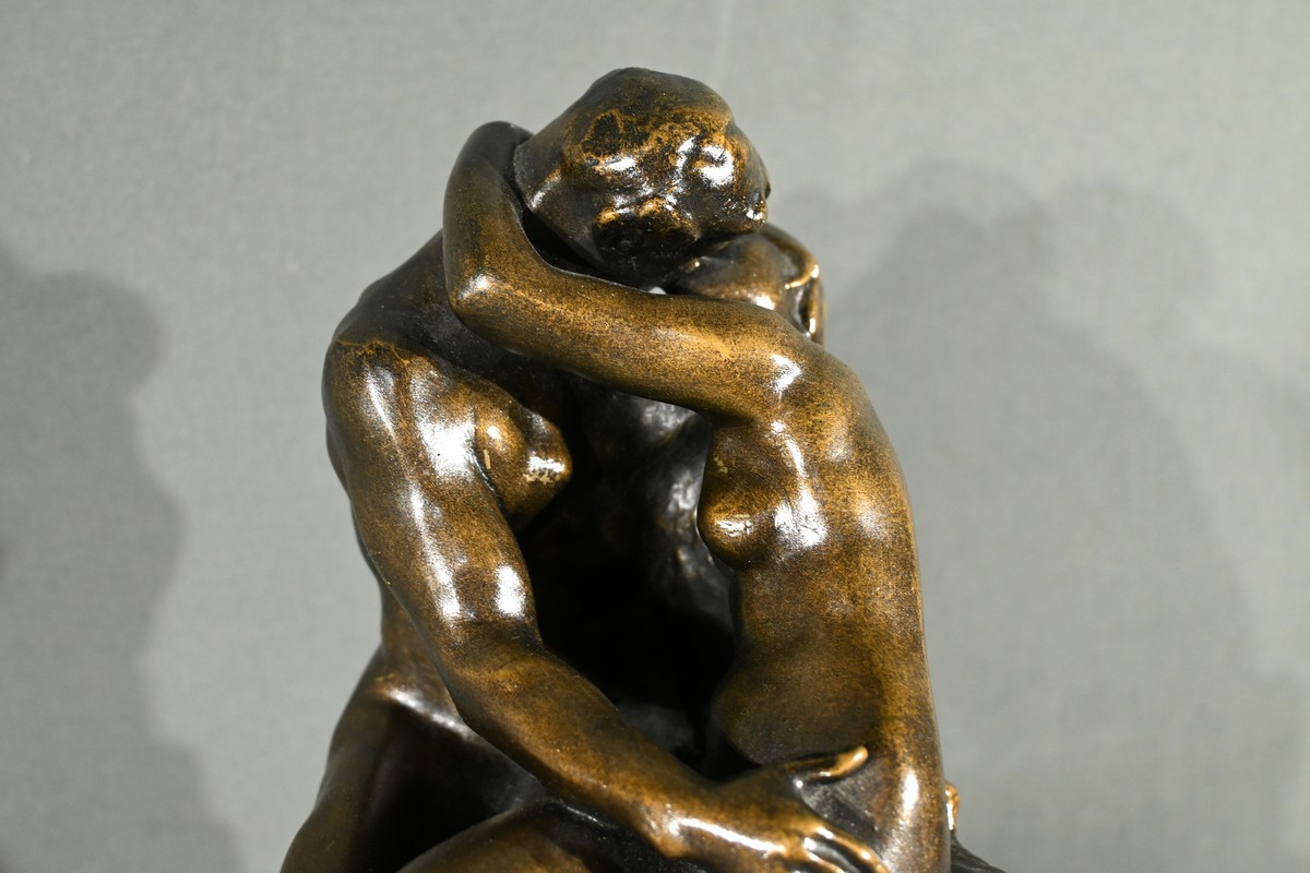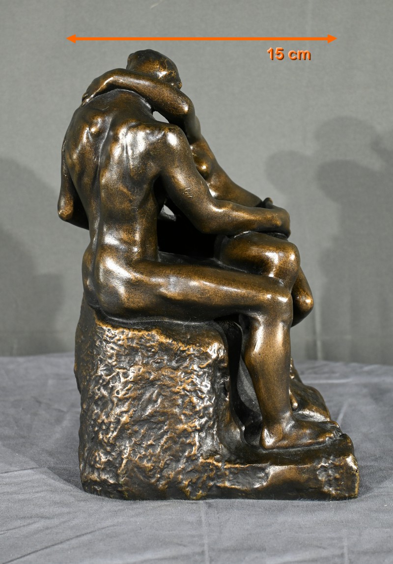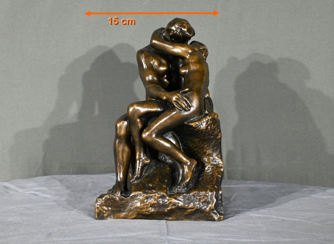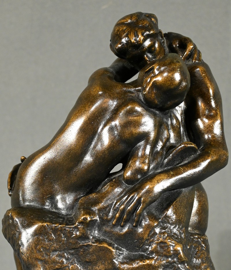 Cette reproduction en résine avec patine bronze de “Le Baiser” d’Auguste Rodin capture l’essence de l’œuvre originale créée en 1881, célèbre pour sa puissance émotionnelle et son réalisme physique.