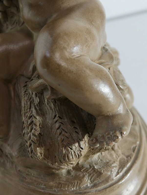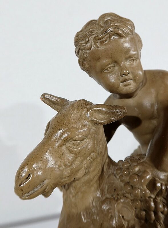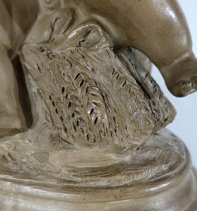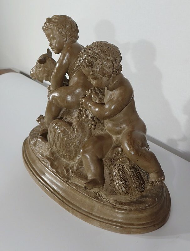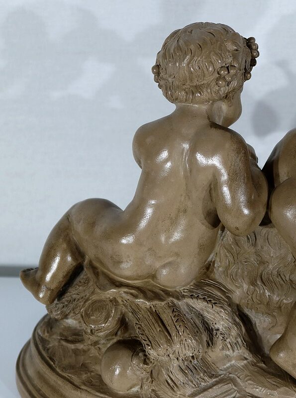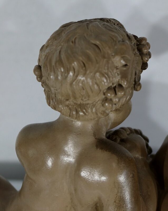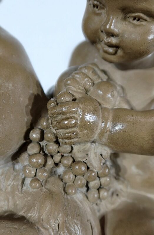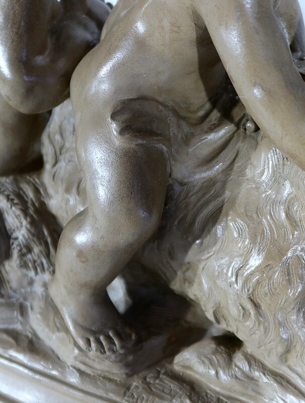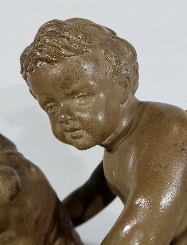 On appréciera le réalisme de cette sculpture, ainsi que le mélange d’innocence et d’espièglerie qui se dégage de ses deux protagonistes.