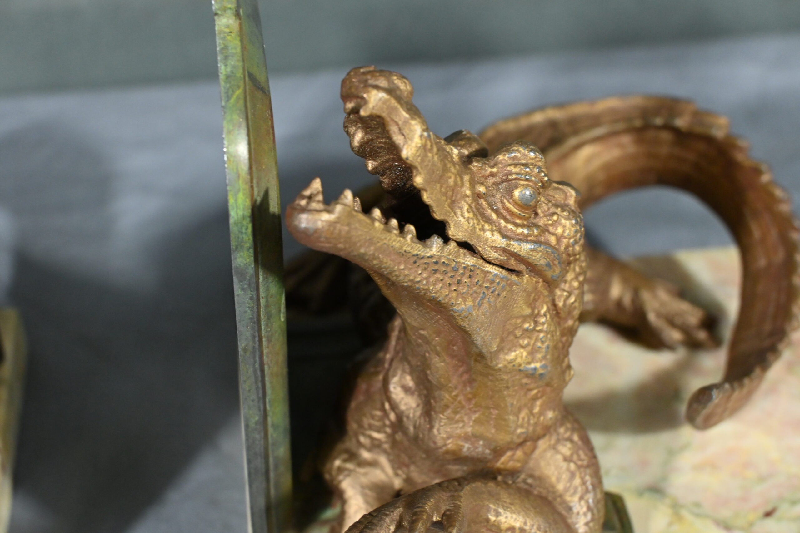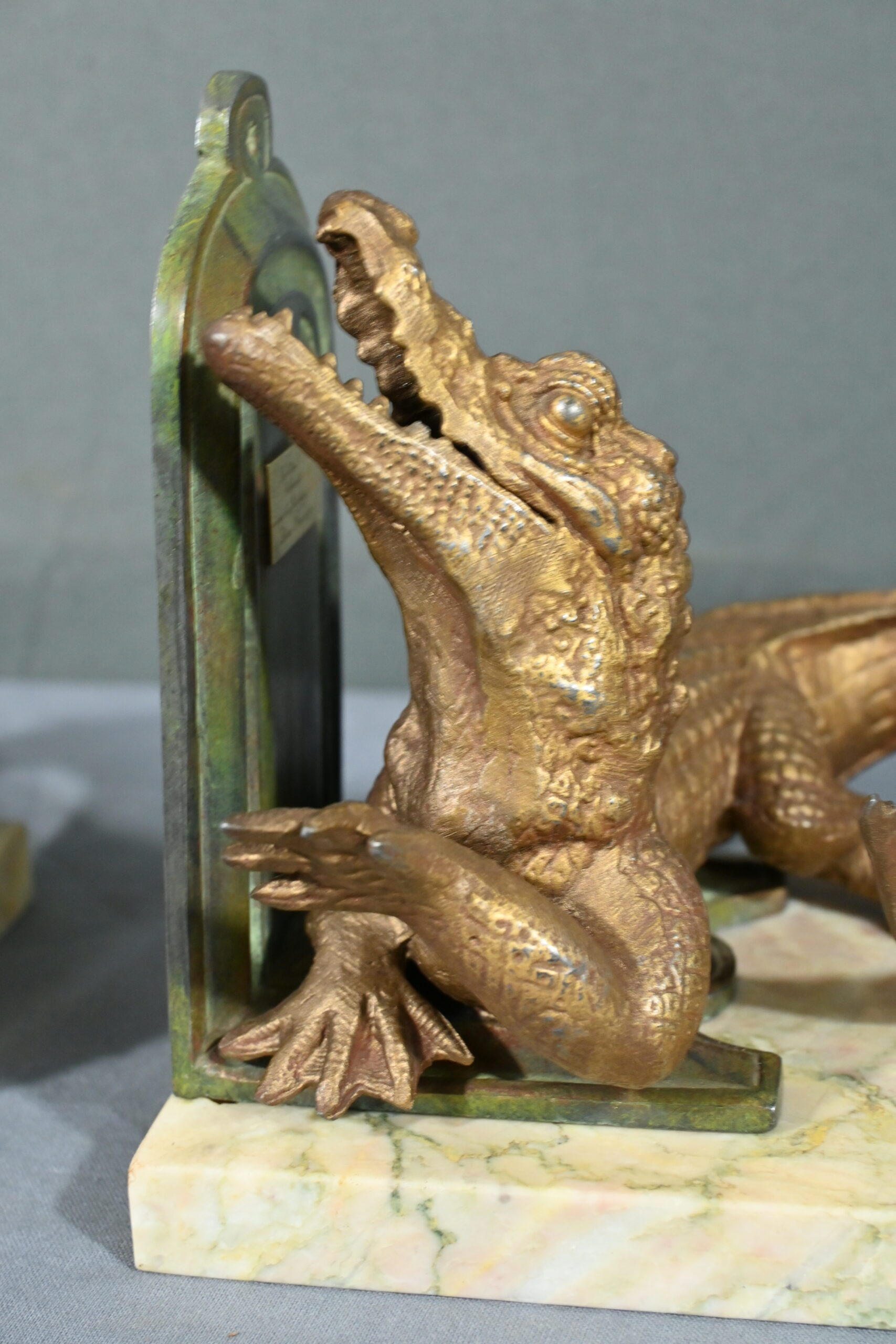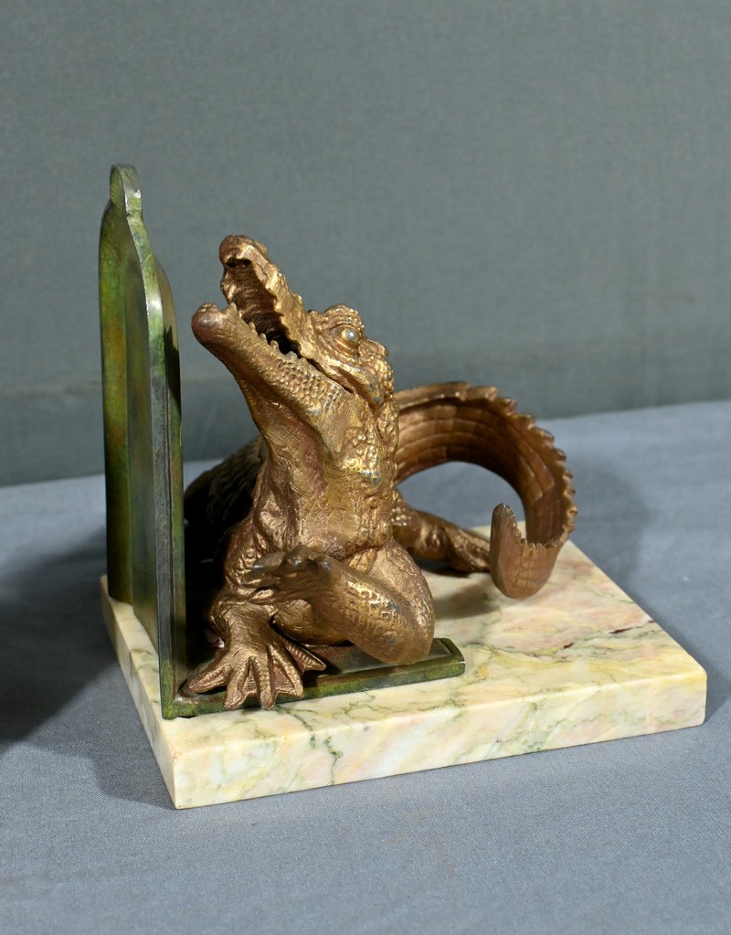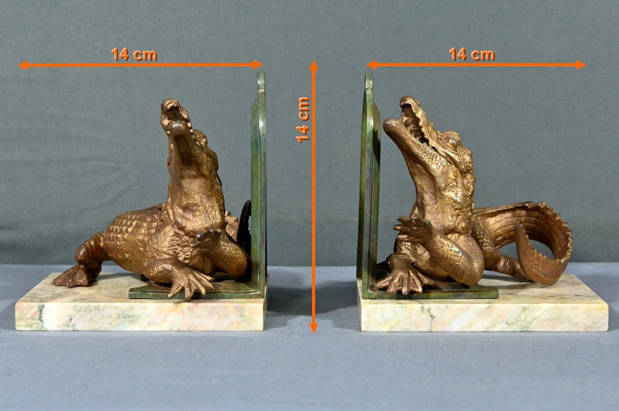 Les crocodiles, majestueusement sculptés dans régule étincelant, captivent par leur posture dynamique.