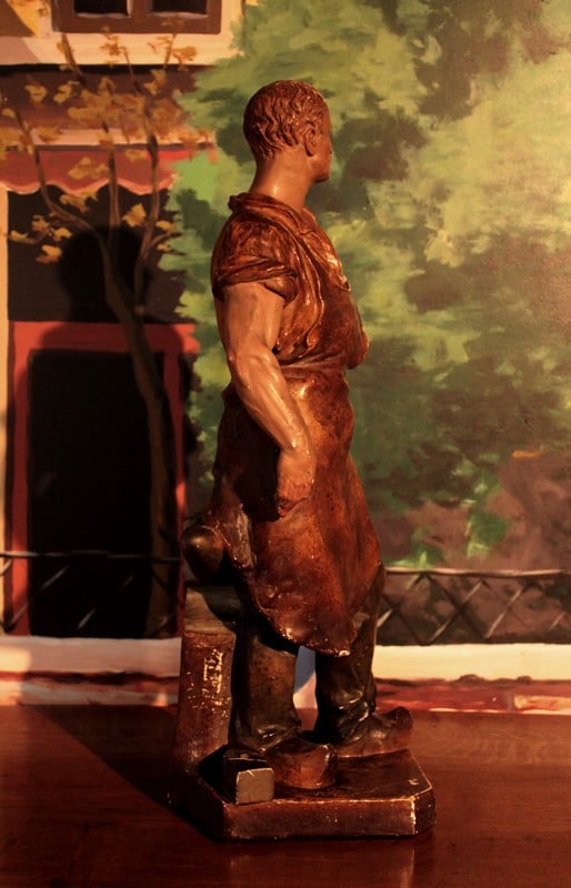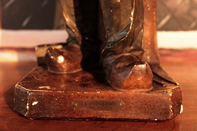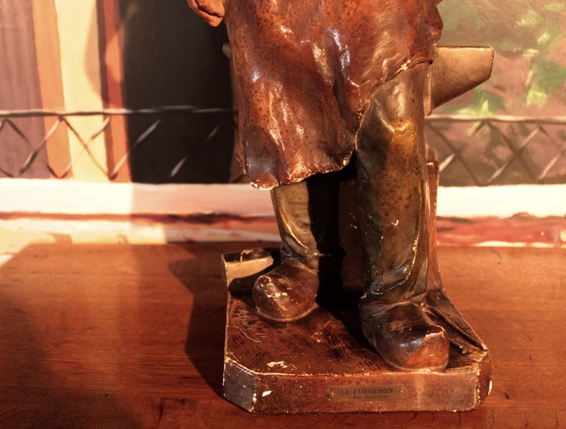 Statue en plâtre polychromé ‘Le Forgeron’ par BOUTROLLE.