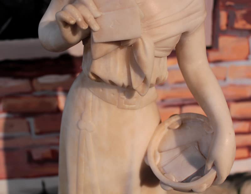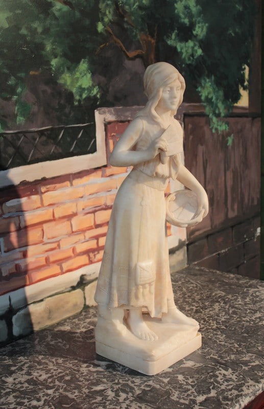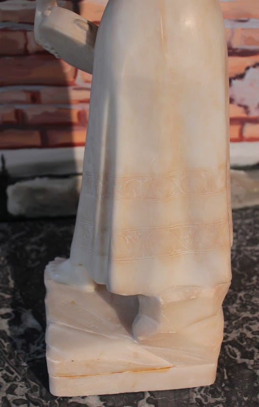 Ravissante Statue d’Esméralda avec son tambourin, en albâtre. Signature de ‘E. Villanis’