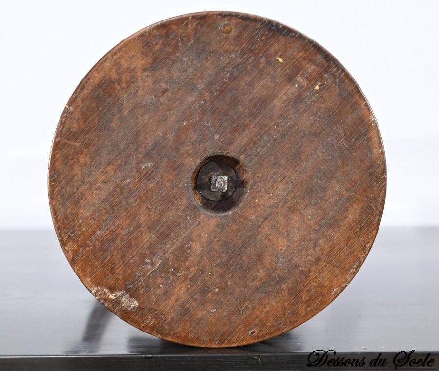 Cette œuvre repose sur un socle circulaire à gorge en bois.