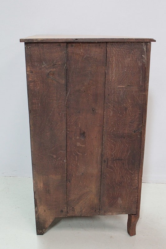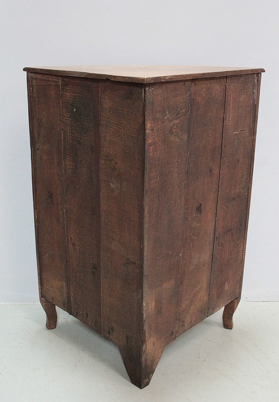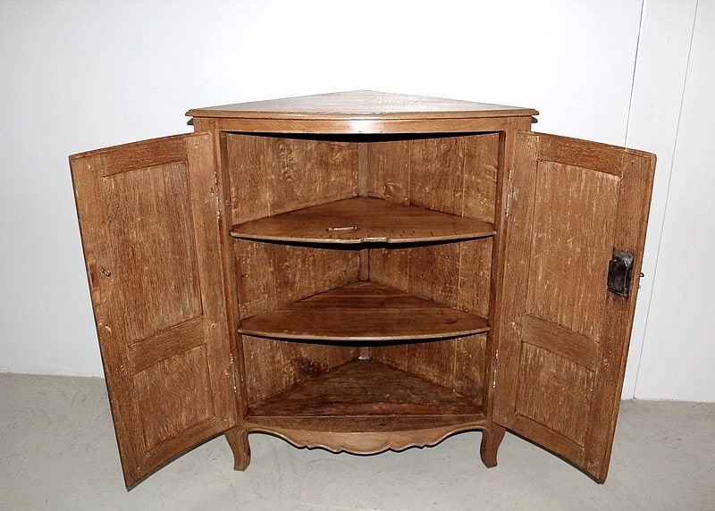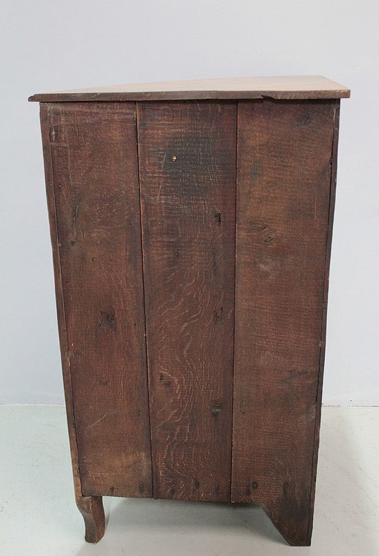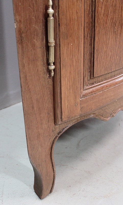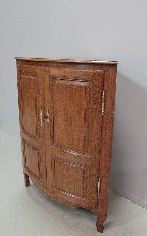 Encoignure à hauteur d’appui en chêne ouvrant à 2 portes panneautées et cintrées et reposant sur des pieds antérieurs galbés.