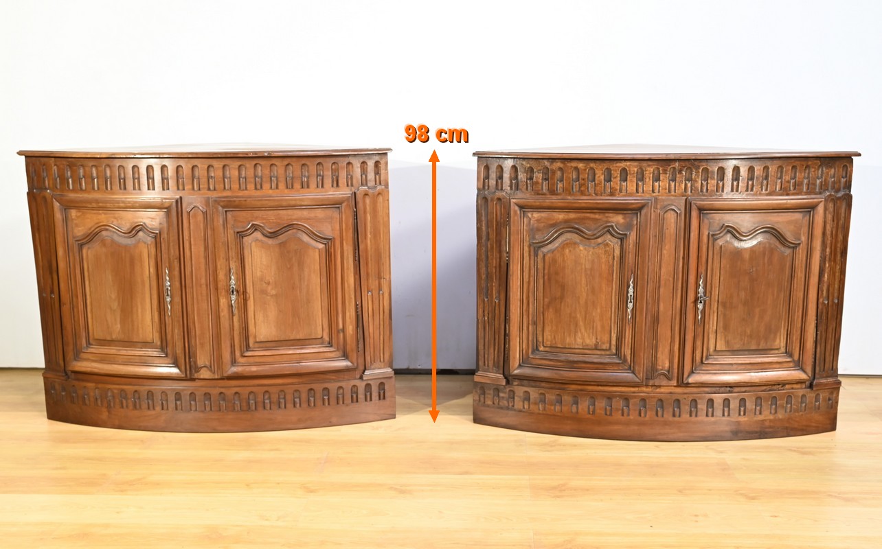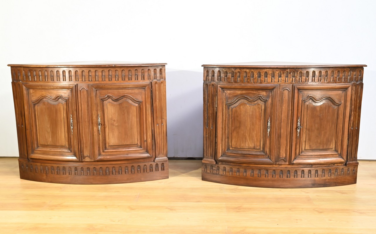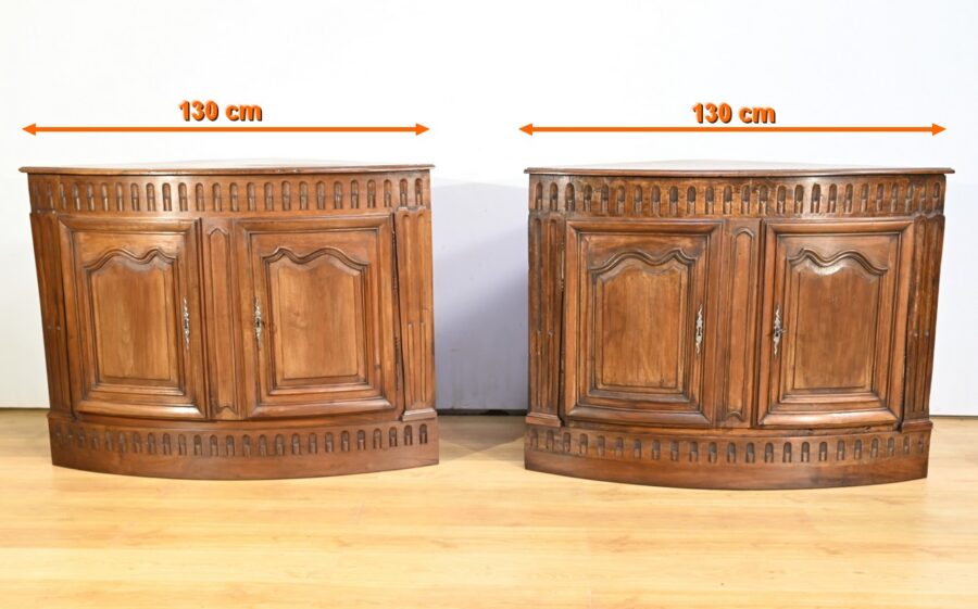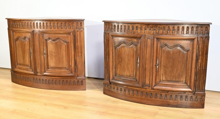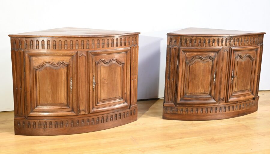 Paire d’importantes encoignures de propriété identiques en noyer.