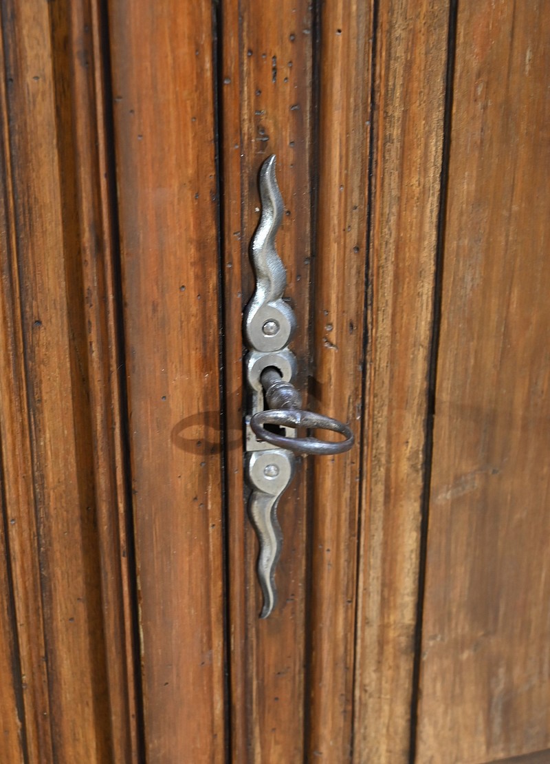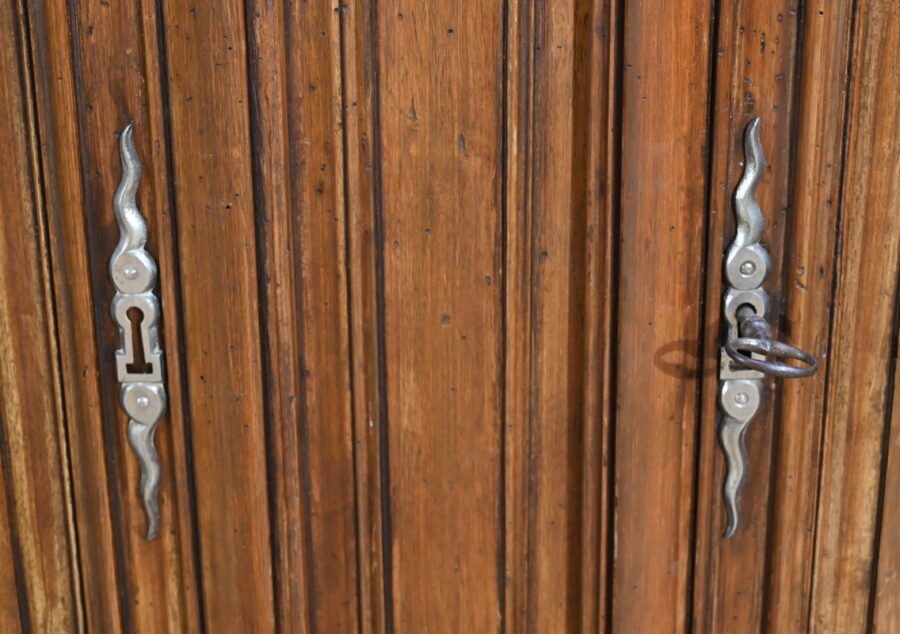 Ces portes, montées sur gonds en fer, sont munies d’une serrure authentique fonctionnelle avec entrées et clé postérieures.