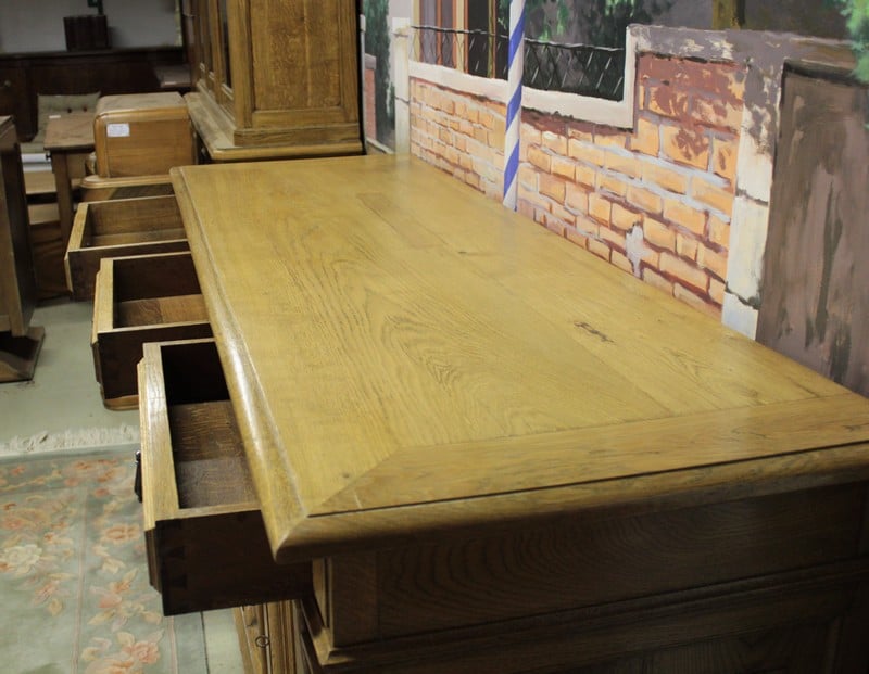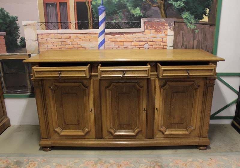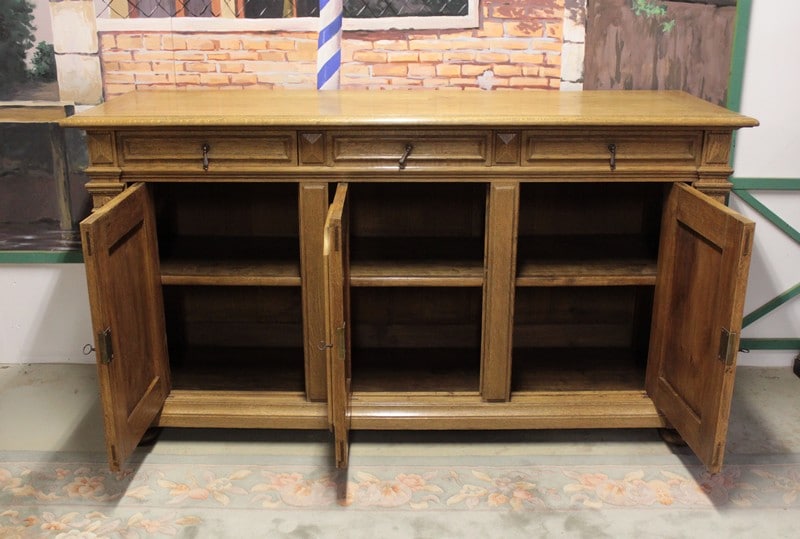 Buffet-enfilade en chêne blond dans le goût Louis XIV ouvrant par 3 portes et 3 tiroirs. Début XXe