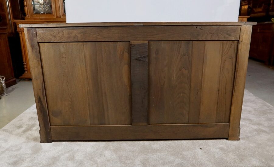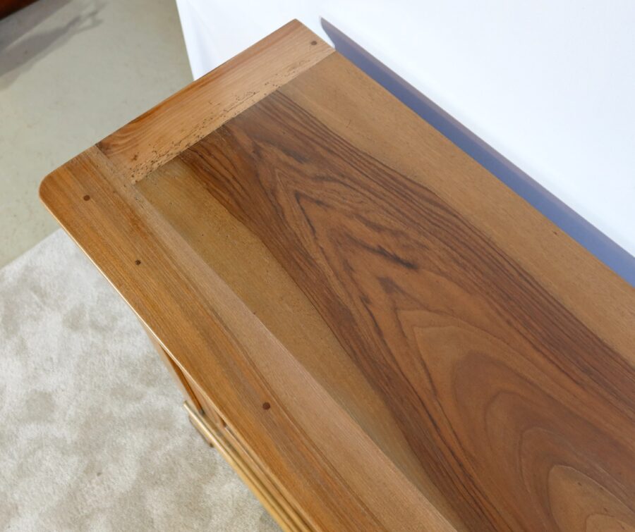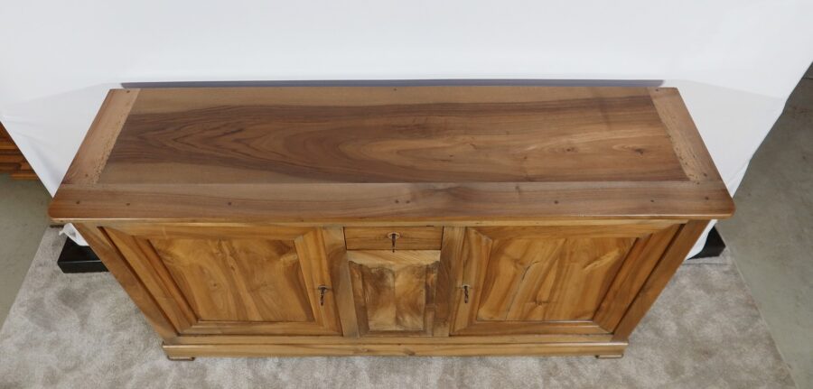 Cette enfilade est sommée d’un dessus à cadre avec un seul panneau bien jointif.