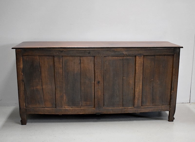 L’arrière panneauté est en chêne et les pieds arrières sont à demi escargots.