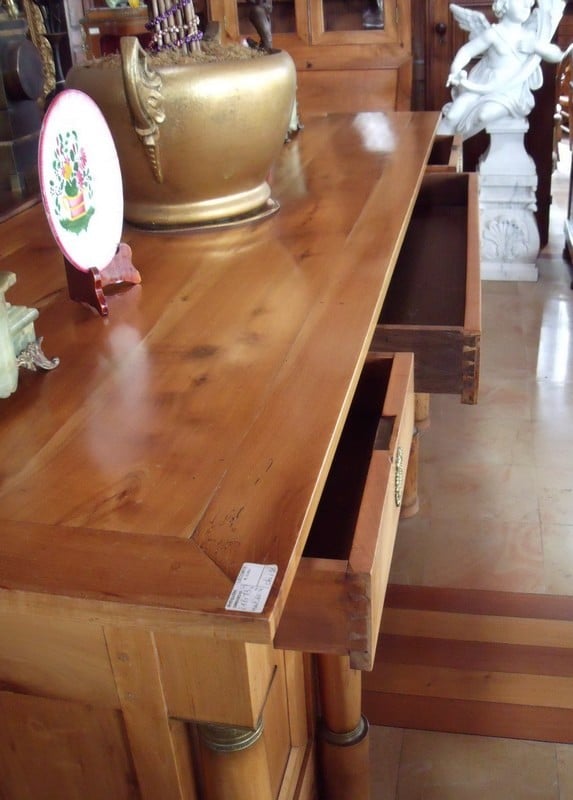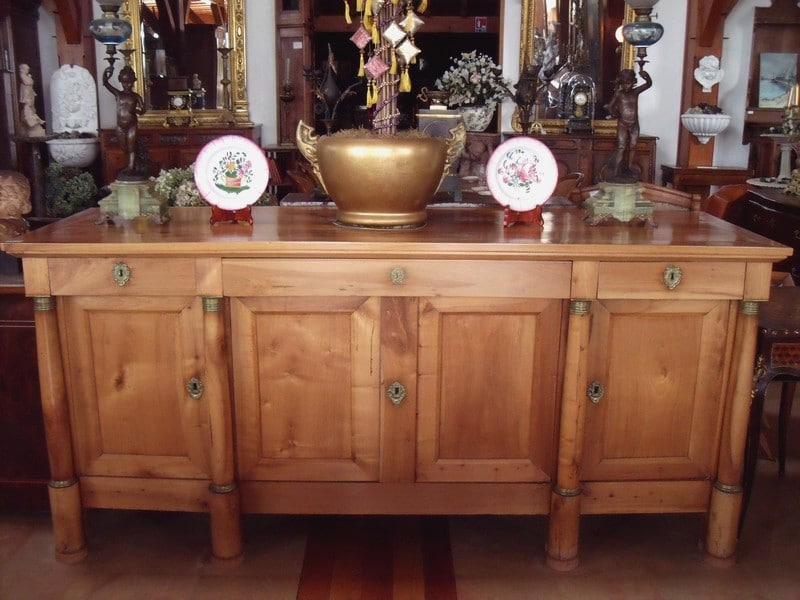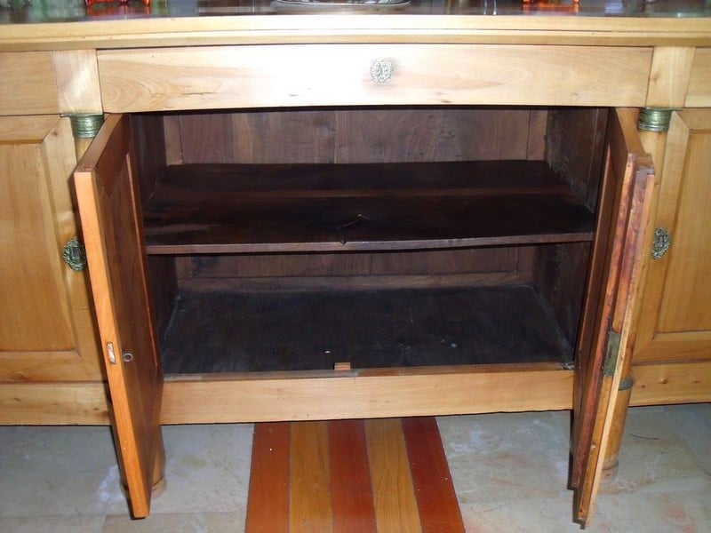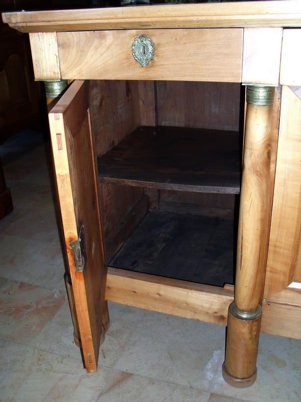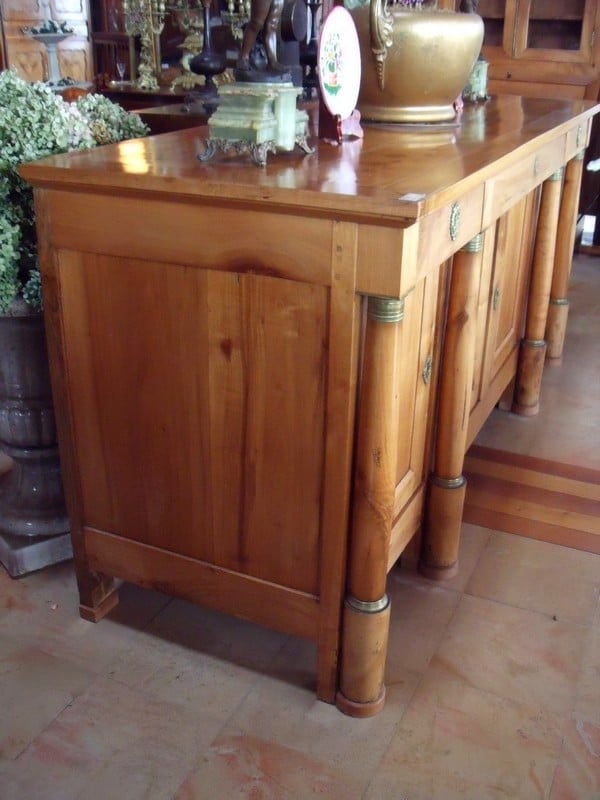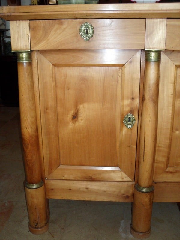 Grande Enfilade de propriété Empire à colonnes détachées, en merisier blond, ouvrant à 4 portes et 3 tiroirs.