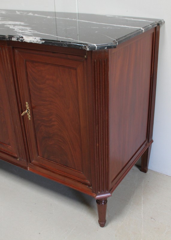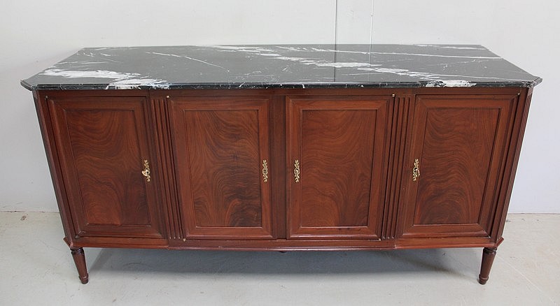 Cette Enfilade Louis XVI en Acajou Massif coiffée de son Marbre Lumineux s’invitera dans un intérieur élégant et raffiné où elle saura se faire remarquer.